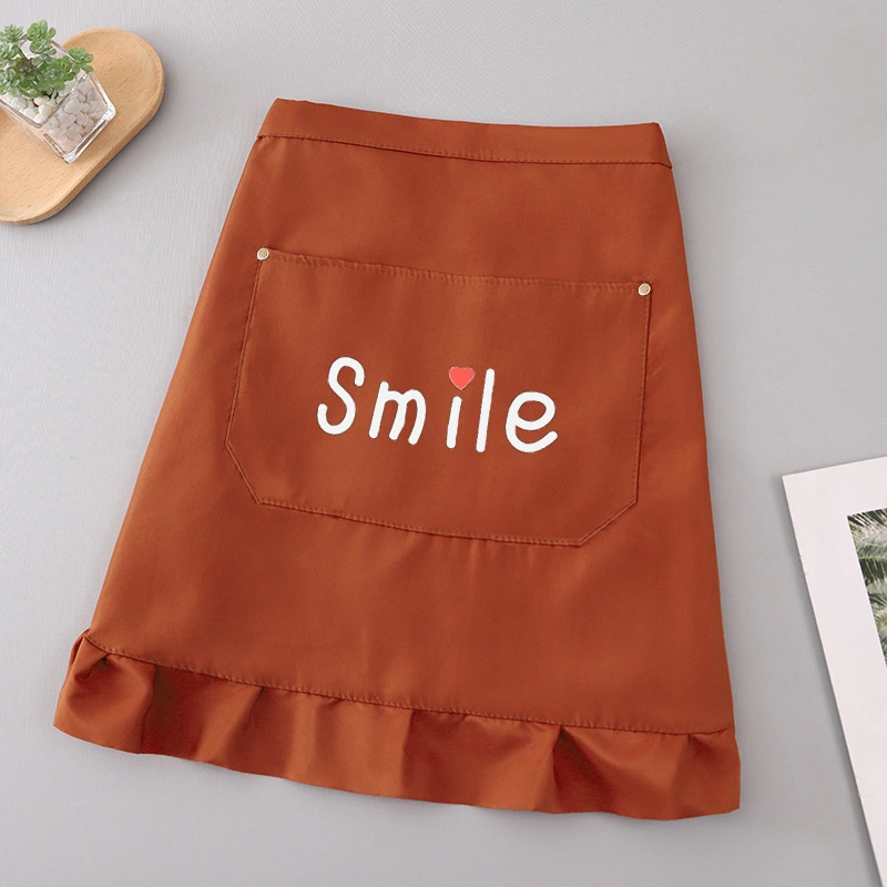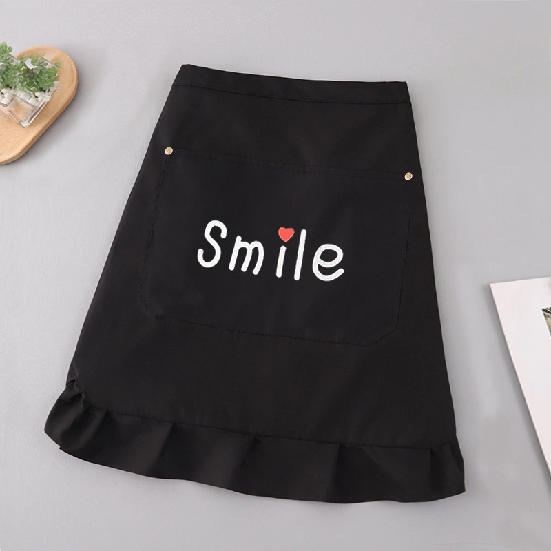 Half-Length Pure Cotton Apron for Home Kitchen Cooking, Stylish Anti-Stain Restaurant Short Workwear Apron, Mid-Length Style