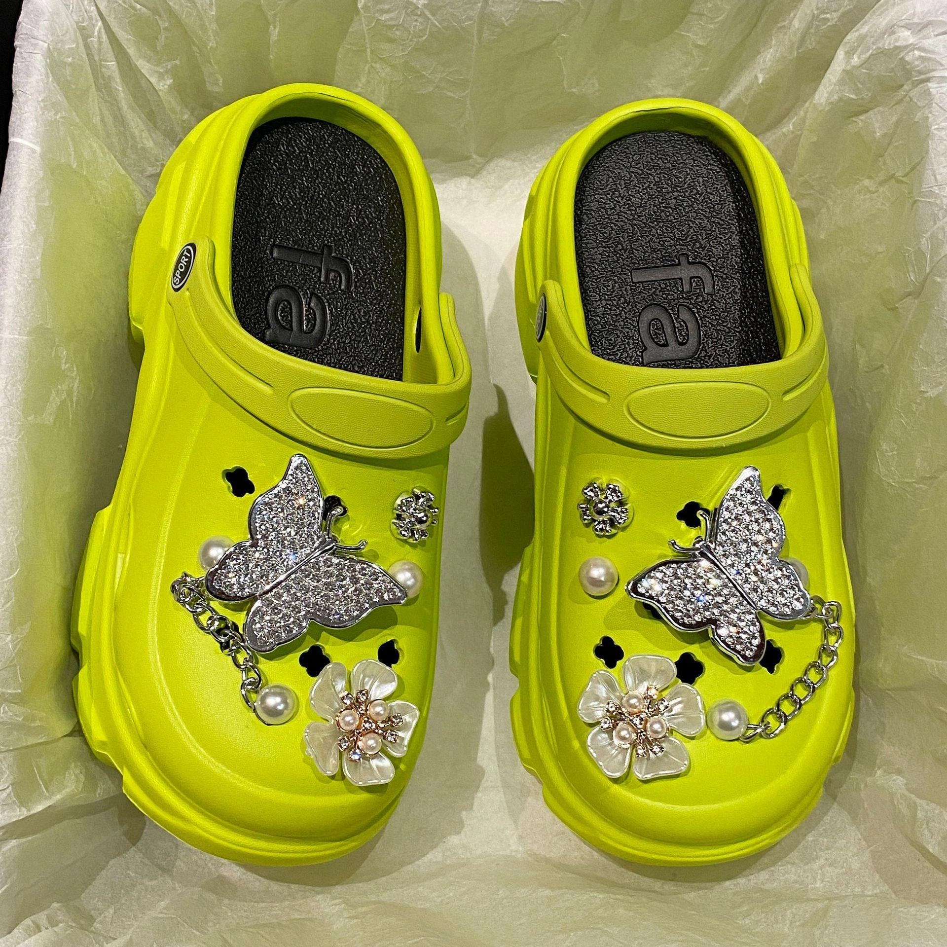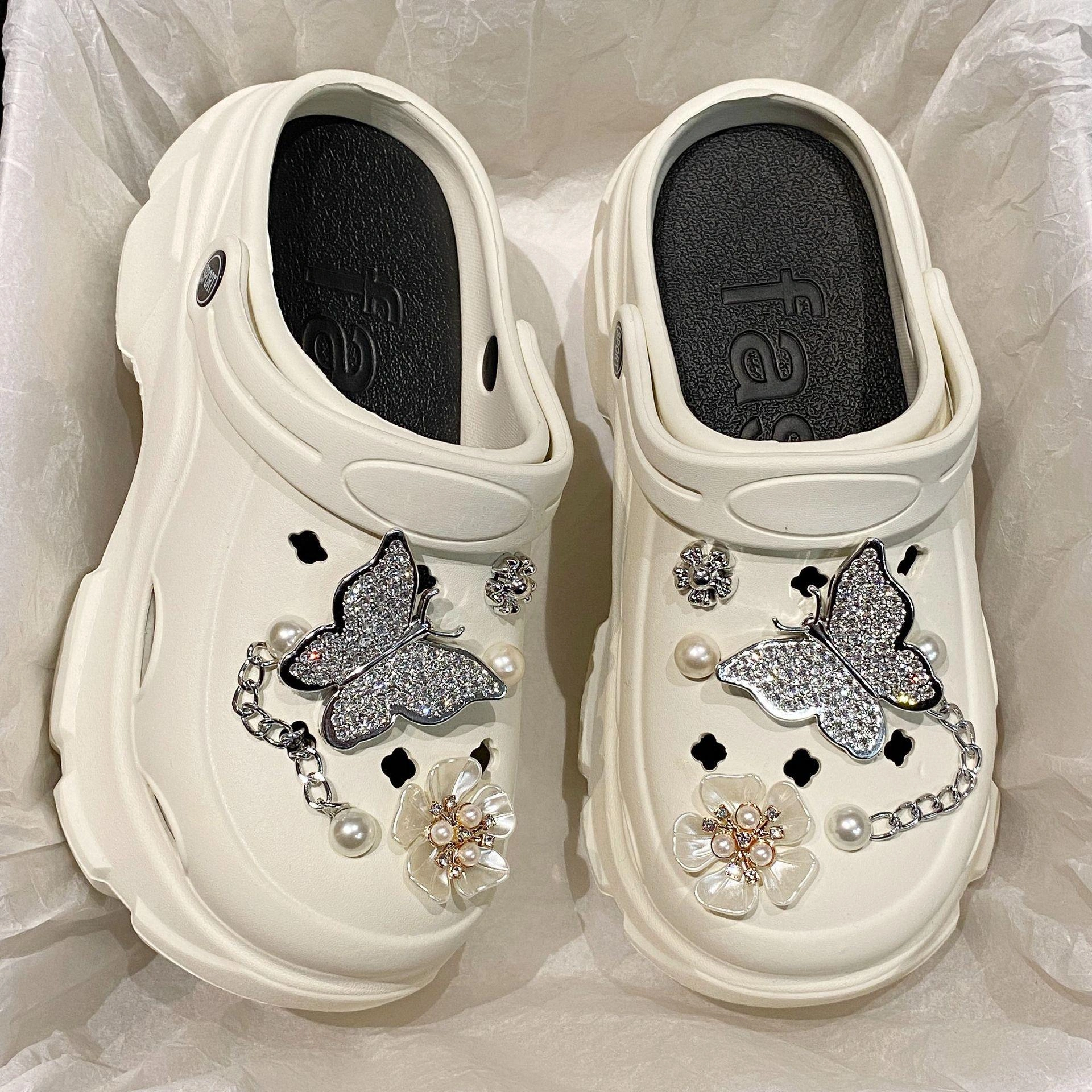 New Style Slippers, Crocs, Women's Summer Outer Wear, Thick-Soled Internet Celebrity Pearl Rhinestone Chain, Heightening Baotou Sandals and Slippers for Women