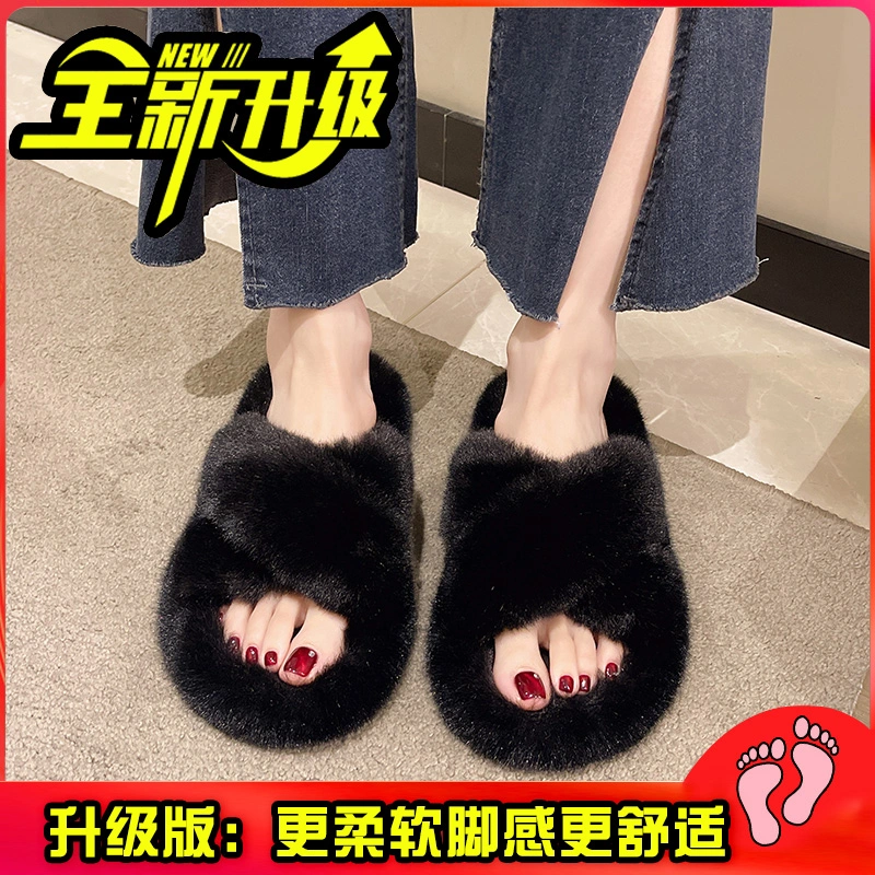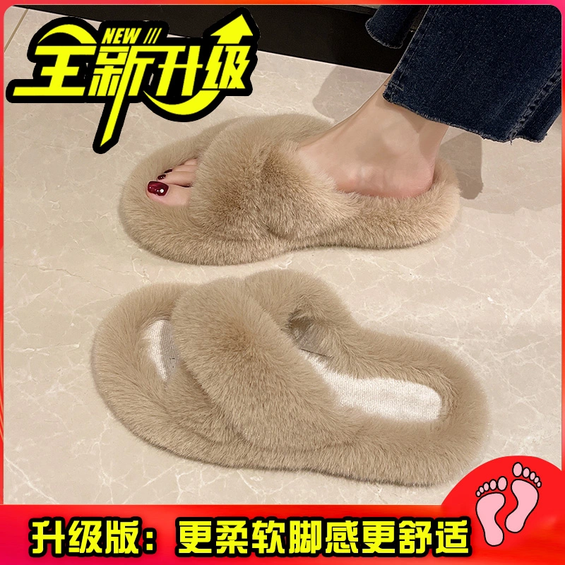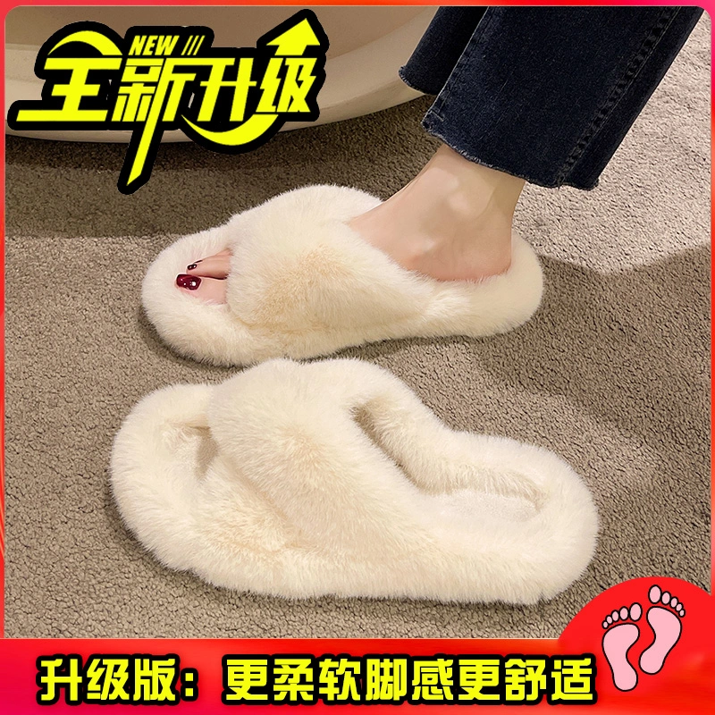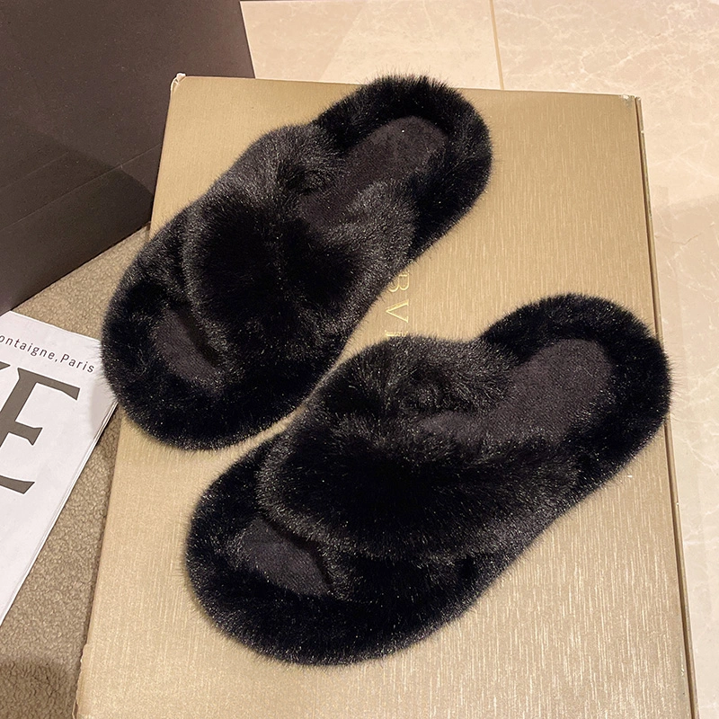Fairy-Style Thick Plush Cross Cotton Slippers for Women, Suitable for Outdoor Wear, 2025 New Model for Spring and Autumn, Non-Slip Home Slippers
