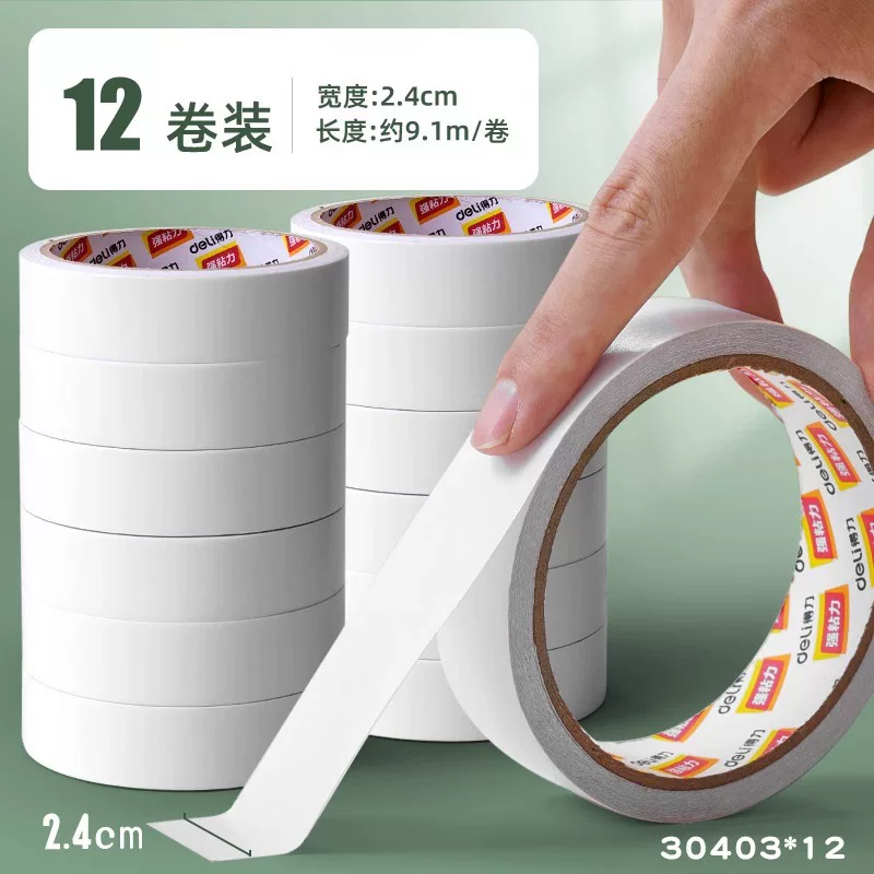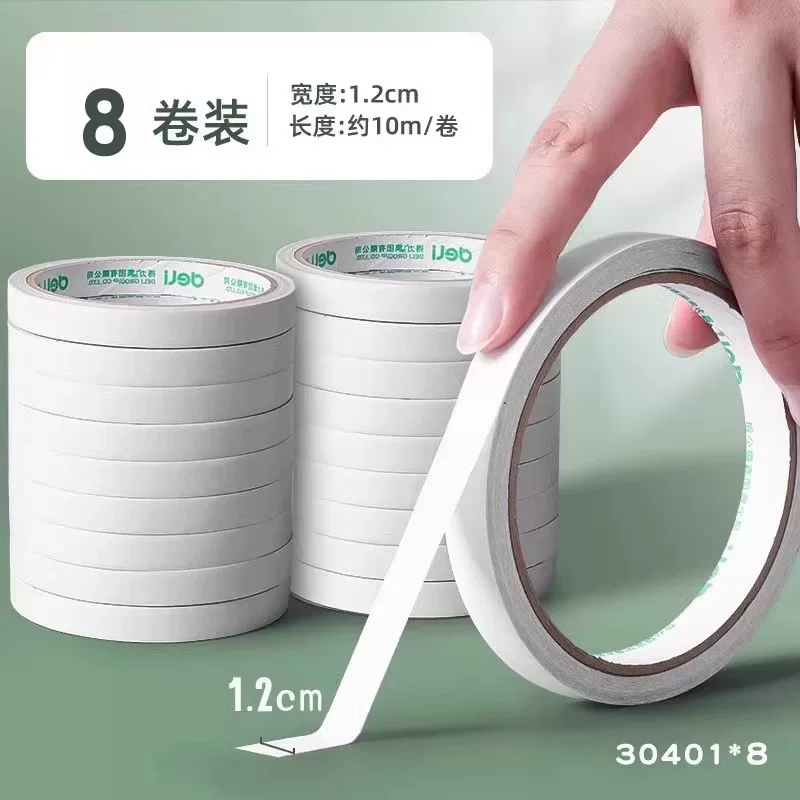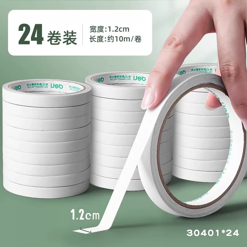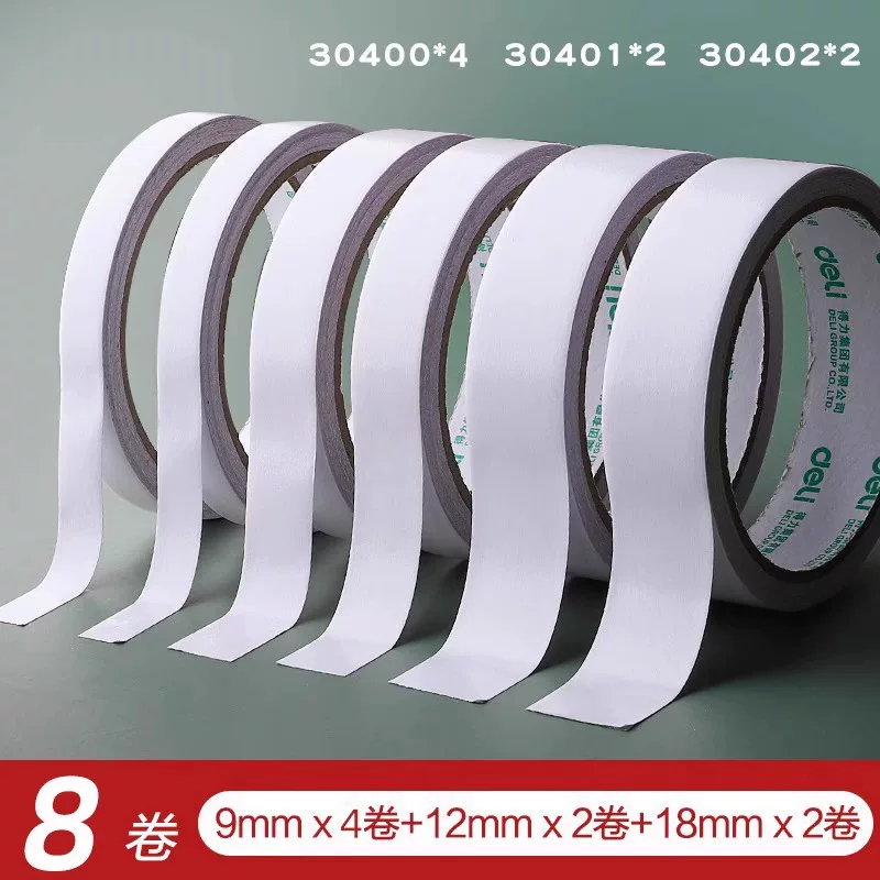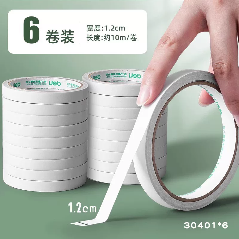 Deli Double-Sided Tape with Strong Adhesion, Easy to Tear Without Leaving Marks, High Viscosity Adhesive Tape for Student Crafts and Stationery