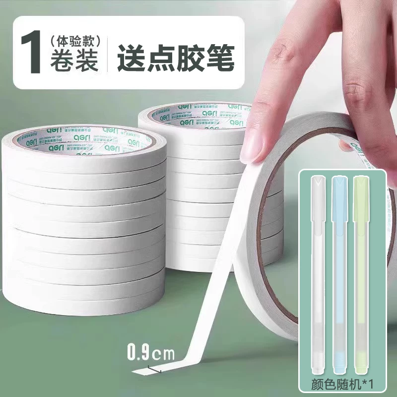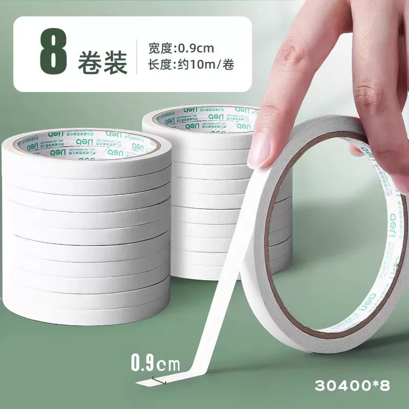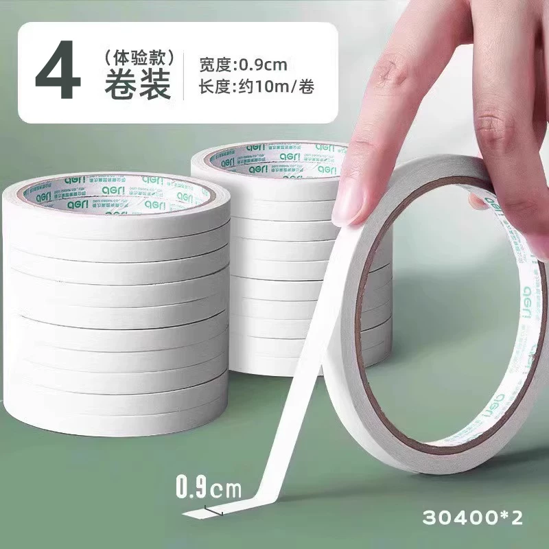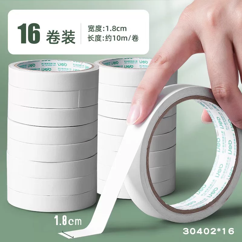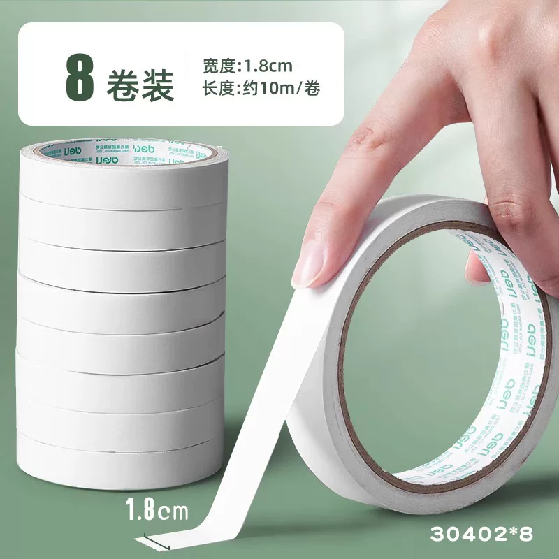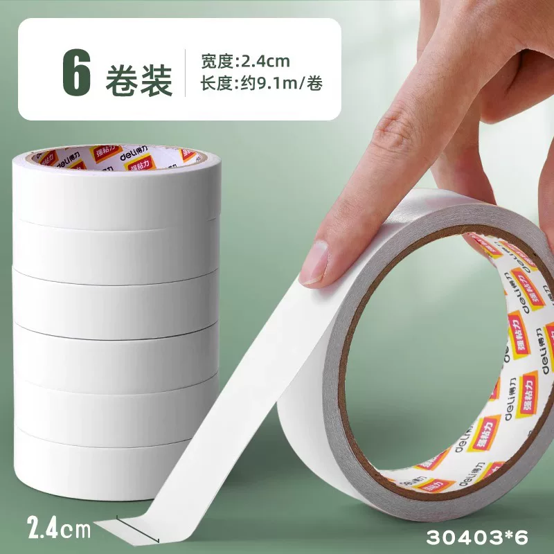 Deli Double-Sided Tape with Strong Adhesion, Easy to Tear Without Leaving Marks, High Viscosity Adhesive Tape for Student Crafts and Stationery