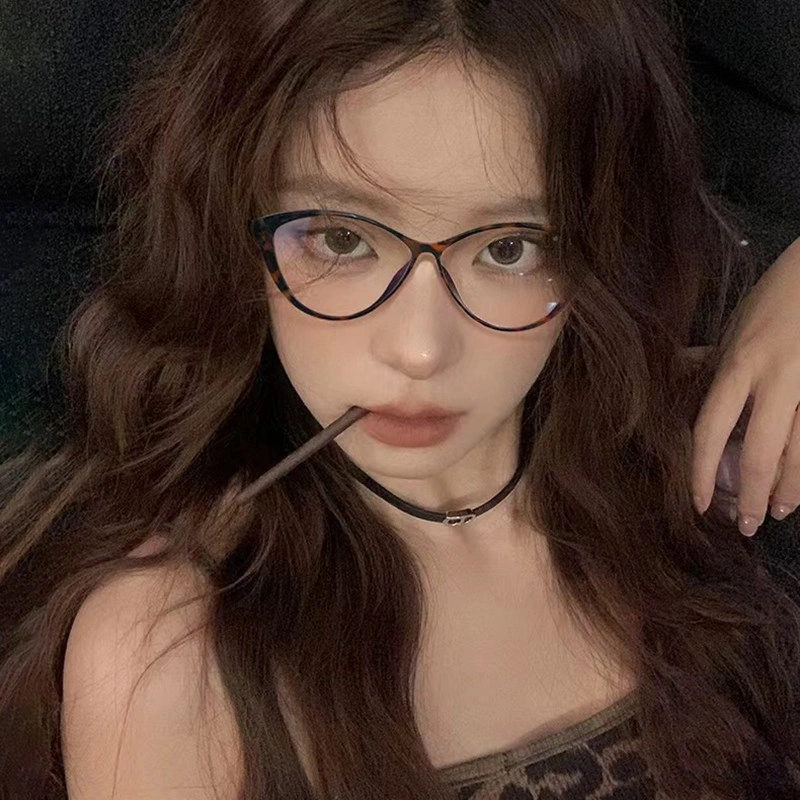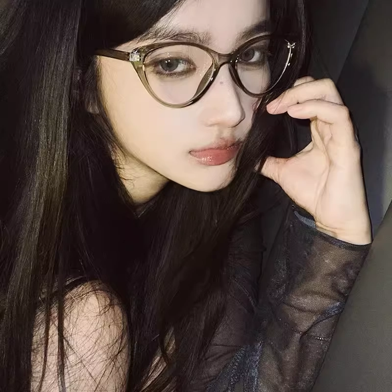 European and American Retro Cat-Eye Ultra-Light Black Frame Myopia Glasses with a High-End Feel for Square and Round Faces, Plain Glasses for Women, Can Be Customized with Prescription
