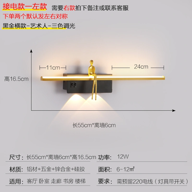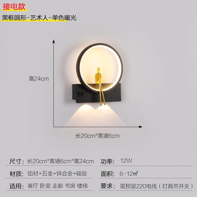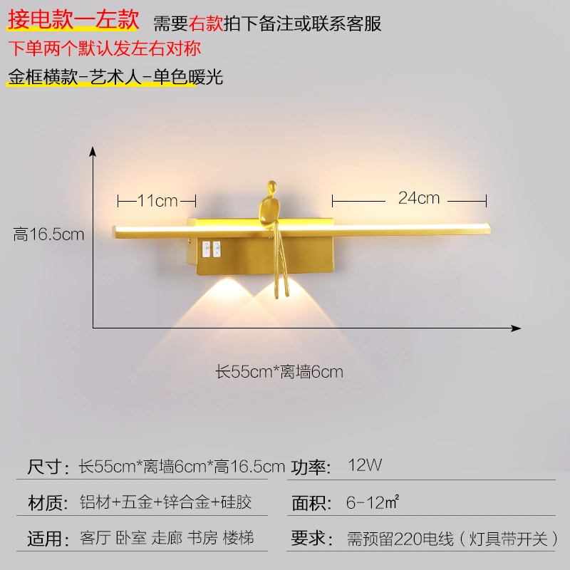Bedside Wall Lamp, Bedroom, Living Room, Background Wall Lamp, Modern Simple Light Luxury, Staircase Aisle, Creative Spotlight with Switch