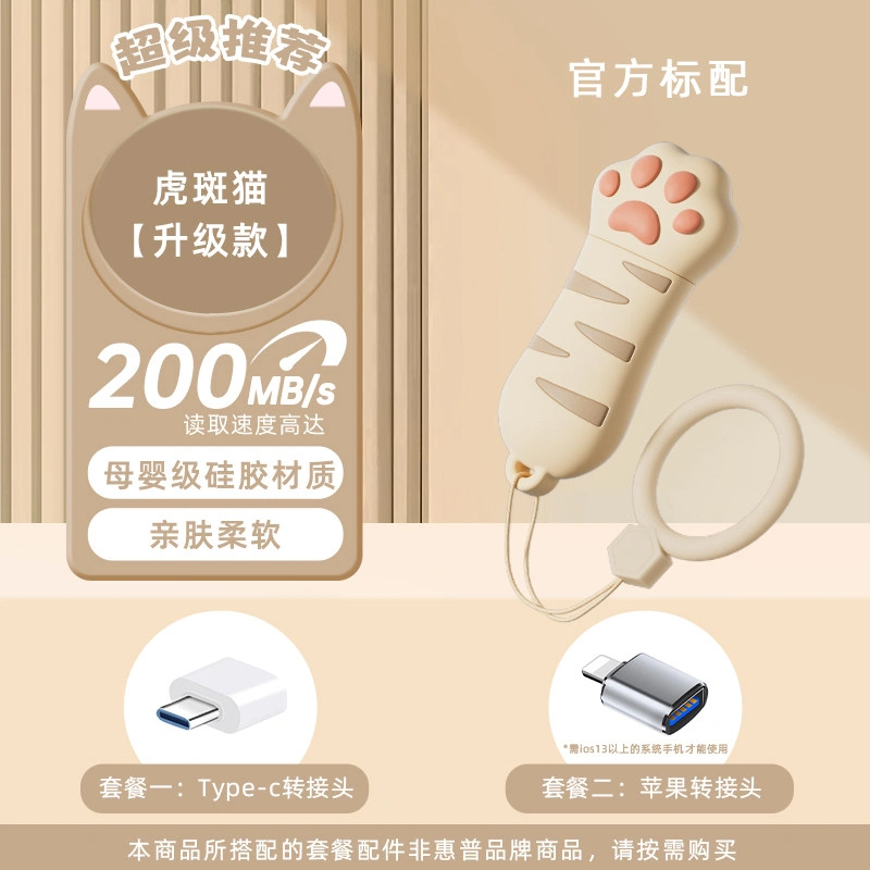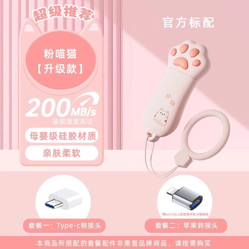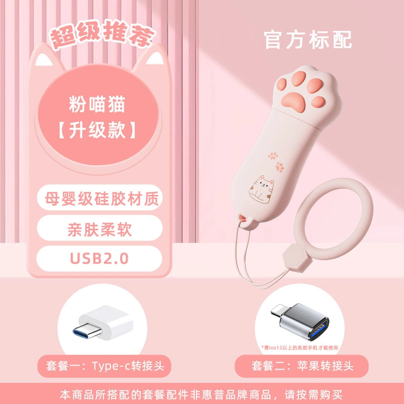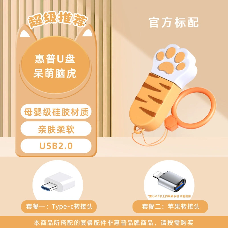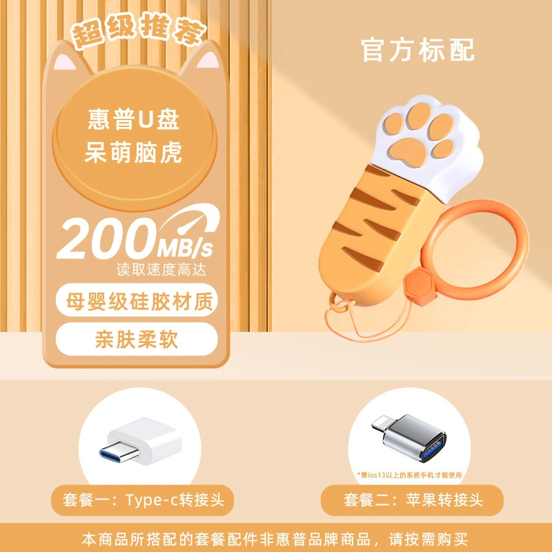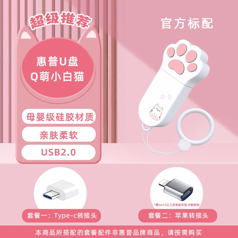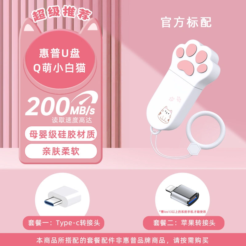 Hp Genuine 128g Cute Cat Paw USB Flash Drive Large Capacity Dual-Use for Female Students Official Flagship Store