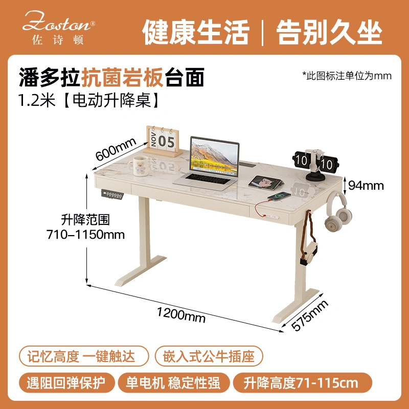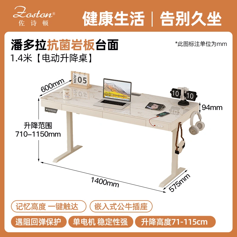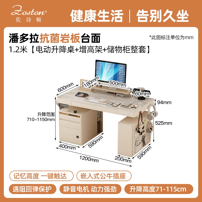 Light Luxury and High-End Desk Kidsren's Solid Wood Bedroom Bay Window Table Electric Lift Table Retractable Small Apartment Long Table