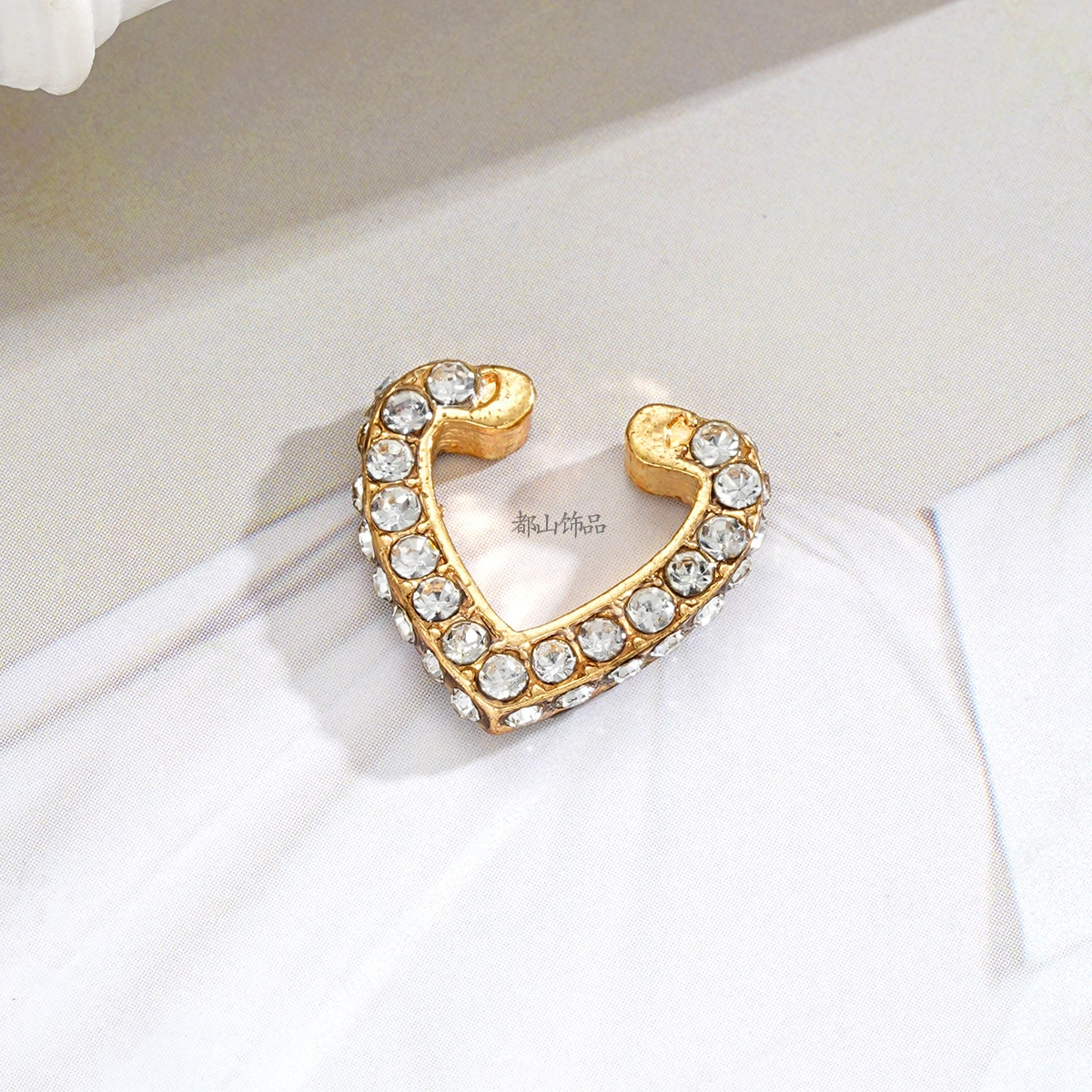 Golden Diamond Heart Ear Clip Cross-Border New Fashion Gold Full Diamond Heart Ear Clip for Women