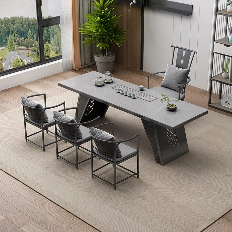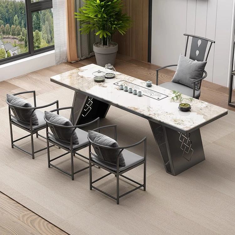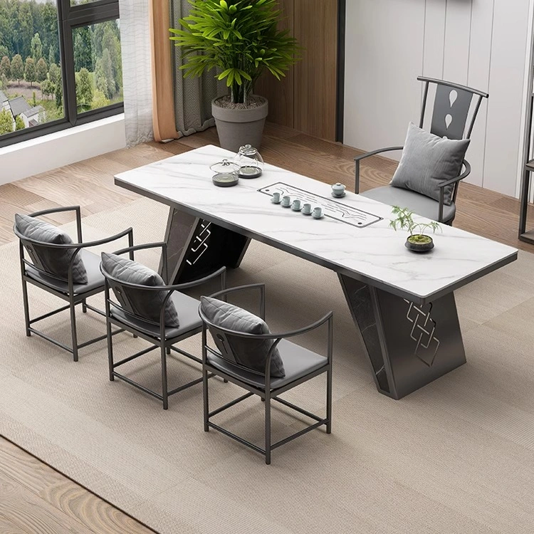 Light Luxury Marble Slate Tea Table and Chair Set, Simple Living Room Home Office Reception All-In-One Furniture