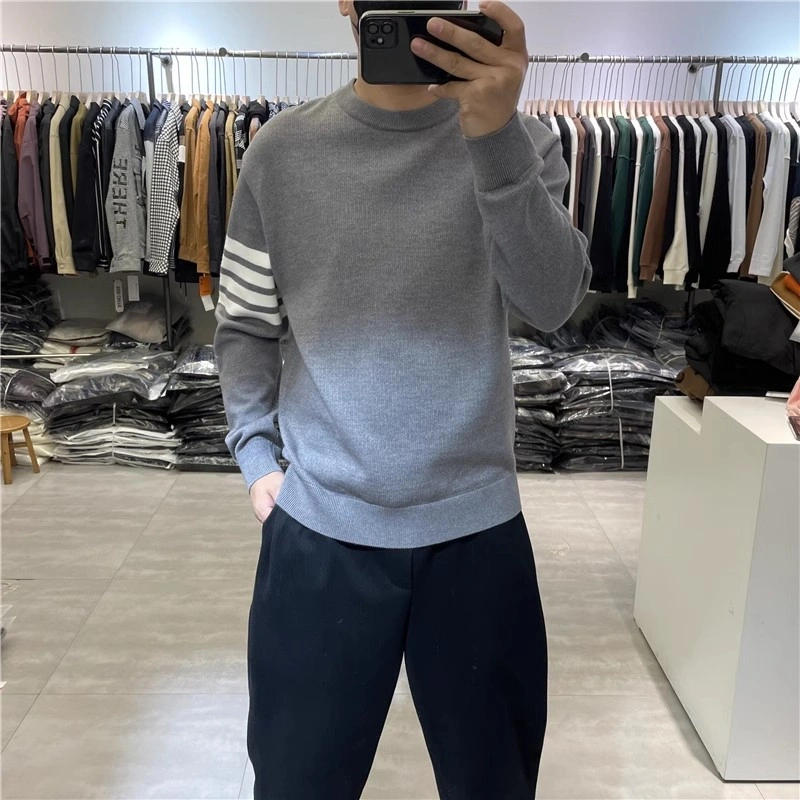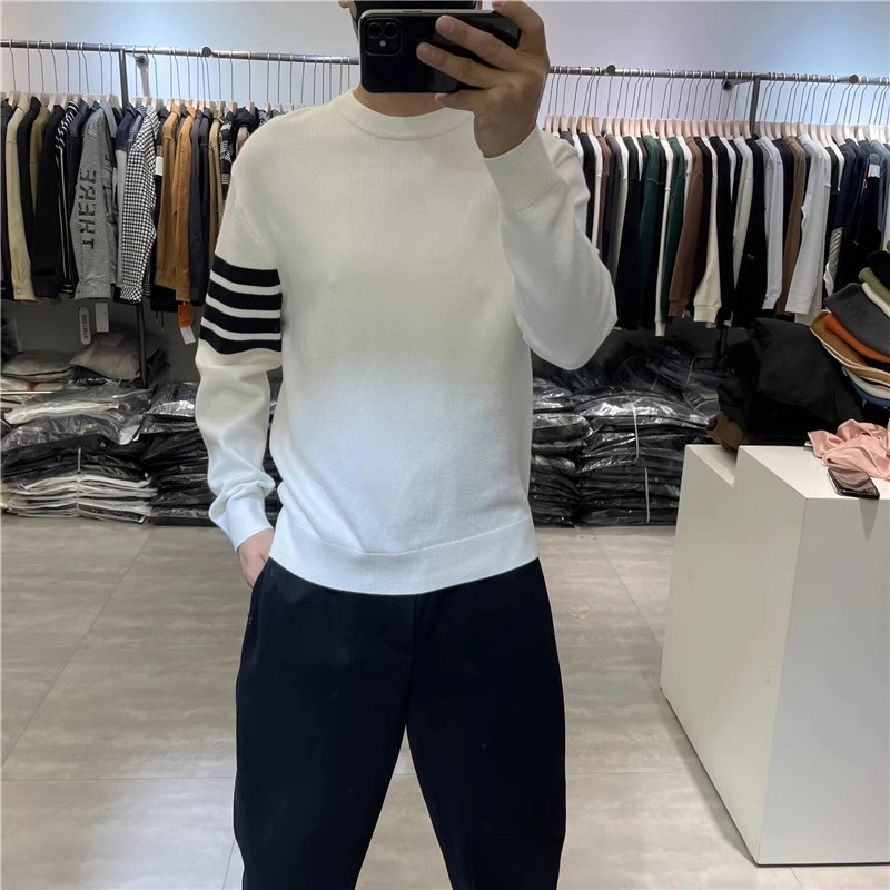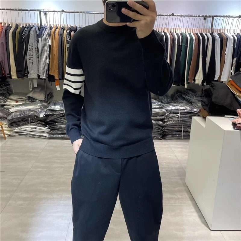 Autumn and Winter Color-Block Striped Sweater for Men, Korean Style Simple Round Neck Knitwear, Youth Trendy Casual Base Layer Sweater
