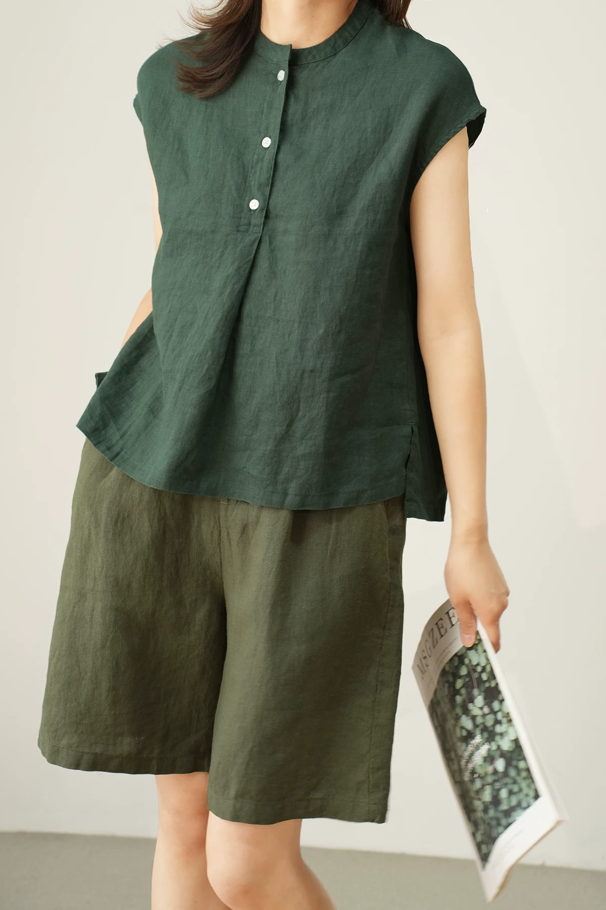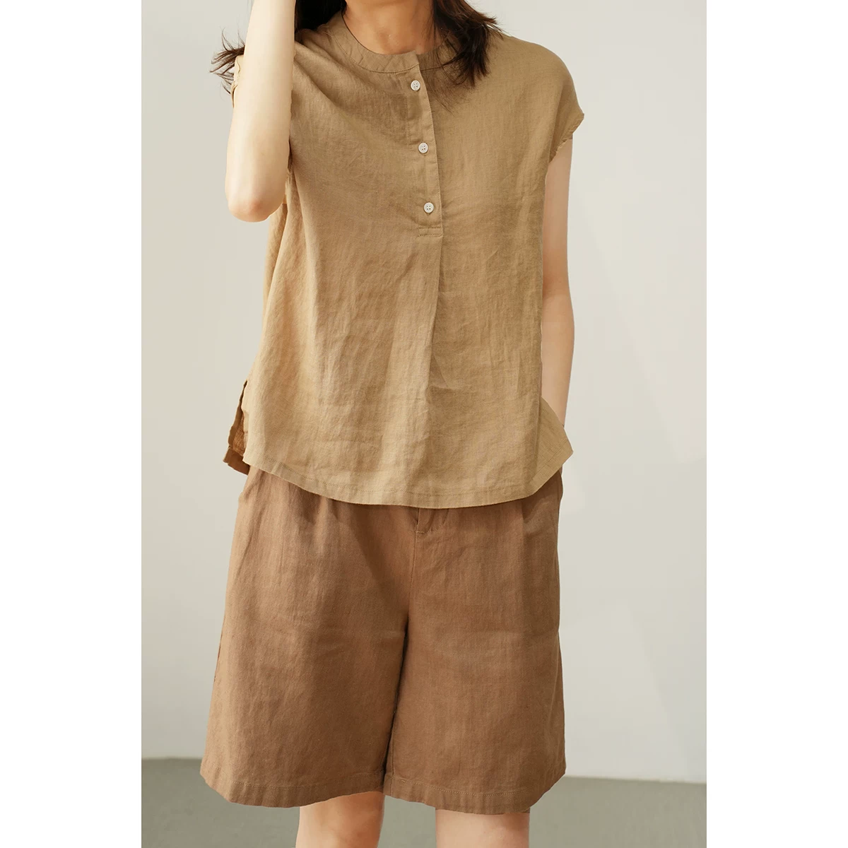 Original Export Japanese-Style Simple Sleeveless Shirt for Women, Summer Thin Stand-Up Collar Shirt, Casual Trendy Top