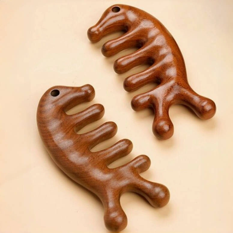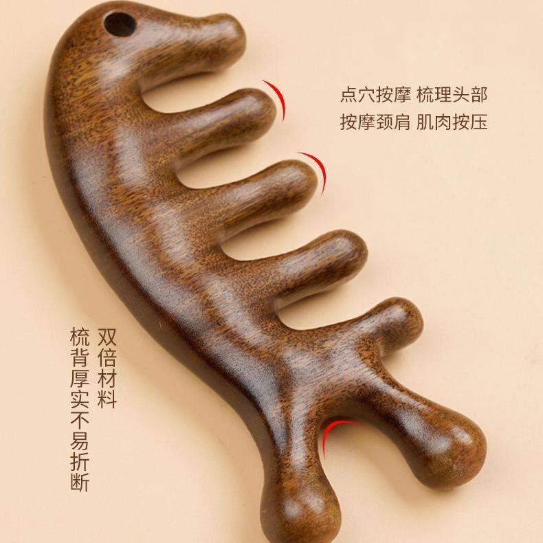 Sandalwood Head Therapy and Health Care Green Sandalwood Five-Tooth Meridian Comb Scalp Massage Comb Small Comb Hair Scalp Wide-Tooth Comb