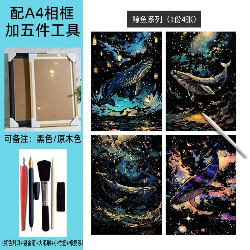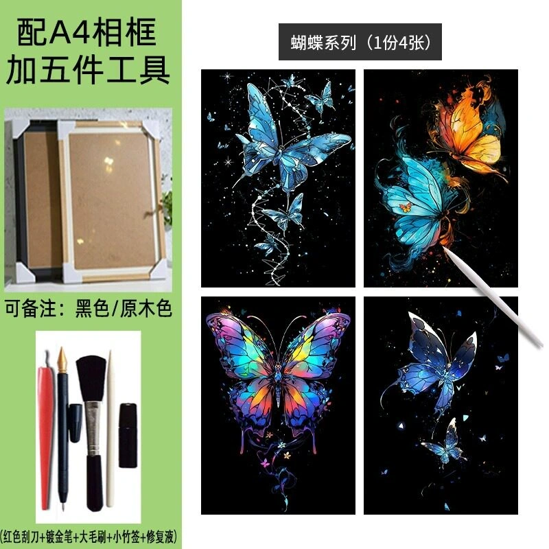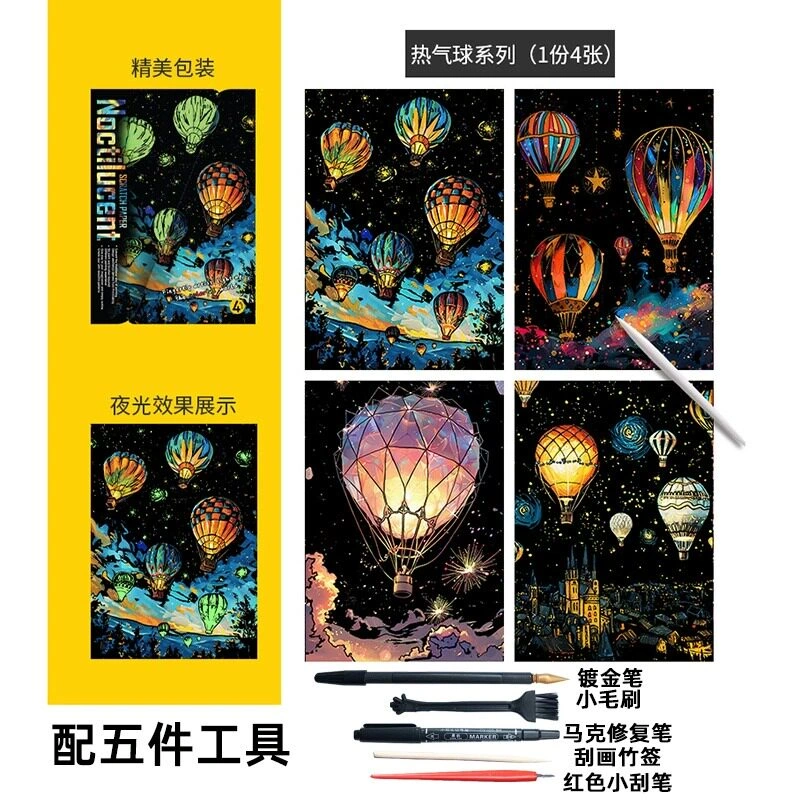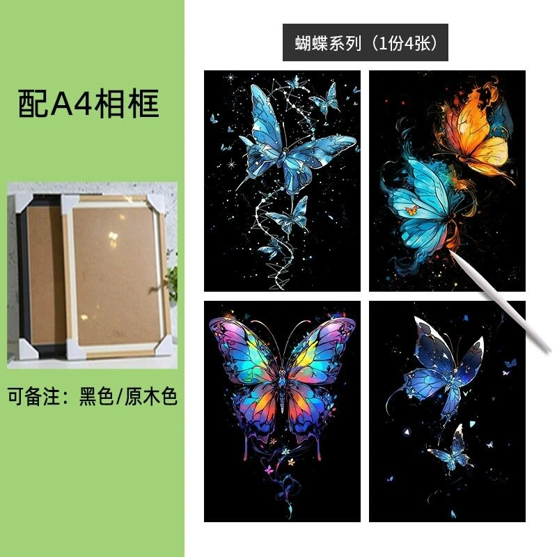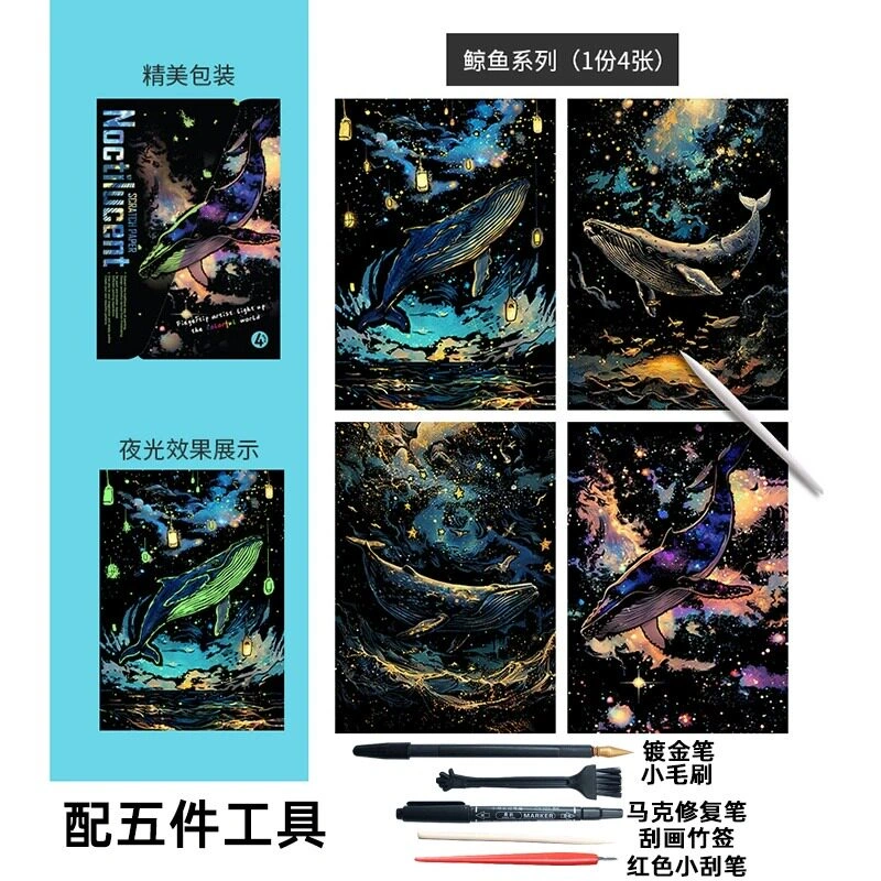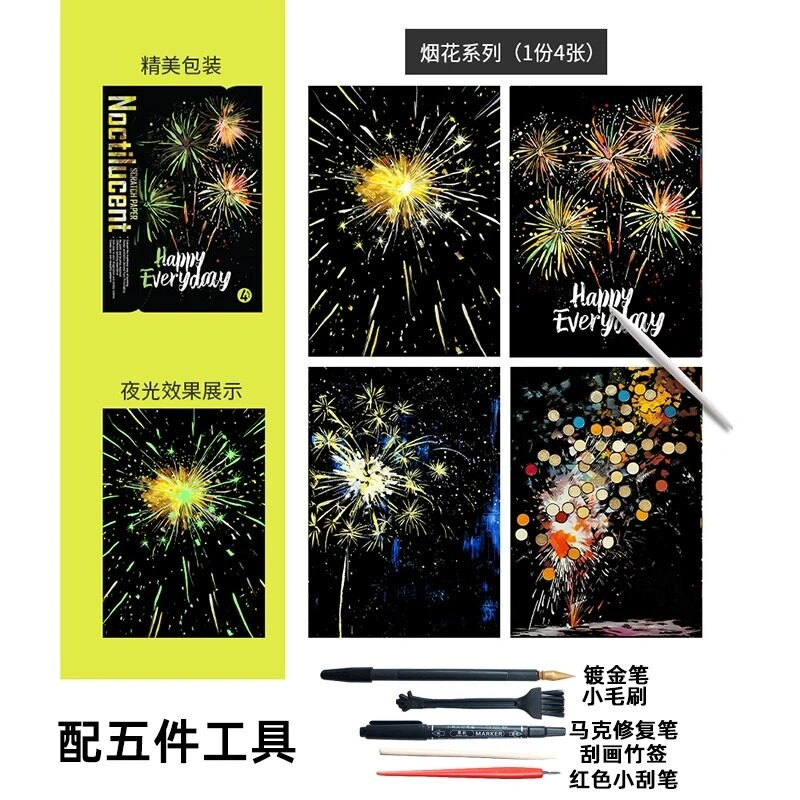 Glow-In-The-Dark Colorful Scratch-Off Painting Scratch-Off Paper Drawing Kidsren's Creative DIY Handmade Boys and Girls Birthday Gift Toys