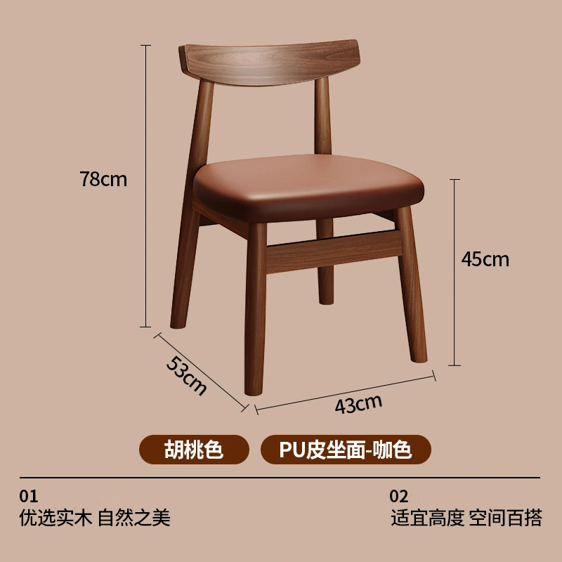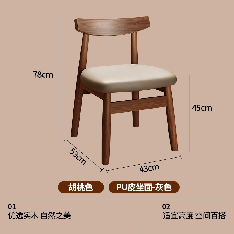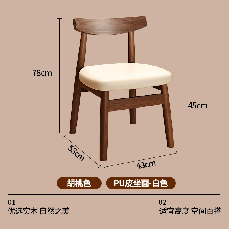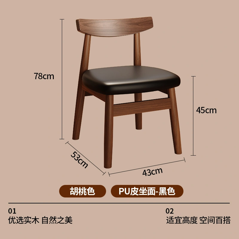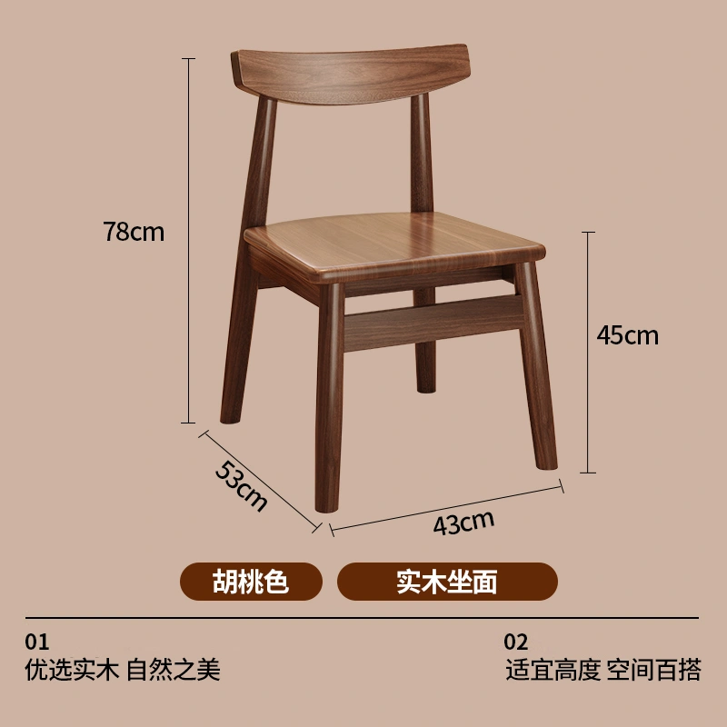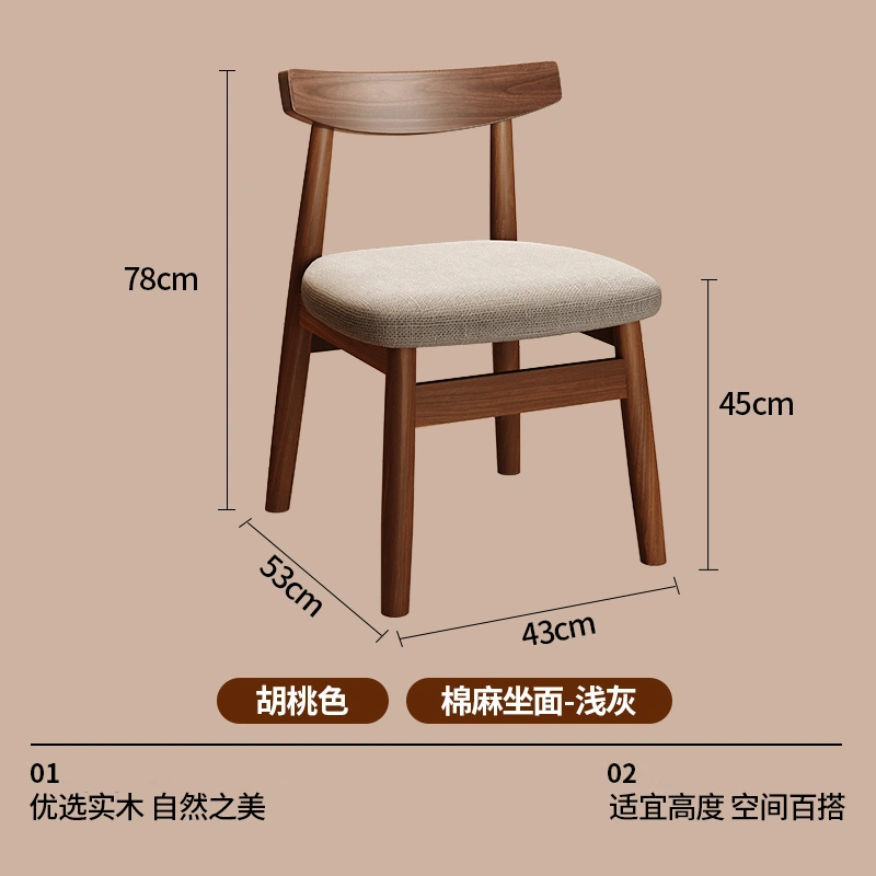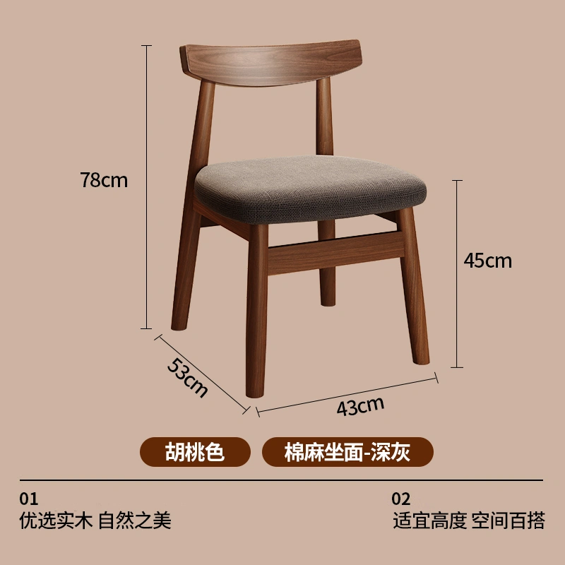 Used Solid Wood Dining Table and Chairs, Home Dining Chairs, Restaurant Dining, Walnut Wood Stools, Backrest, Leisure Tea Table, Horn Chairs