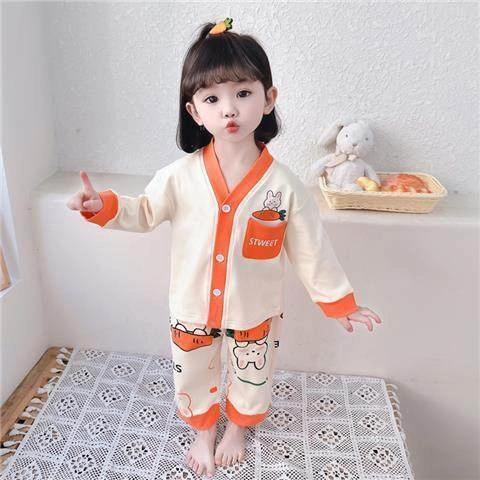 New Spring and Autumn Clothing for Baby Girls 2025, Korean Style Fashionable Home Wear Set for Girls, Little Girl's Two-Piece Pajamas Set