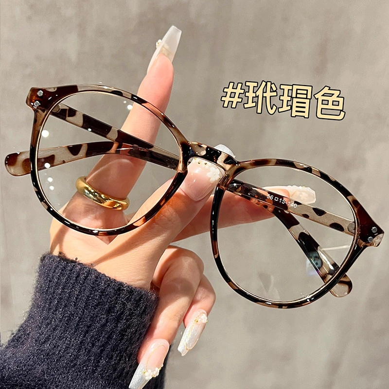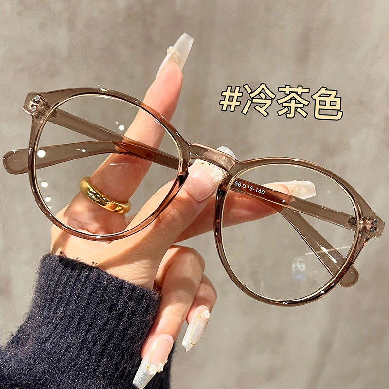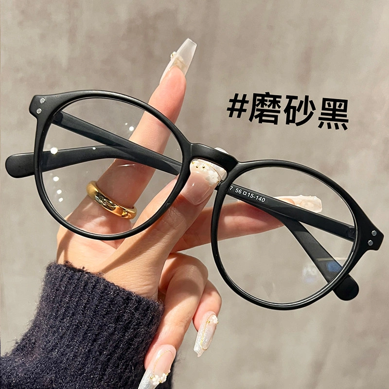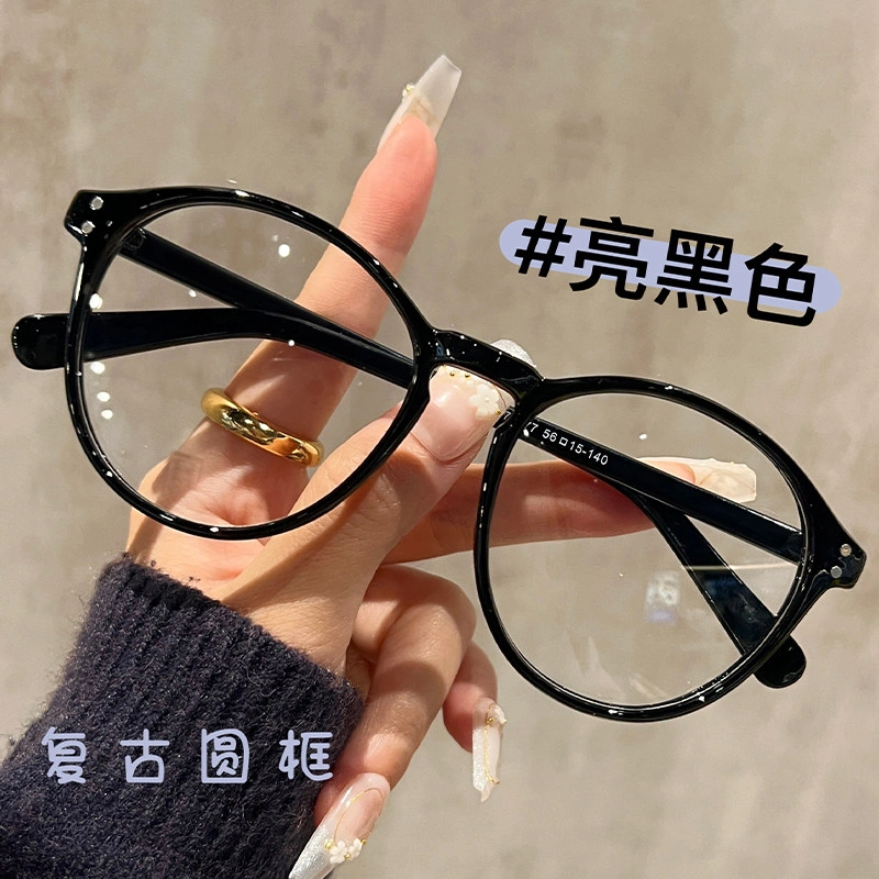 Korean Retro Round Black Glasses for Nearsighted Women, Customizable Prescription, Natural Look, Face-Slimming, Large Frame Eyeglass Frames