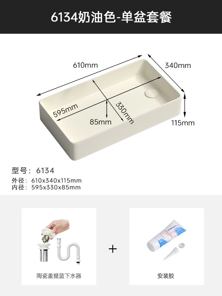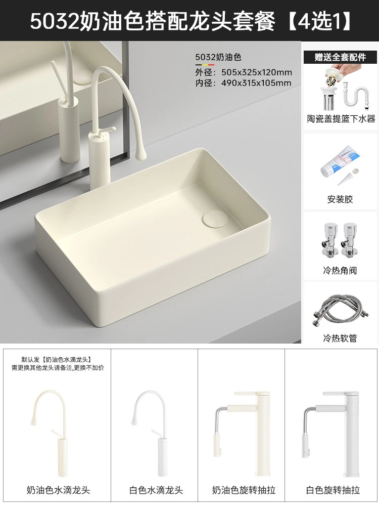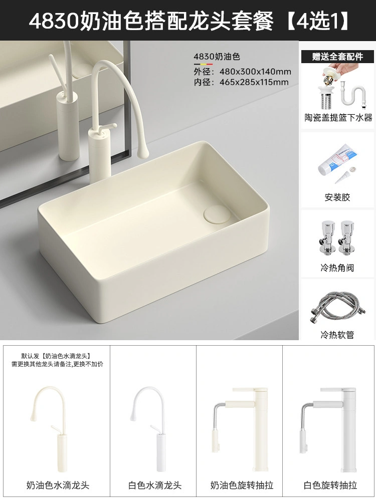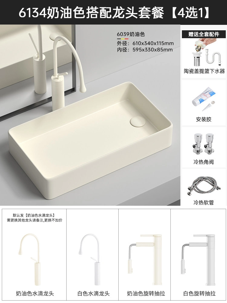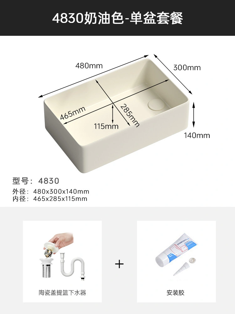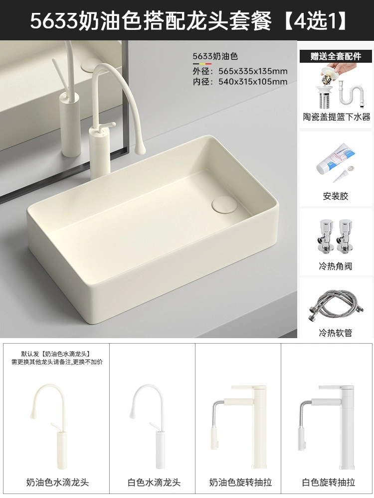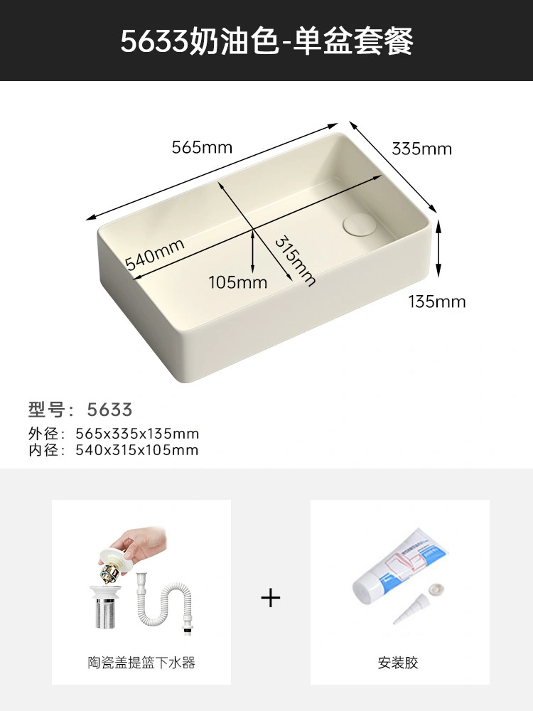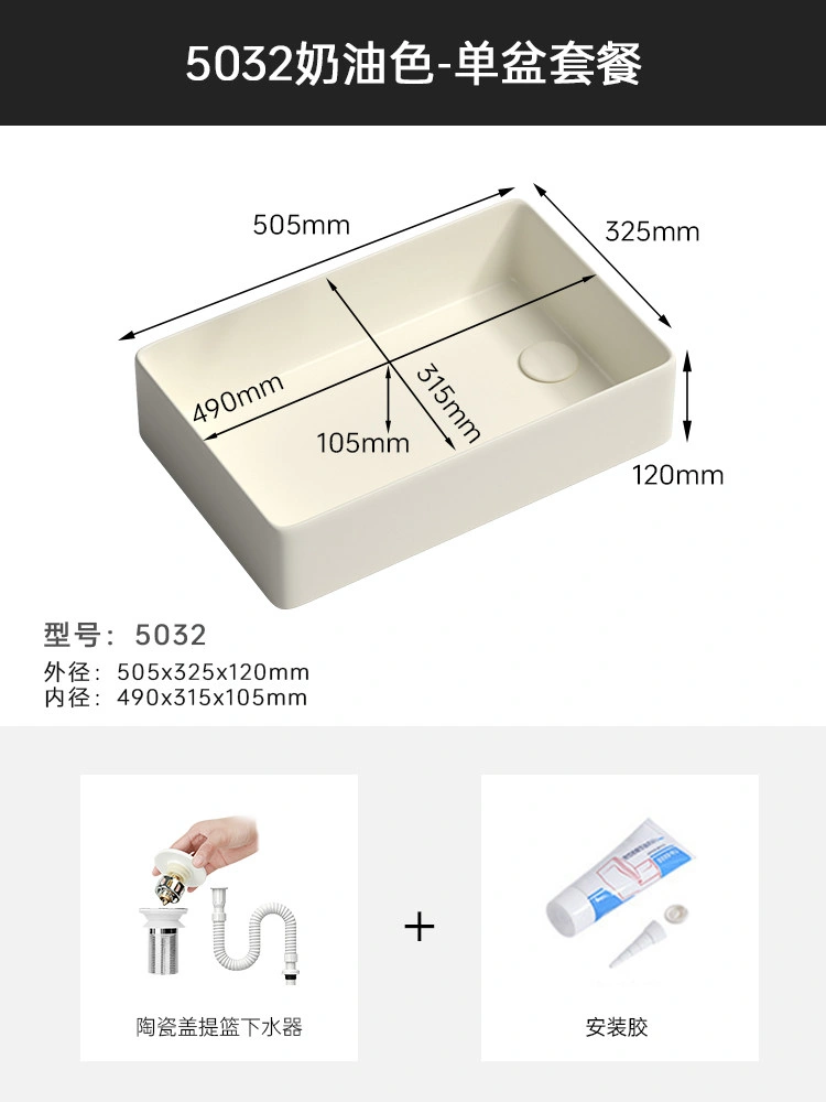 Cream Balcony Ceramic Laundry Basin Countertop Basin Laundry Pool Trough Side Row Left and Right Side Drain Wash Basin Single Basin