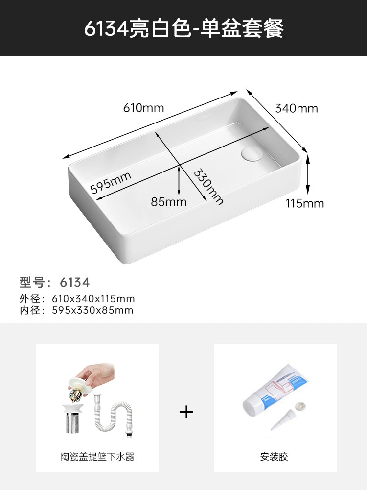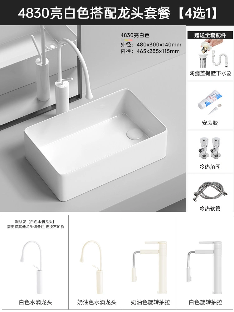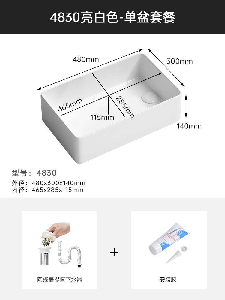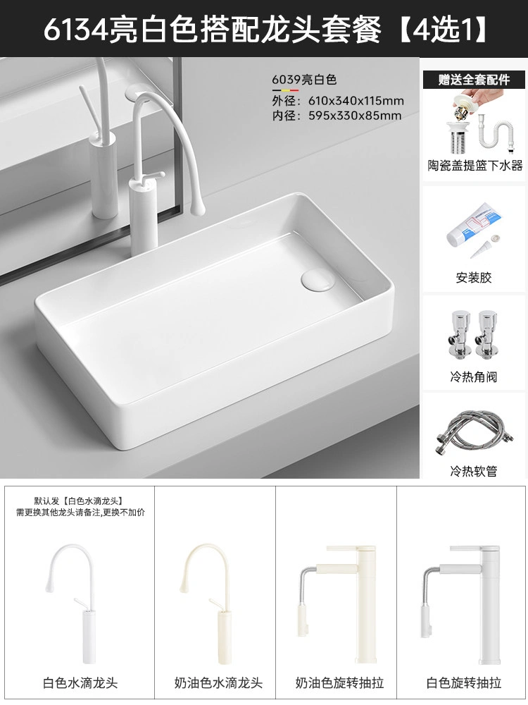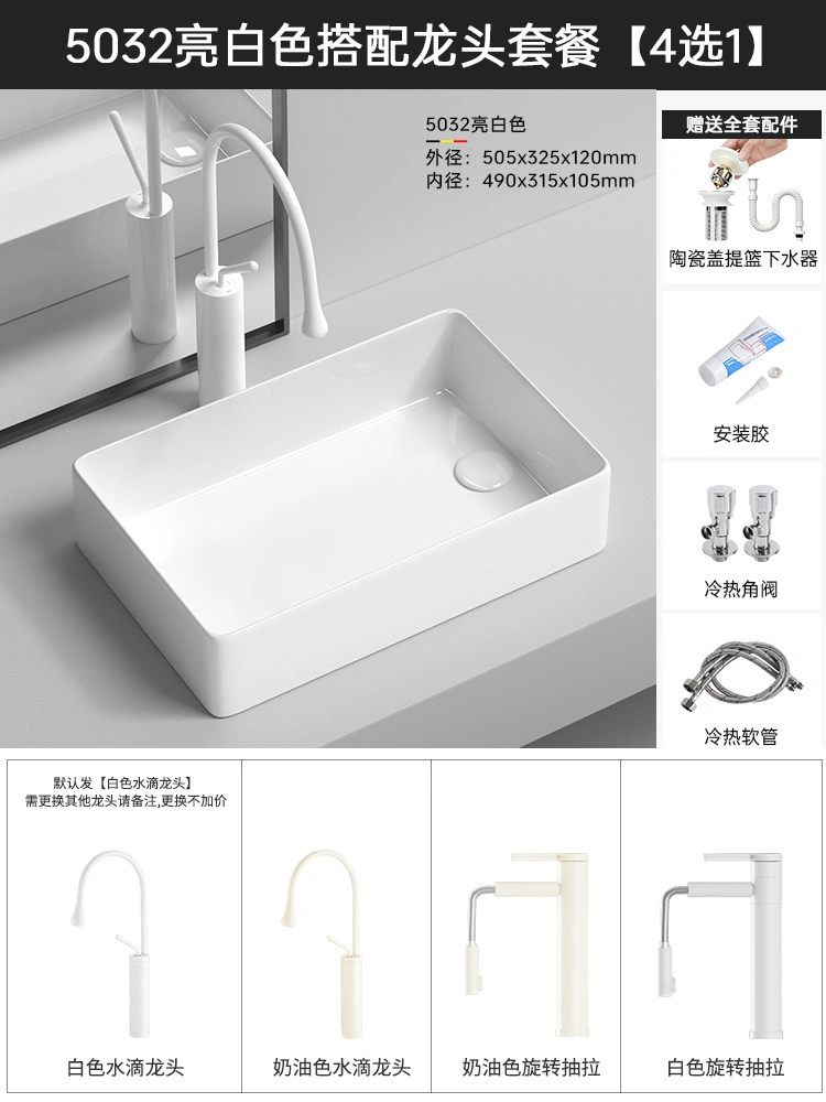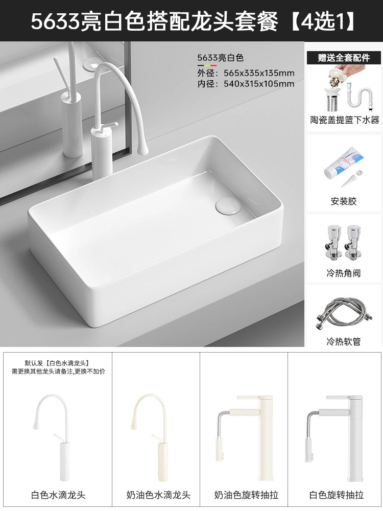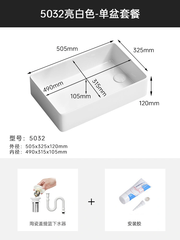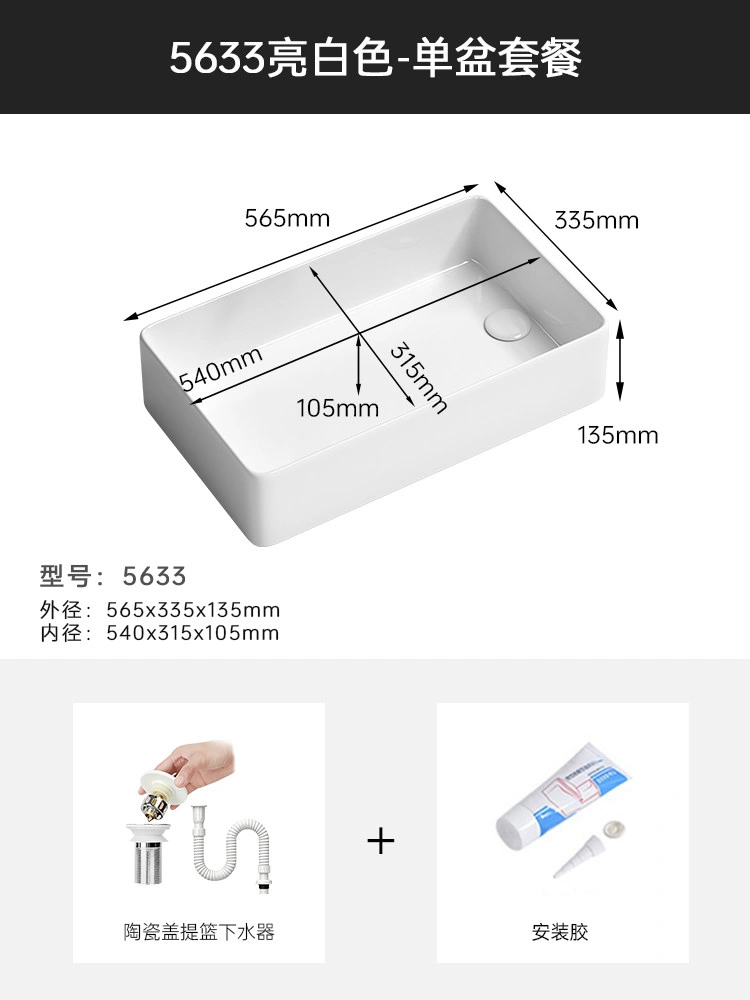 Cream Balcony Ceramic Laundry Basin Countertop Basin Laundry Pool Trough Side Row Left and Right Side Drain Wash Basin Single Basin