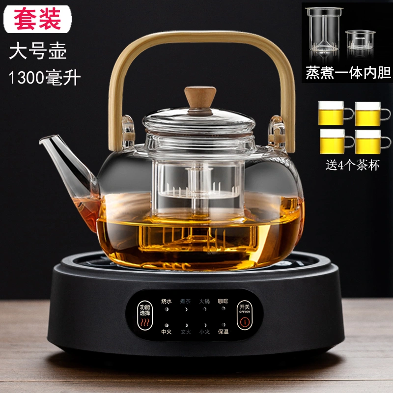 New 8-Function 1500W Electric Ceramic Stove Tea Maker, Steaming and Cooking Integrated Teapot, Thickened Glass Water Boiling and Tea Brewing Set