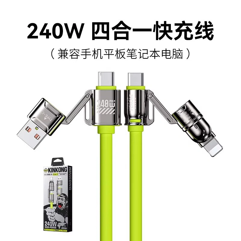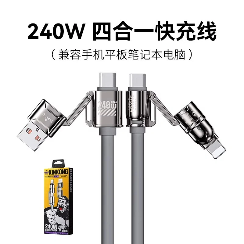 240W Charging Cable Four-In-One Data Cable Liquid Silicone Suitable for Apple 15, Huawei, Xiaomi, Type-C Phones, iPad Computers, Dual Type-C Super Fast Charging, Extended Length, Car Charger, Dual-Head iPad