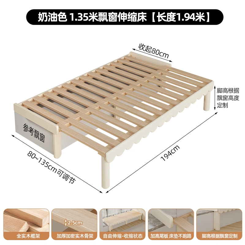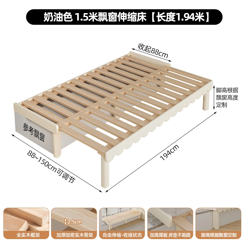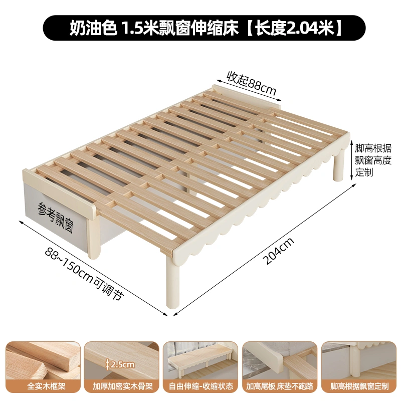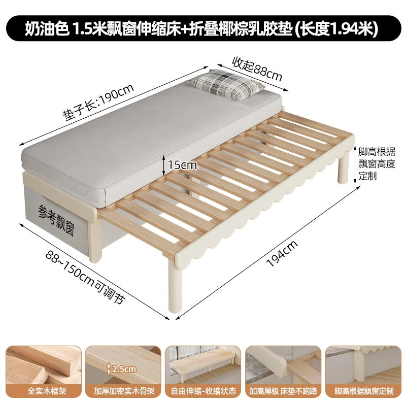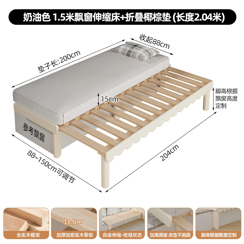 Retractable Bed for Bay Window, 1.2m Guest Bedroom, Small Apartment, Study Room Renovation, Temporary Overnight Bed, Window Sill Solid Wood Pull-Out Bed