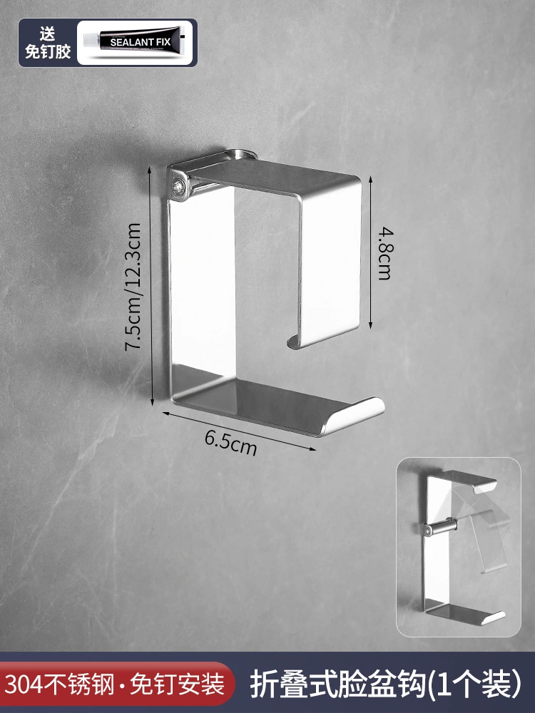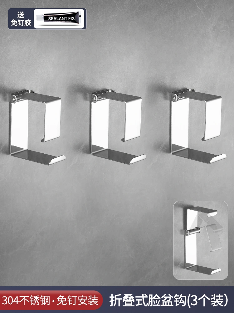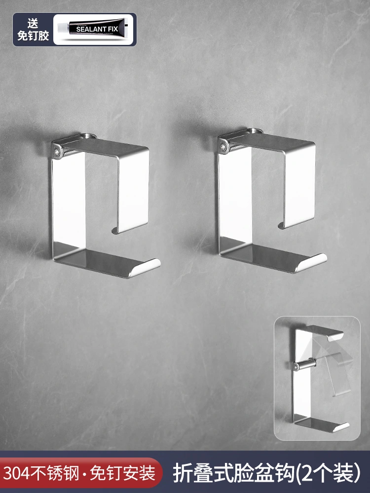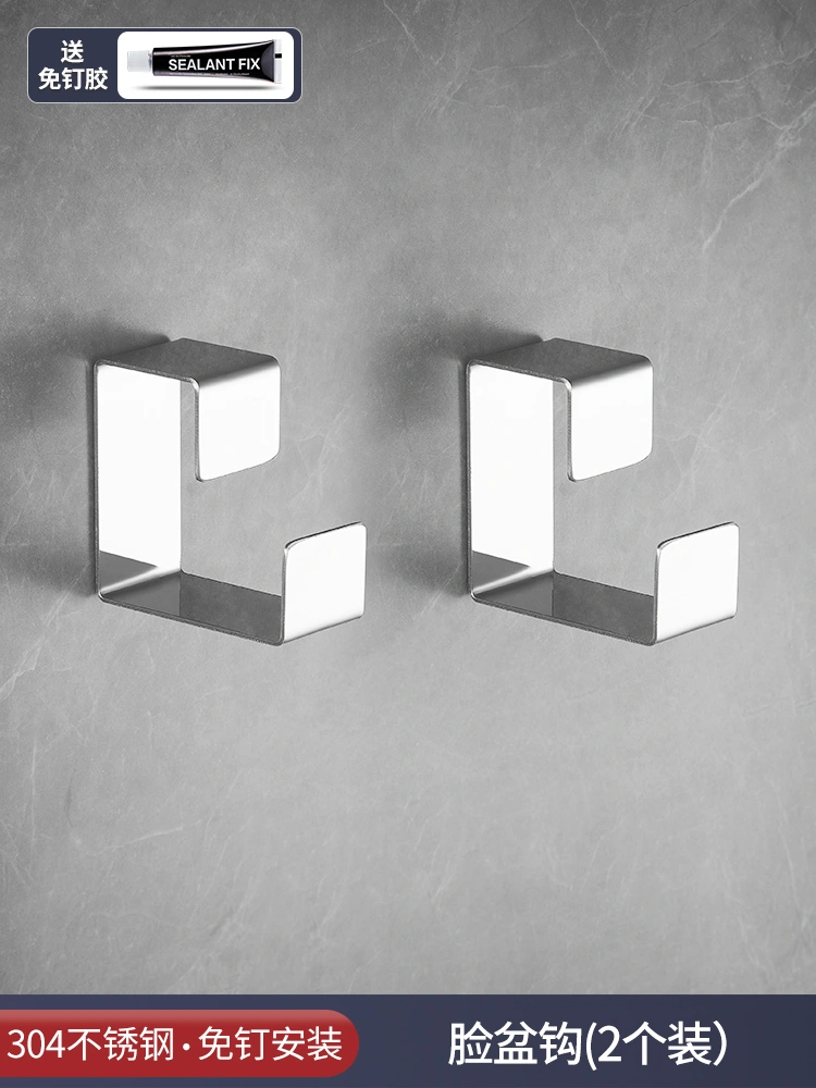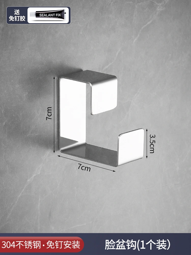 Bathroom No-Drill Storage Rack for Washbasin with Hook, 304 Stainless Steel Washbasin Storage Shelf