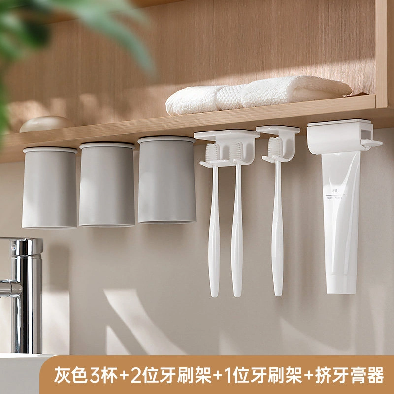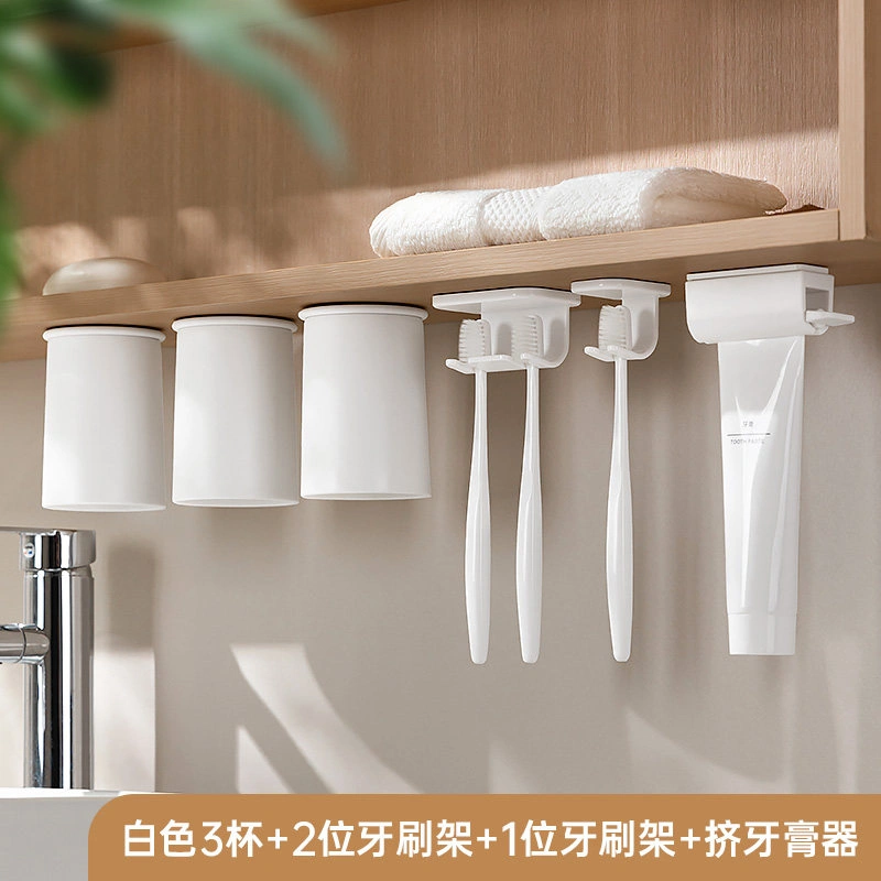 Various Bathroom Gadgets: Magnetic Mouthwash Cup under the Mirror Cabinet, Upside-Down Toothbrush Holder for a Family of Four, Toothpaste Dispenser