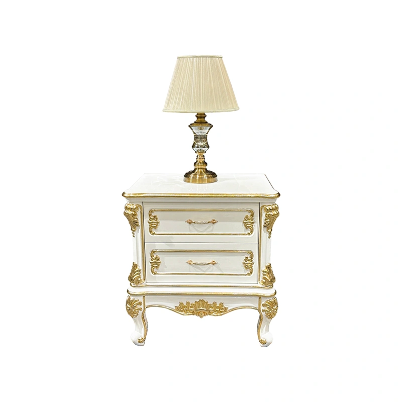 French-Style Bedside Table European-Style Solid Wood Bedside Table Palace Luxury Neoclassical Carved Bedroom Storage Cabinet with Drawers
