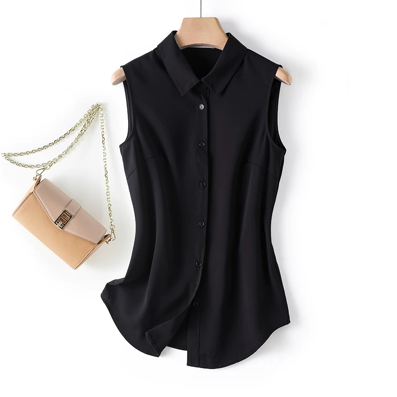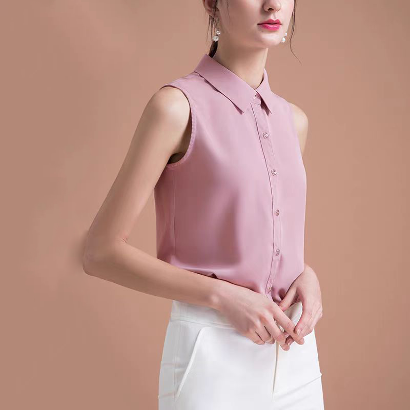 White Sleeveless Shirt Collar Women's Spring, Autumn and Summer New Style Inner Vest Top Professional Base Layer Chiffon Shirt