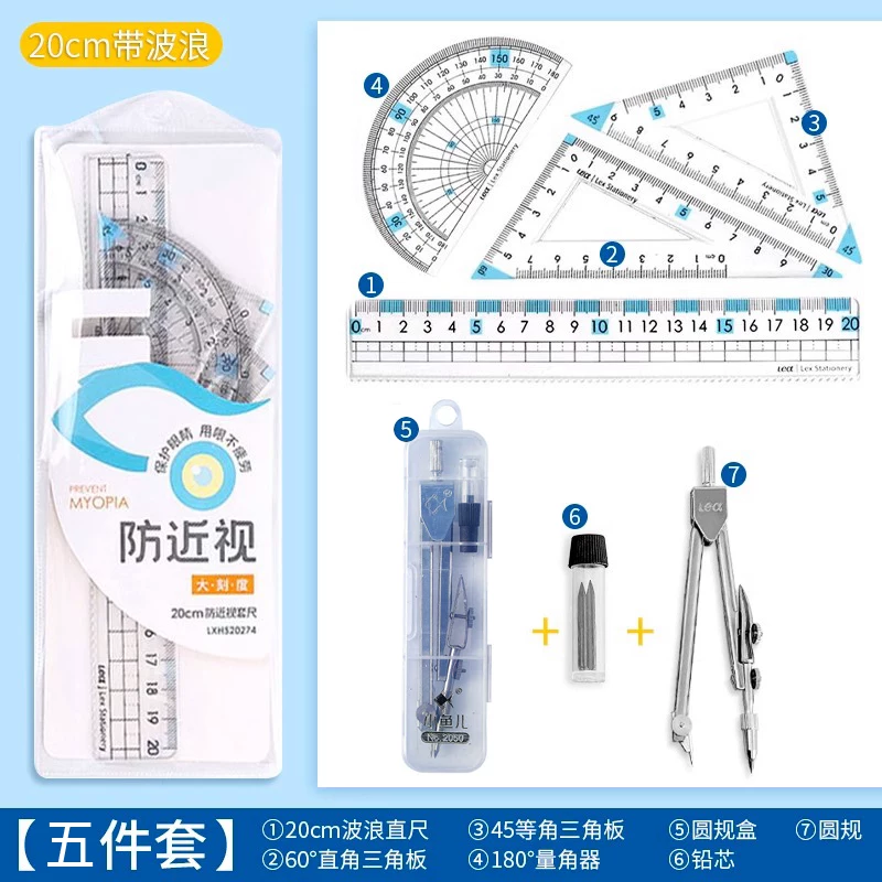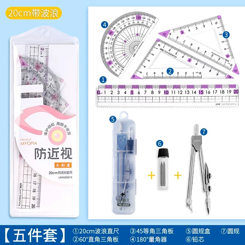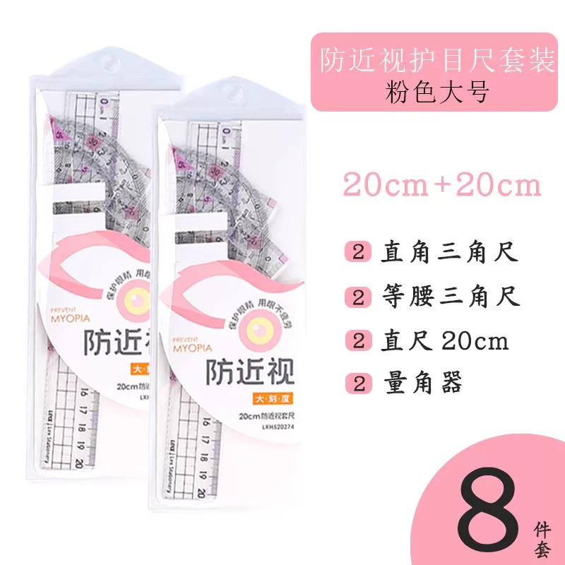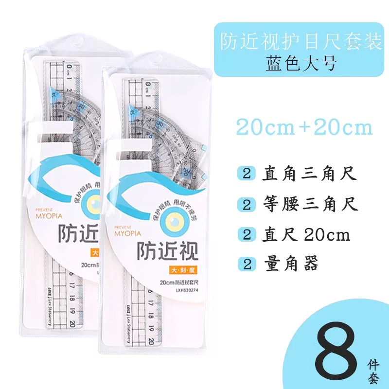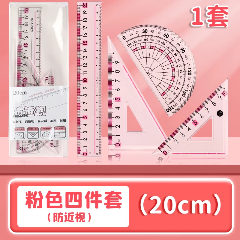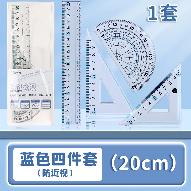 Special Anti-Myopia Ruler Set for Primary School Students, Eye-Protecting Stationery Ruler, Drawing Protractor, Triangle Ruler, 20cm Four-Piece Set