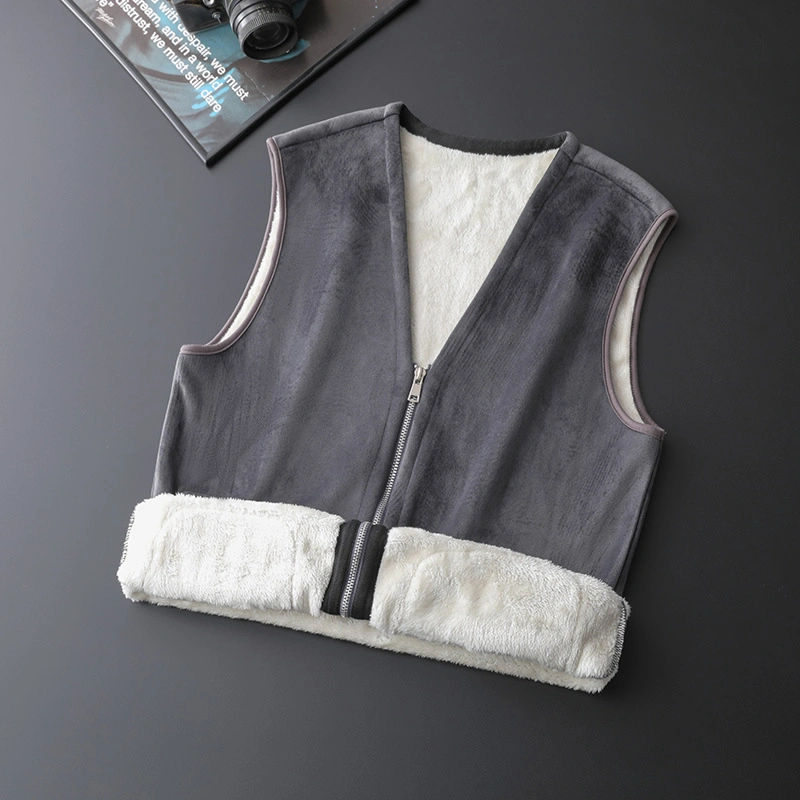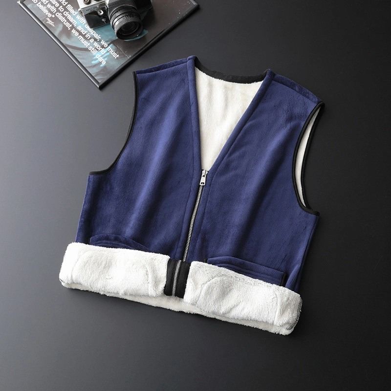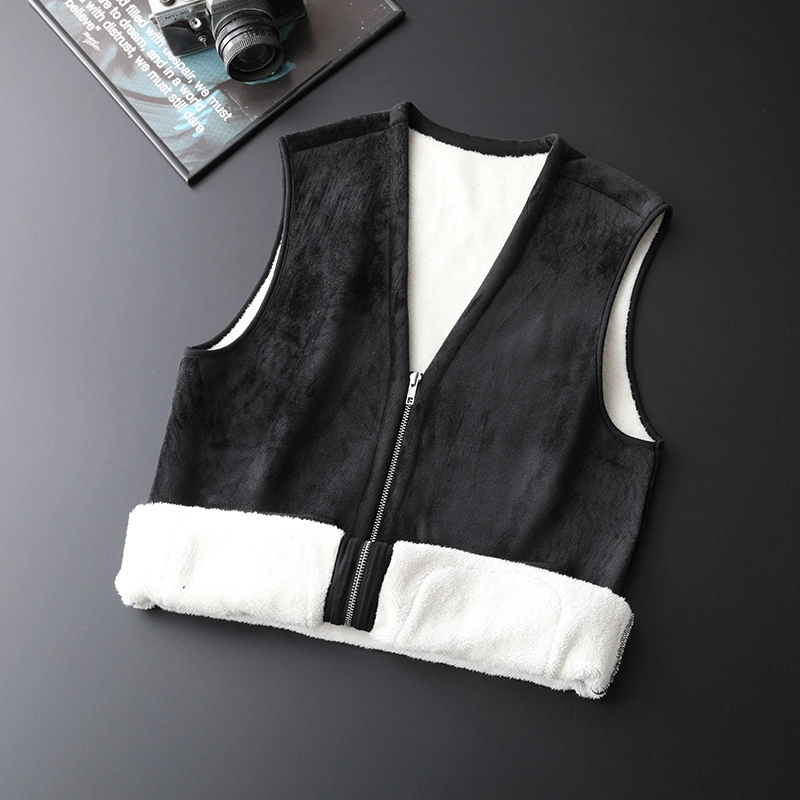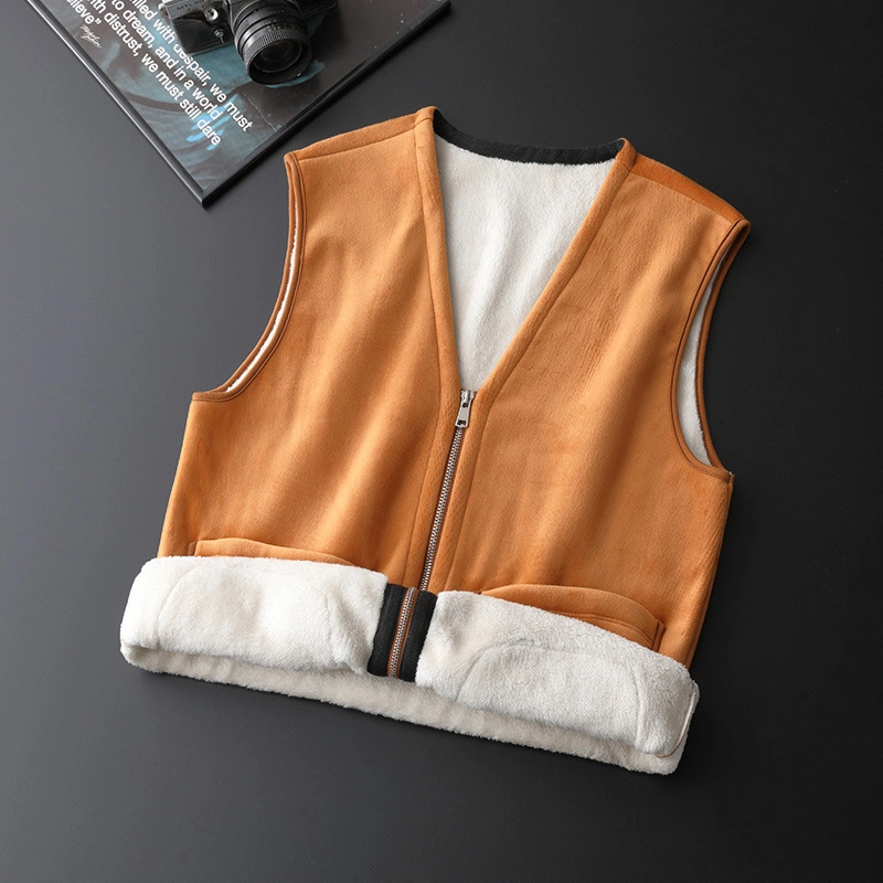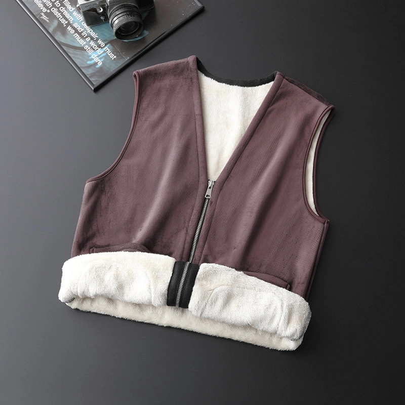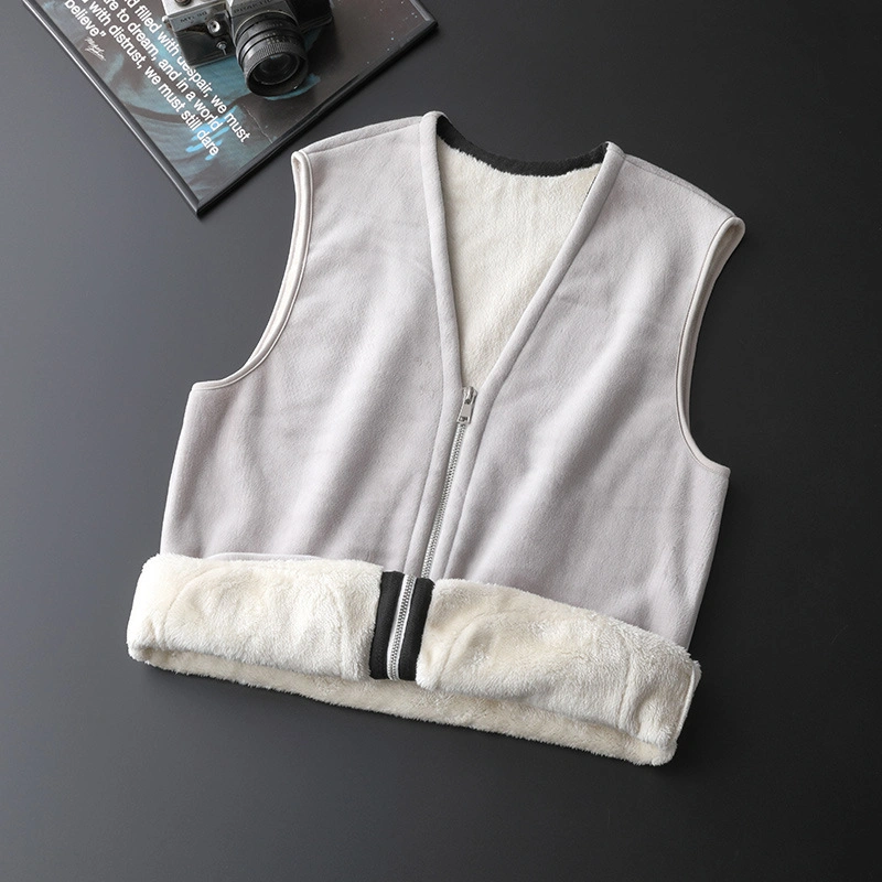 Winter Lamb Wool Fleece-Lined Thickened Vest, Warm and Cold-Resistant Zip-Up Cardigan Vest Top
