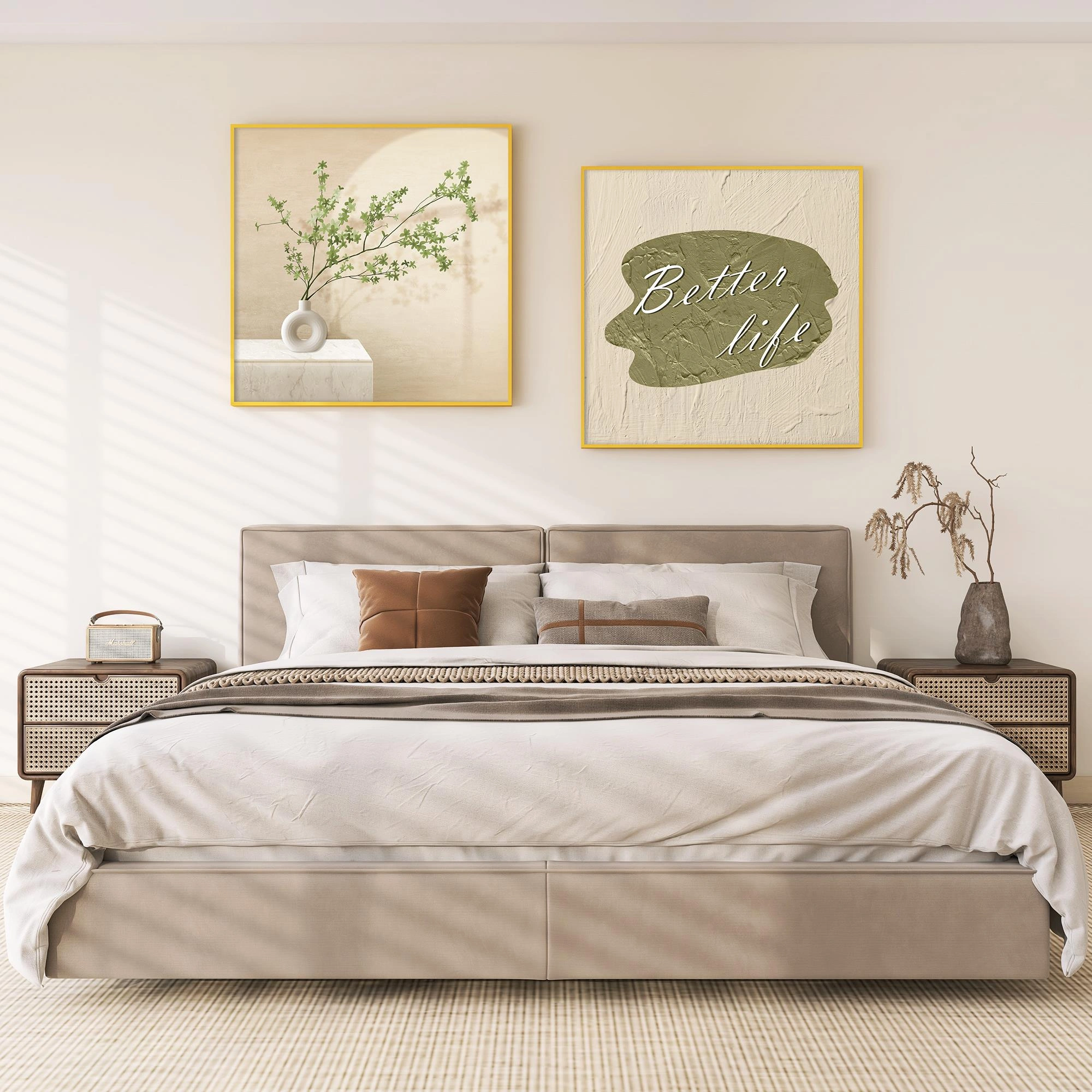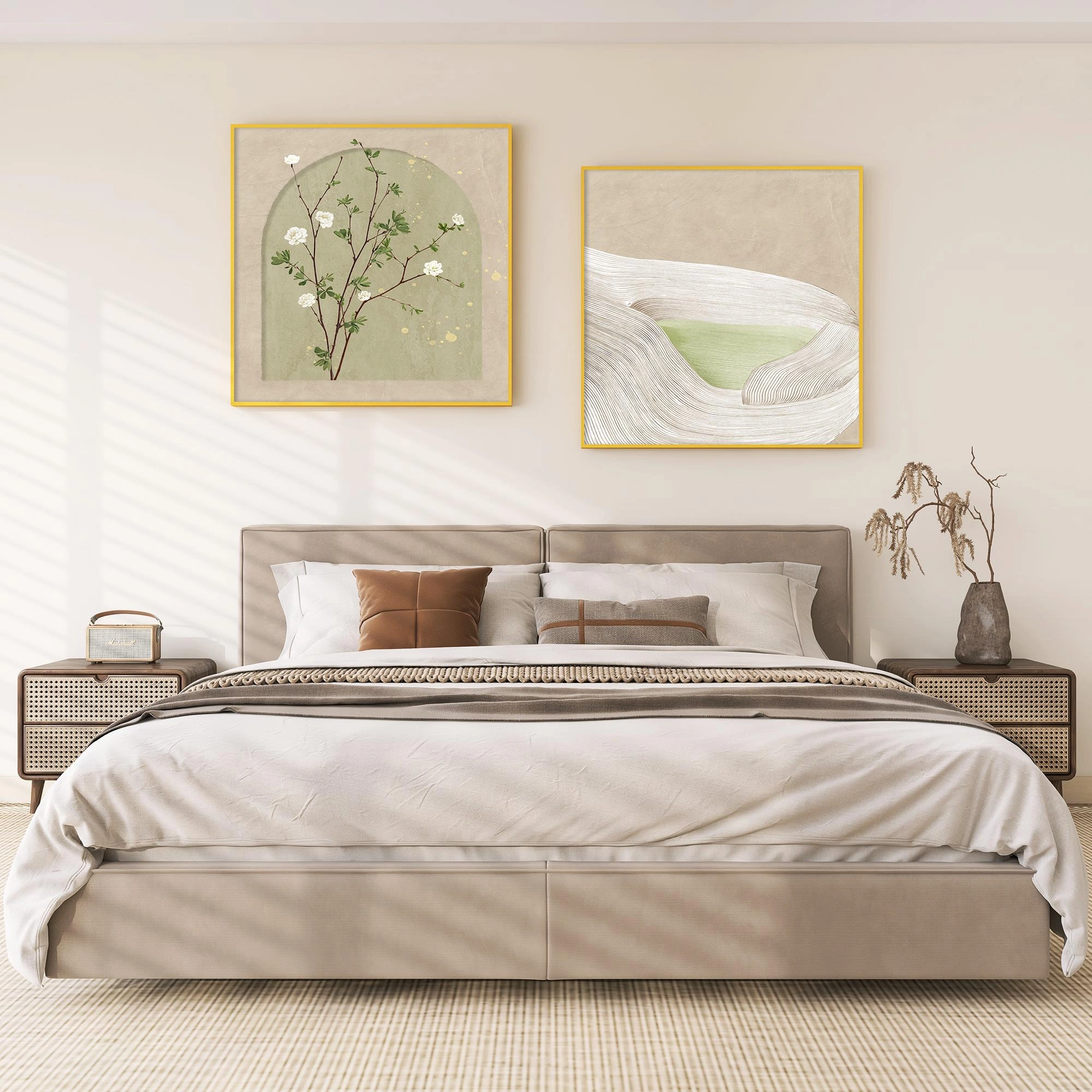 Quiet wind bed head wall decoration painting master bedroom double hanging painting small fresh warm room background wall mural