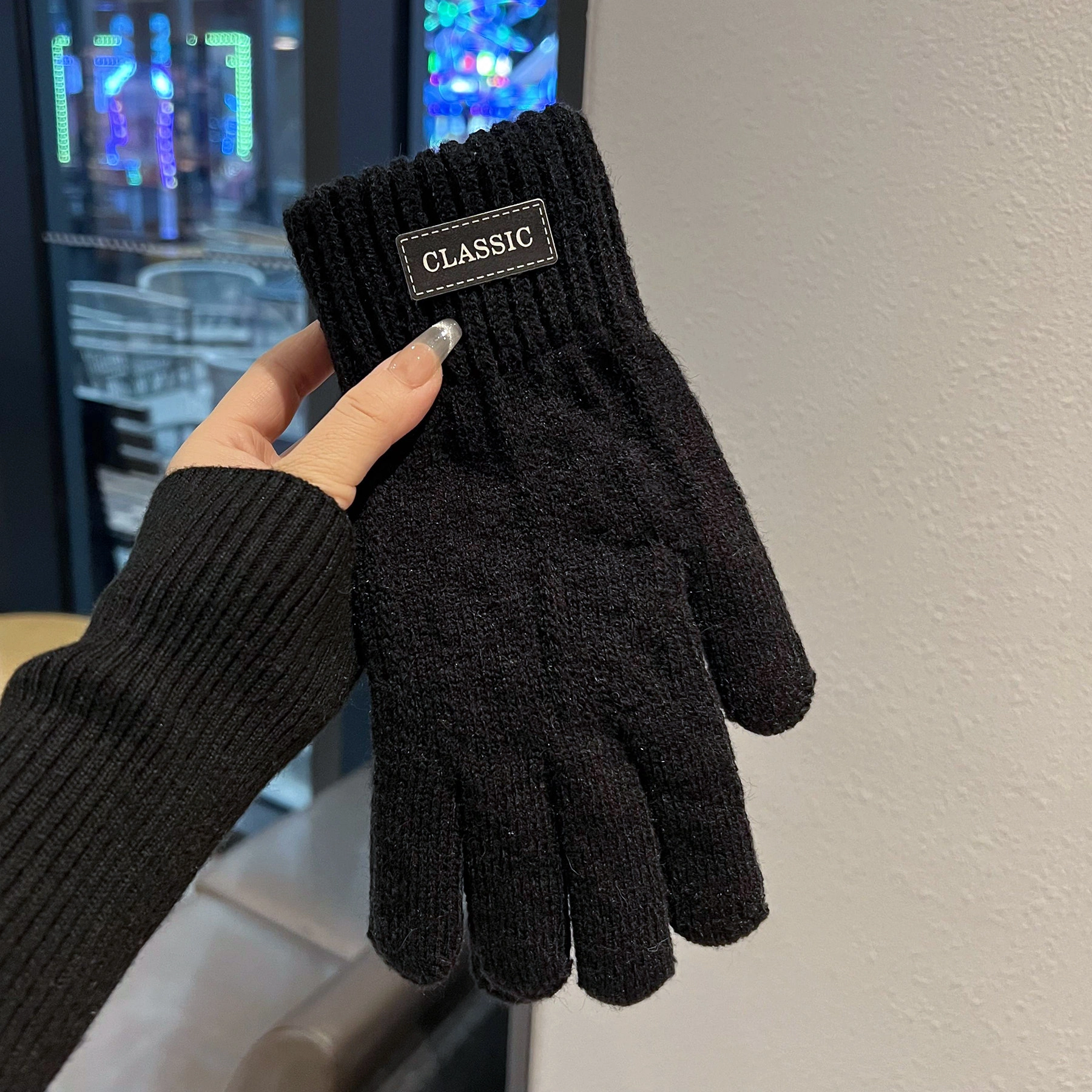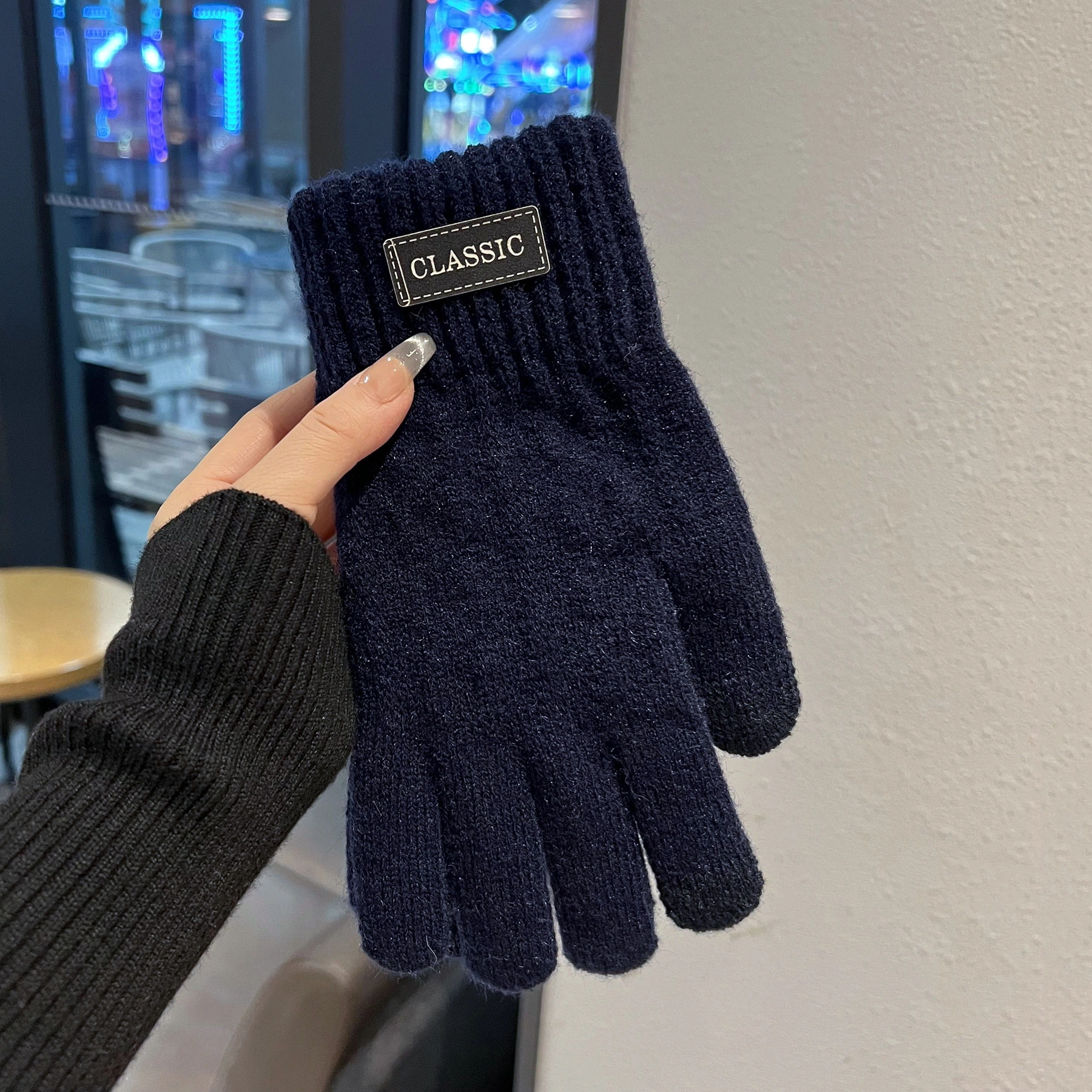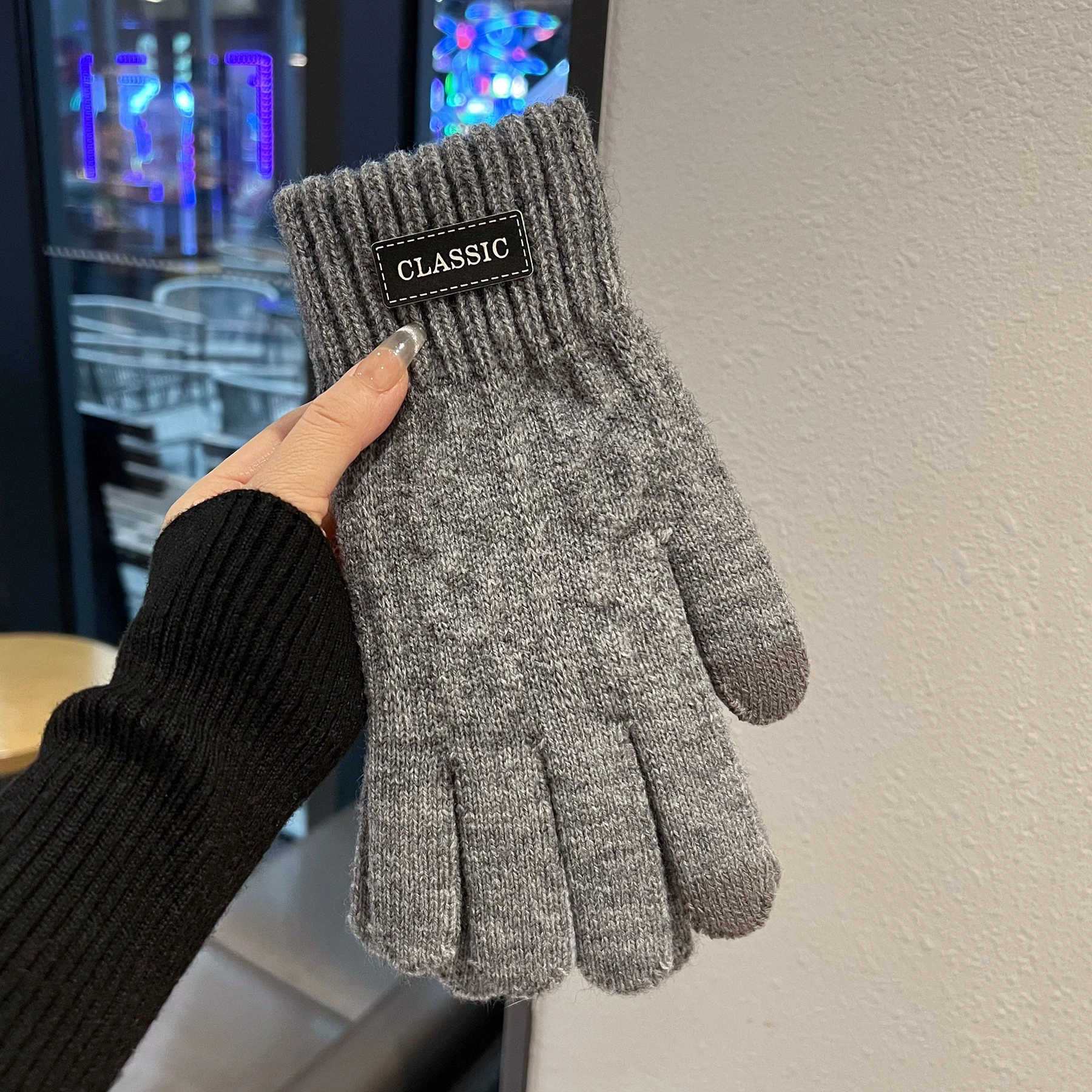 Korean Style Gloves for Men, Trendy Winter Warm and Cold-Proof, Fleece-Lined and Thickened, Touchscreen-Compatible, Knitted Cotton Gloves for Women, Couple Style