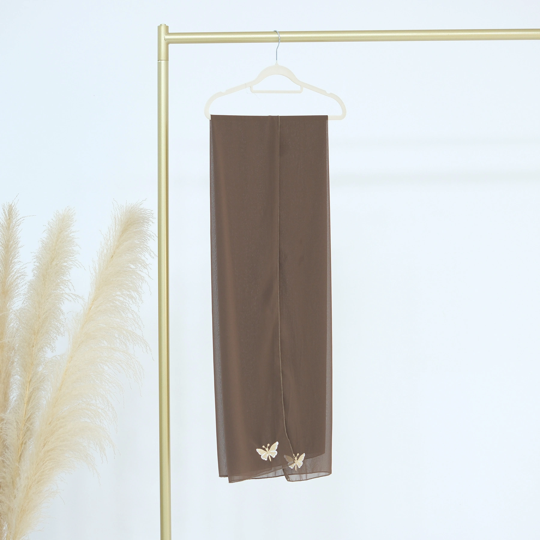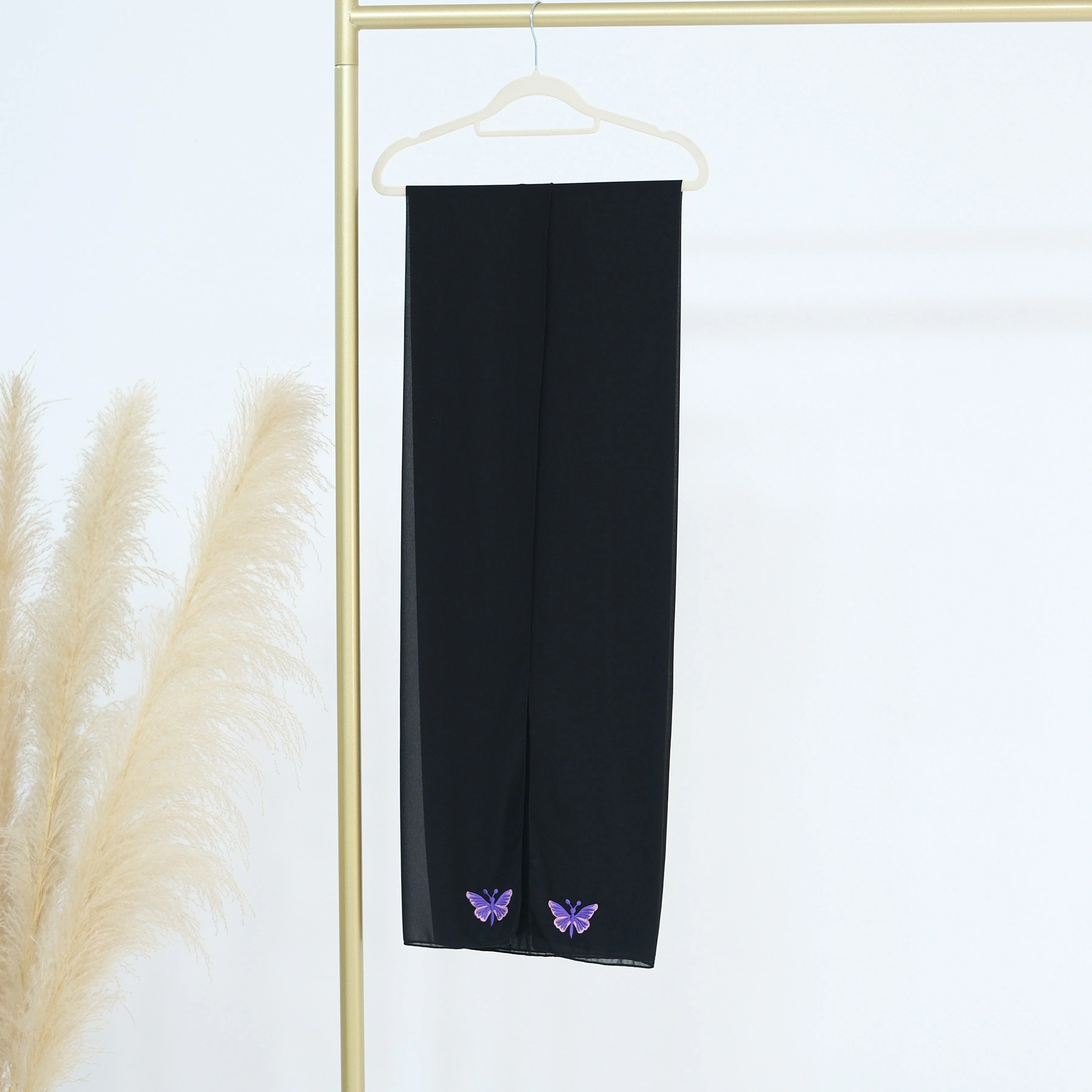 Cross-Border Turkish Long Scarf, Middle Eastern Butterfly Embroidery, Solid Color Headscarf, Women's Gauze Scarf, Shawl, Arab Women's Clothing Accessories