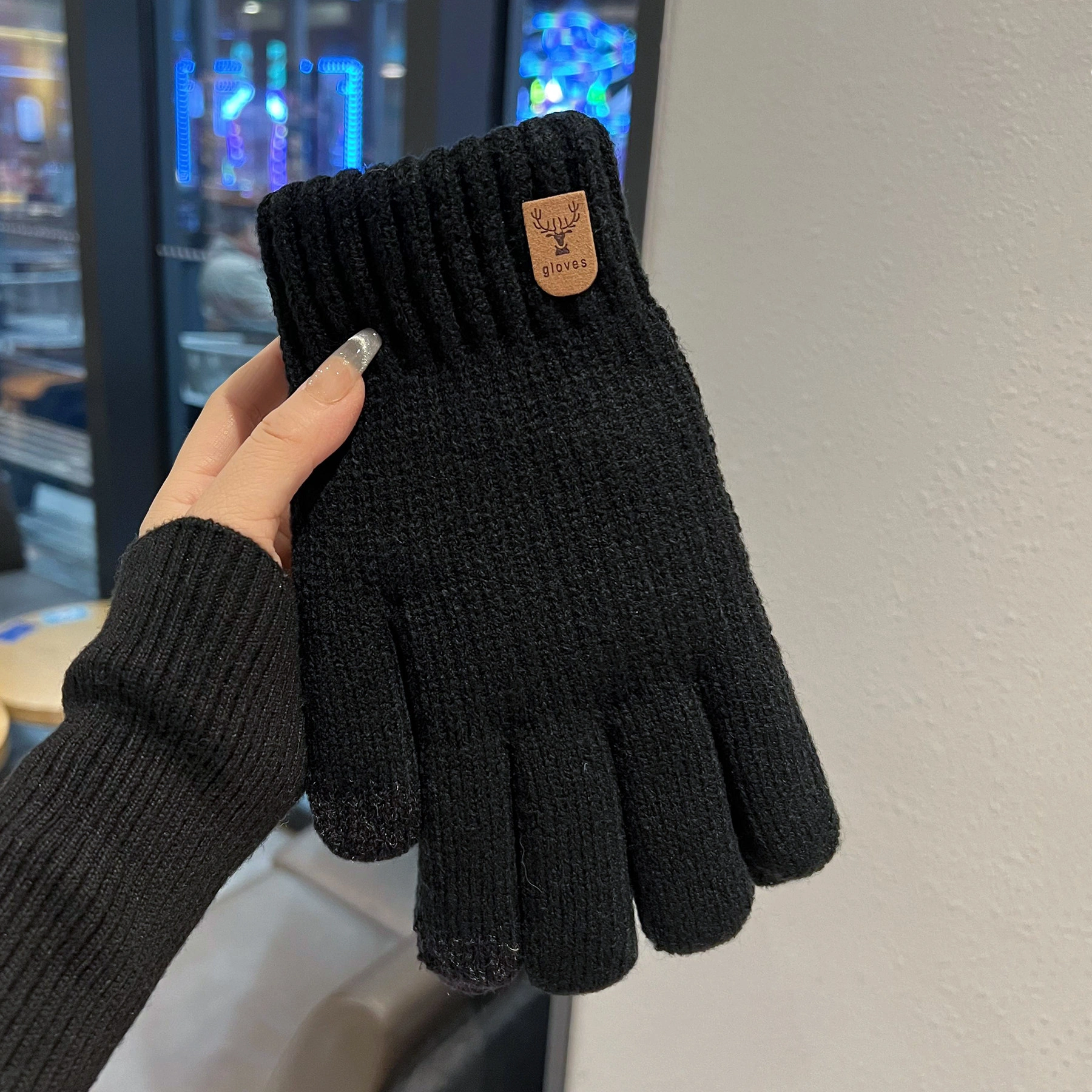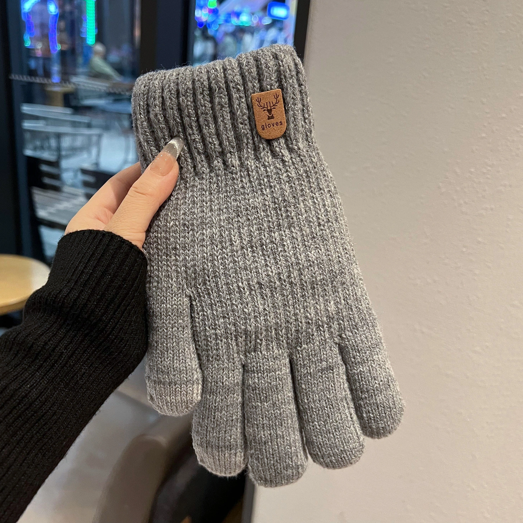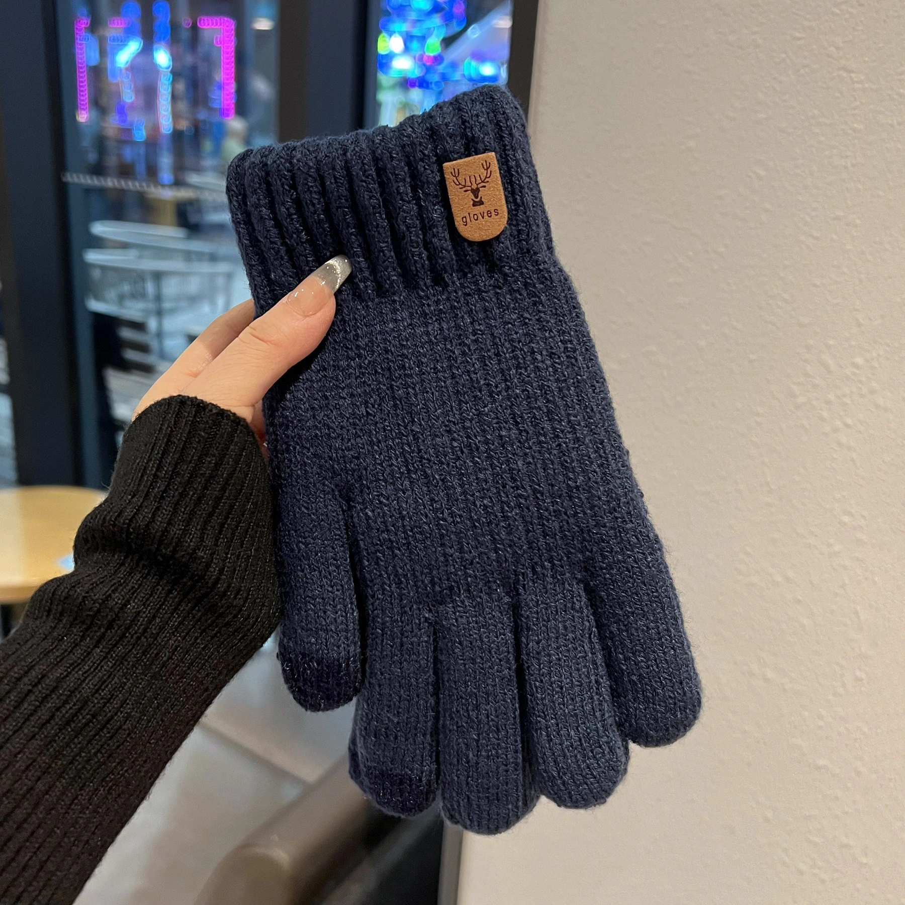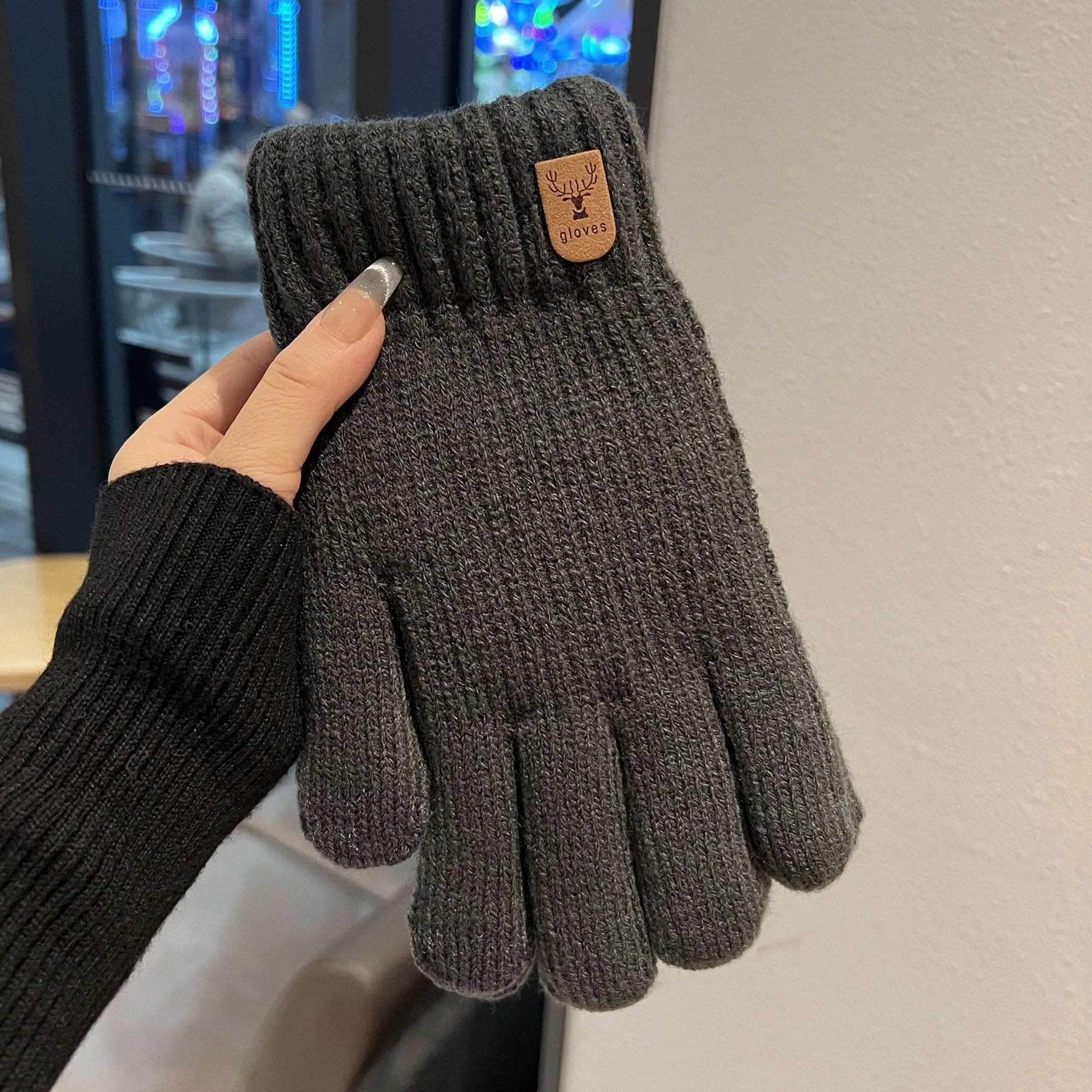Touchscreen-Compatible Cotton Wool Gloves for Men, Large Size, Winter Double-Layered, Cold-Proof, Warm, Fleece-Lined, Thickened, Knitted, for Cycling and Sports