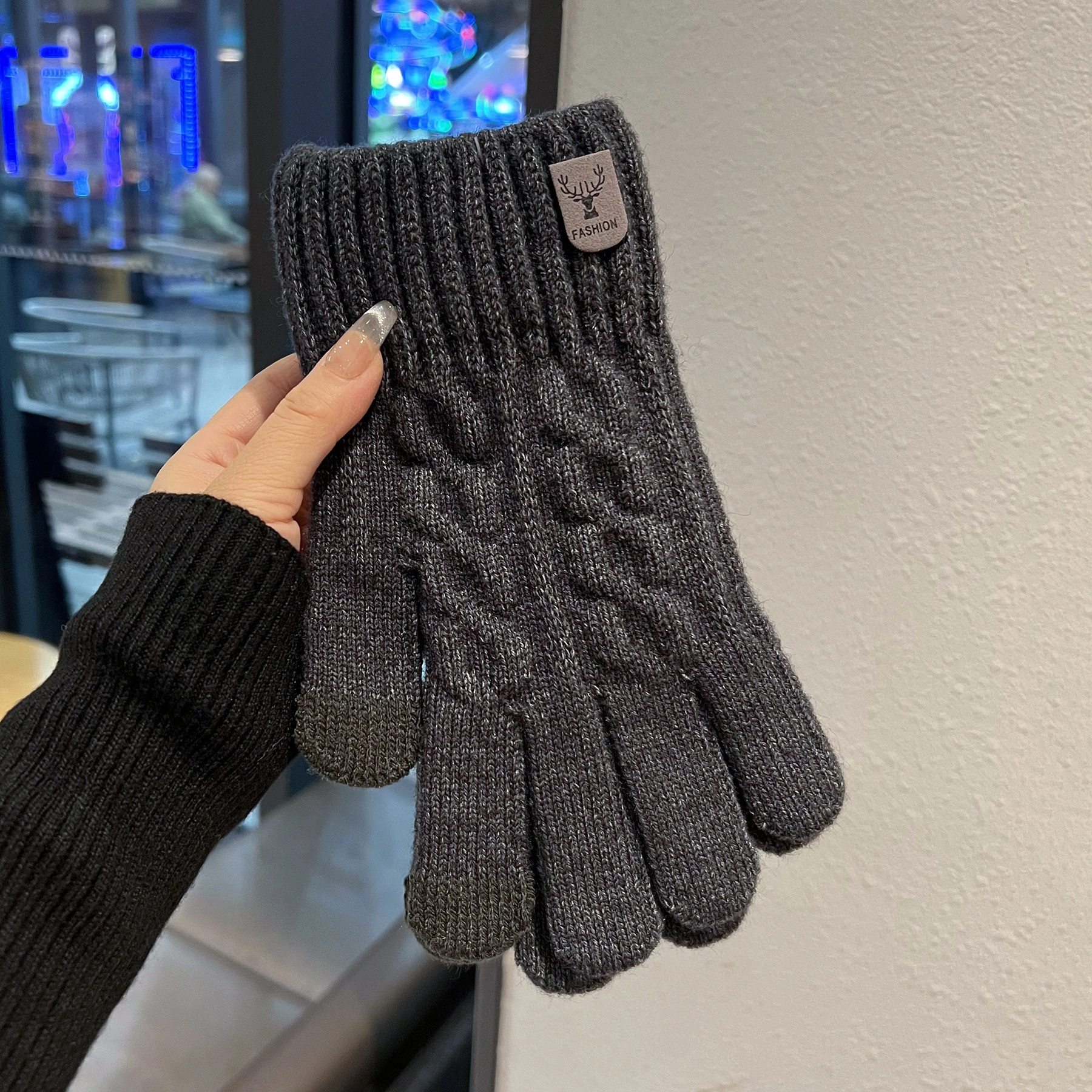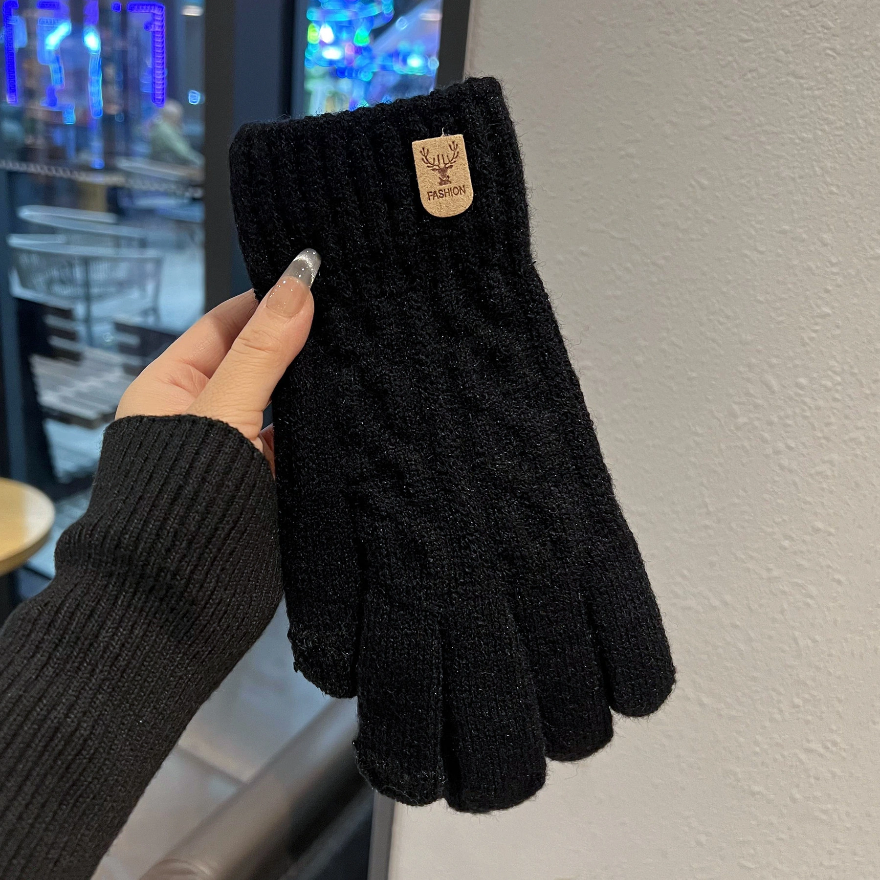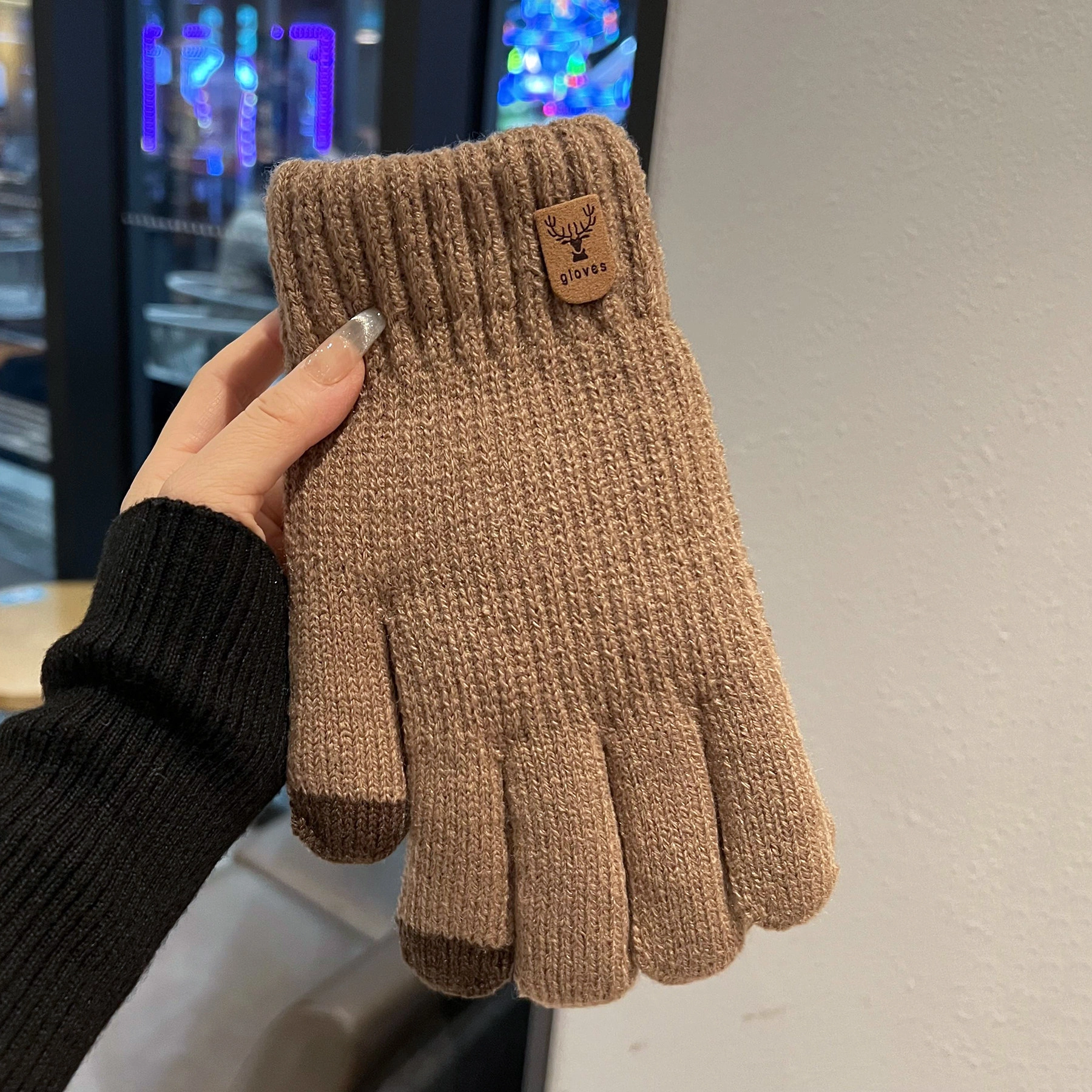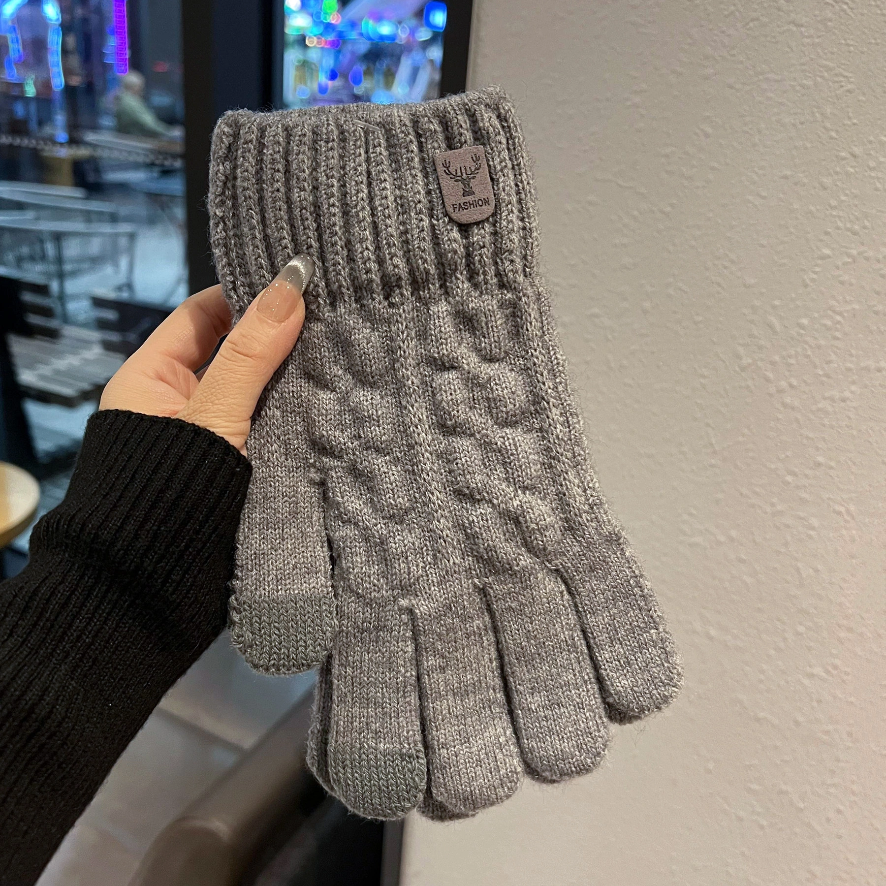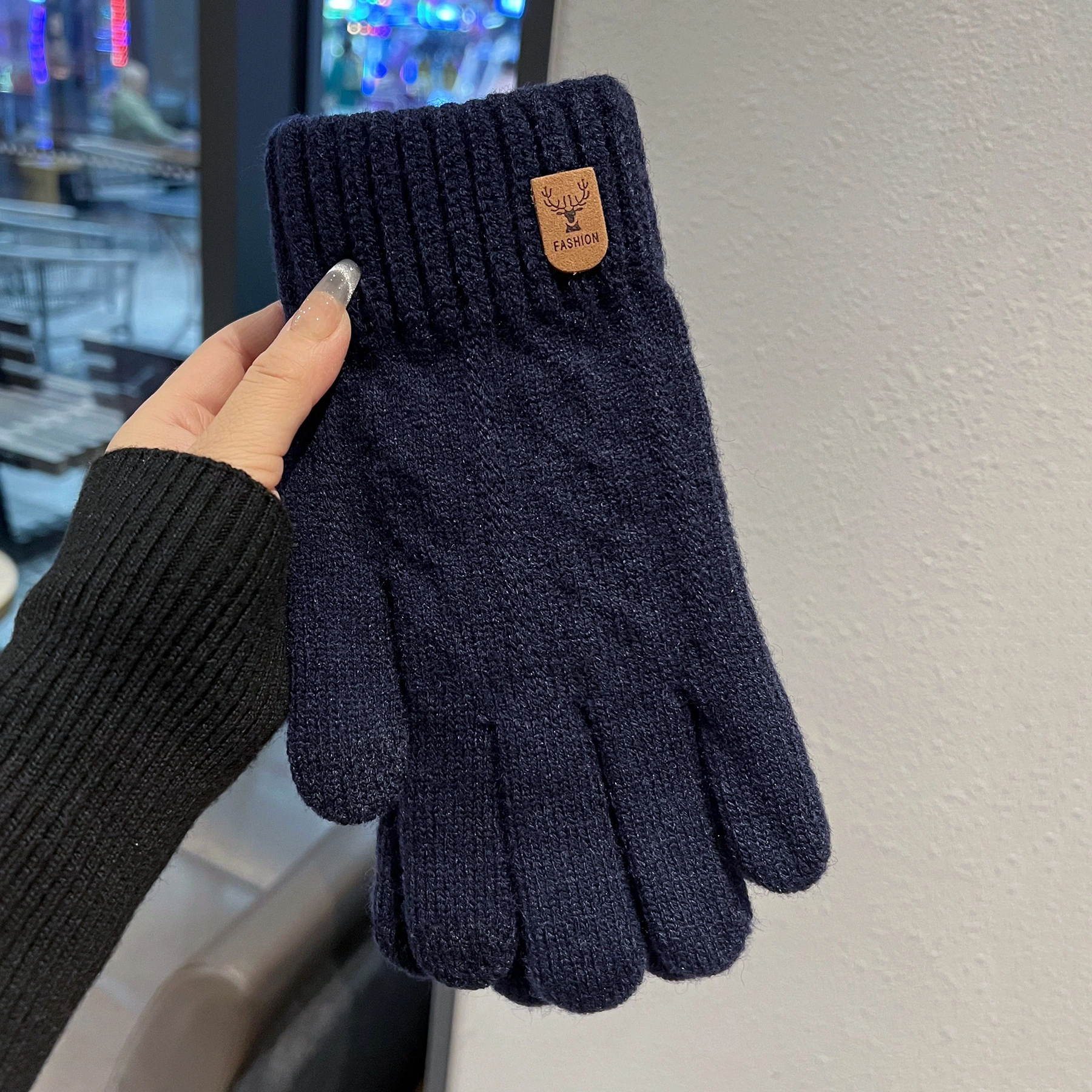 Touchscreen-Compatible Cotton Wool Gloves for Men, Large Size, Winter Double-Layered, Cold-Proof, Warm, Fleece-Lined, Thickened, Knitted, for Cycling and Sports