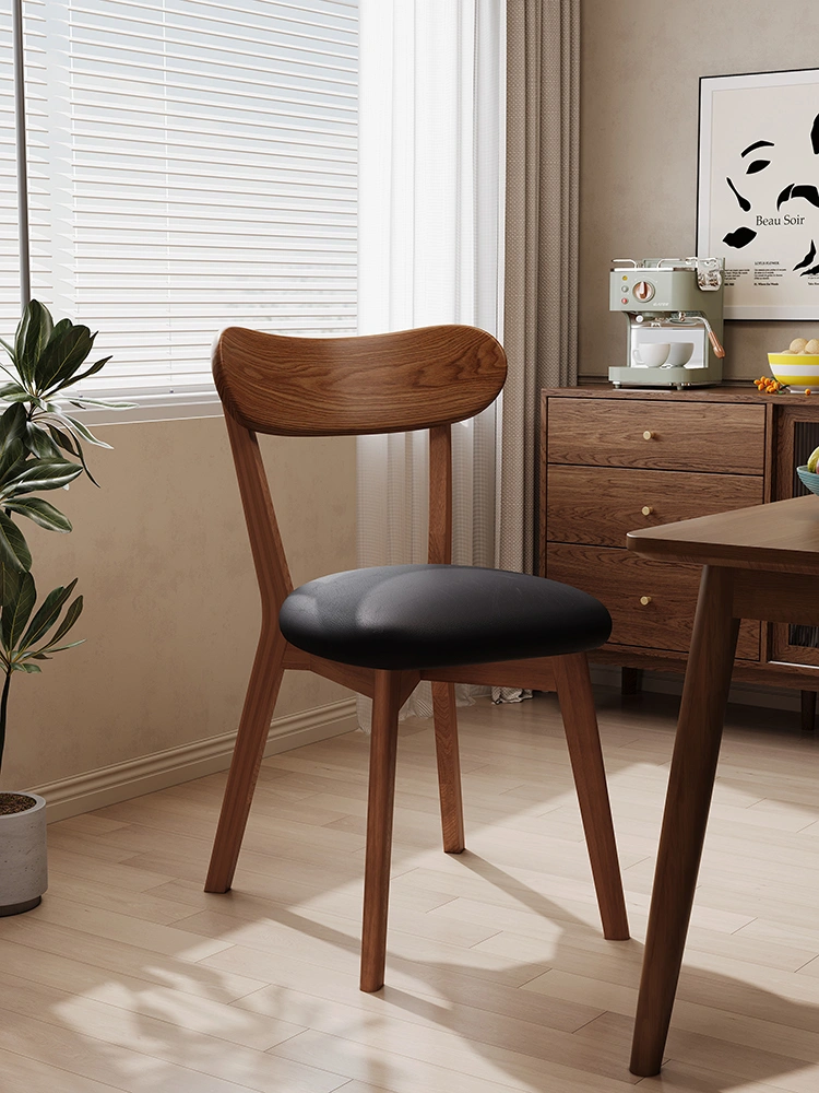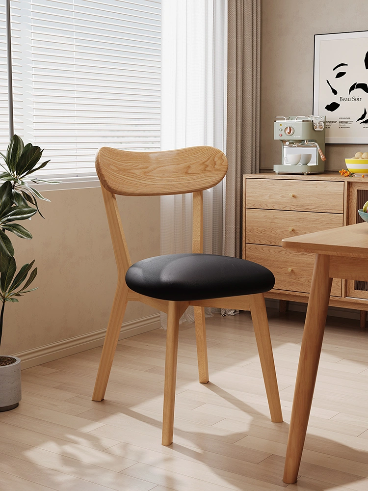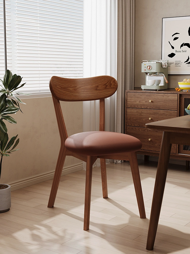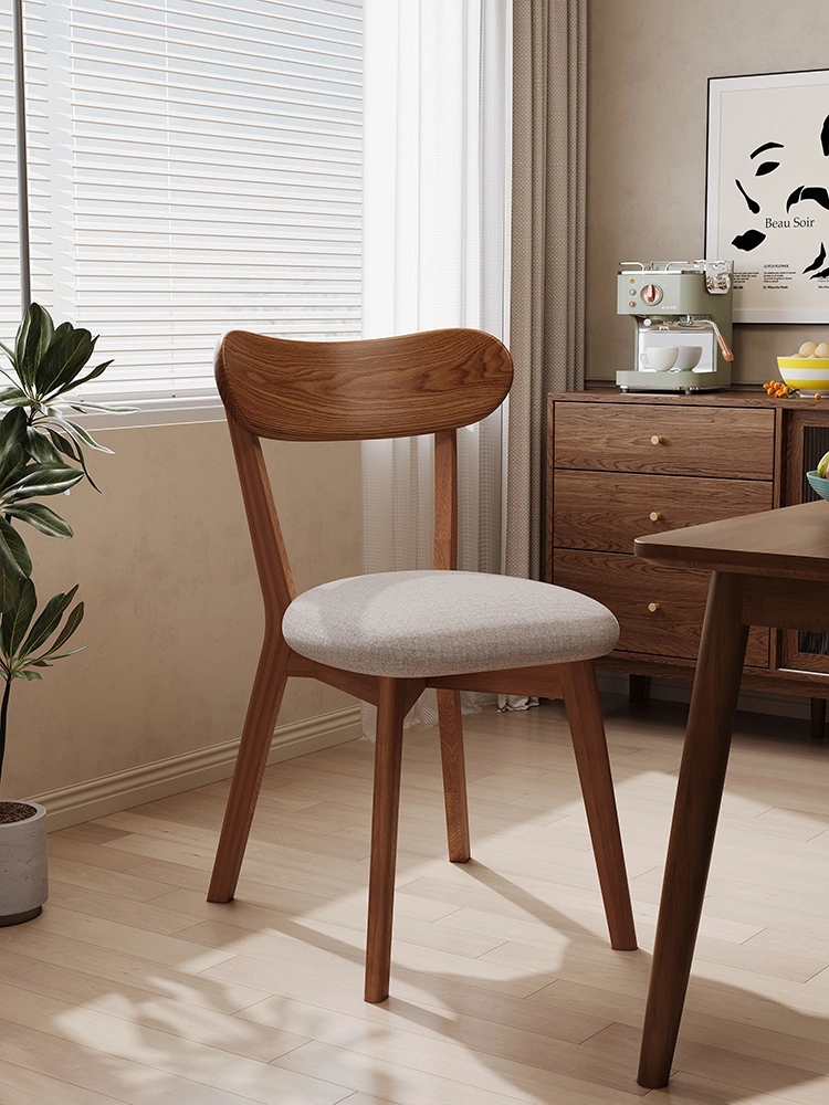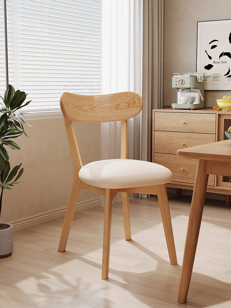 Solid Wood Dining Table and Chairs, Home-Use Mid-Century Style Tea Chair with Backrest, Vintage Makeup Stool, Natural Wood Bedroom Dressing Table Chair