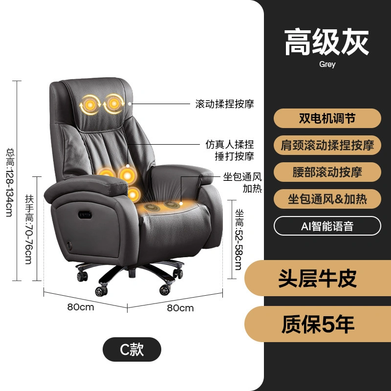 Smart Massage Electric Leather Executive Chair, Light Luxury High-End Office Computer Chair, Gaming Chair, Home Use with Ventilation and Heating