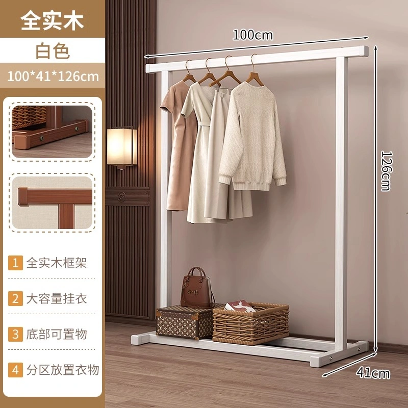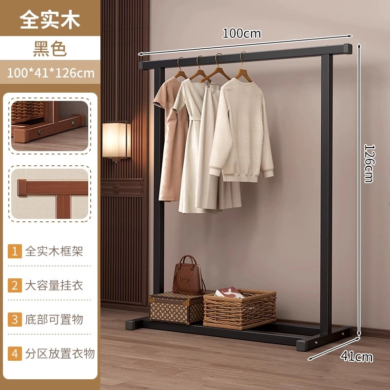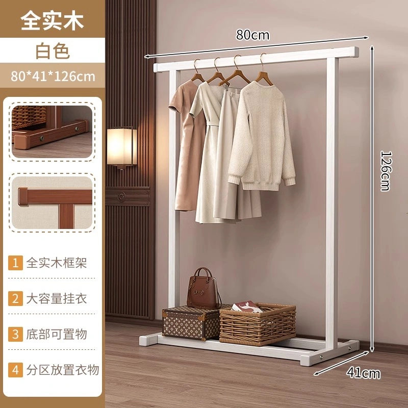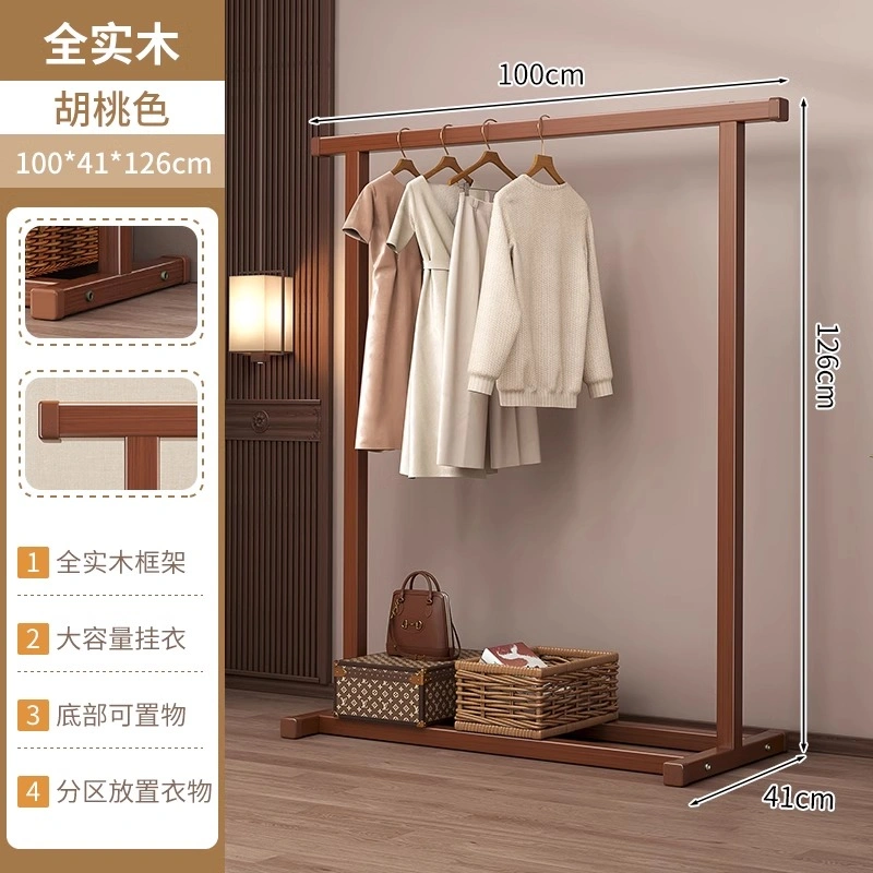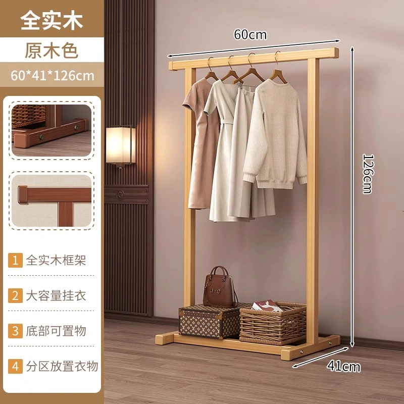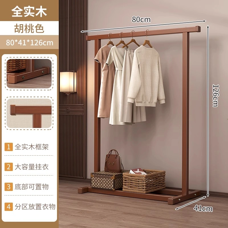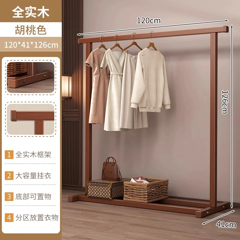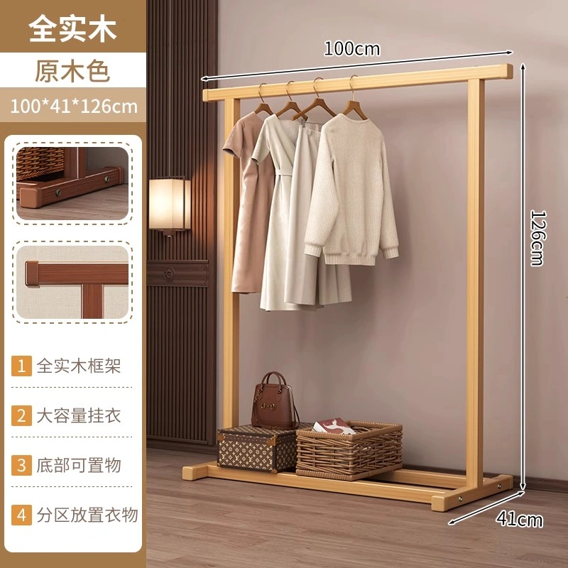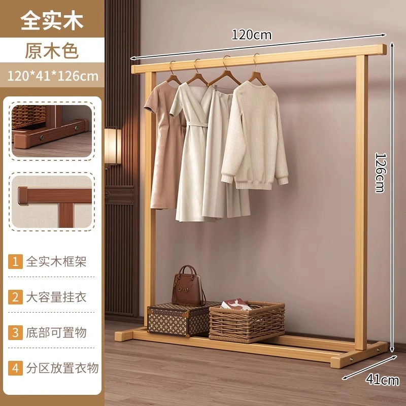 Solid Wood Clothes Rack, Freestanding Floor-Standing Clothes Hanger, Bedroom Household Vintage Coat Rack, Small Apartment Simple Clothes Drying Rack
