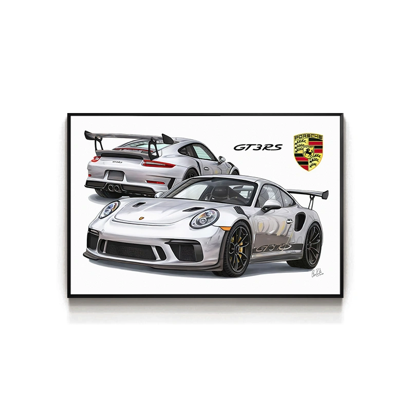 Supercar 911Gtr Poster Hanging Painting Gt3 Rs Sports Car Car Room Decoration Painting Living Room Bedroom E-Sports Room Car Hanging Painting