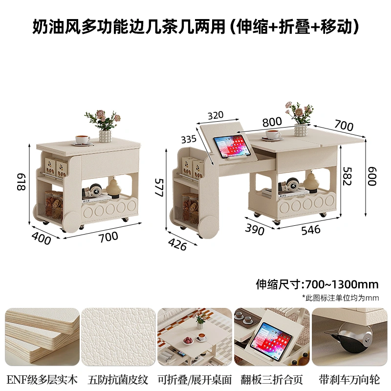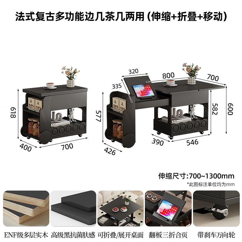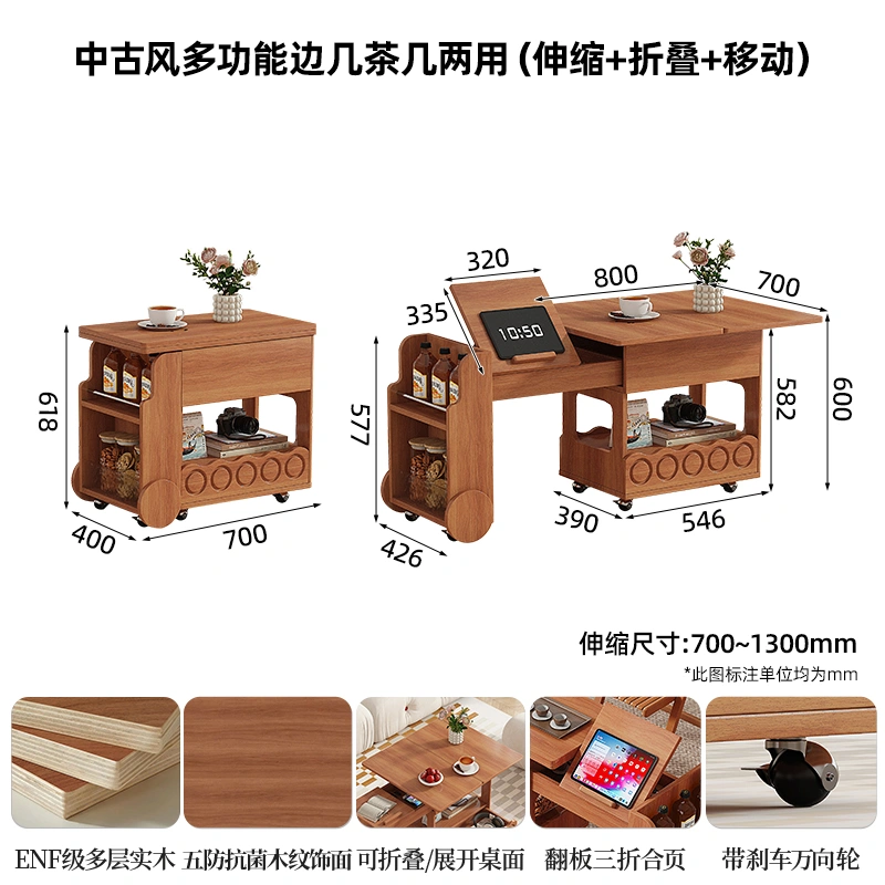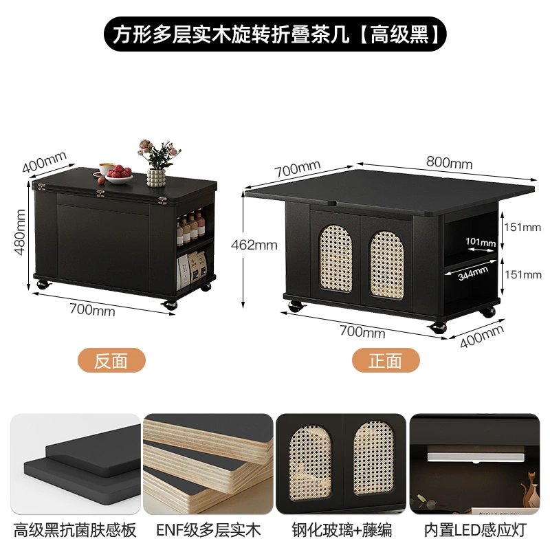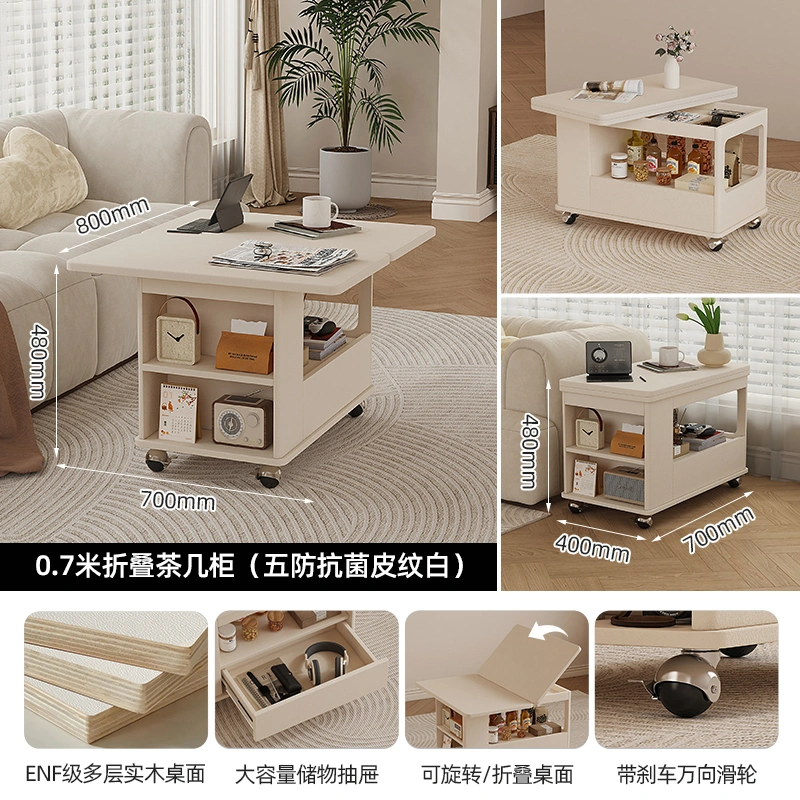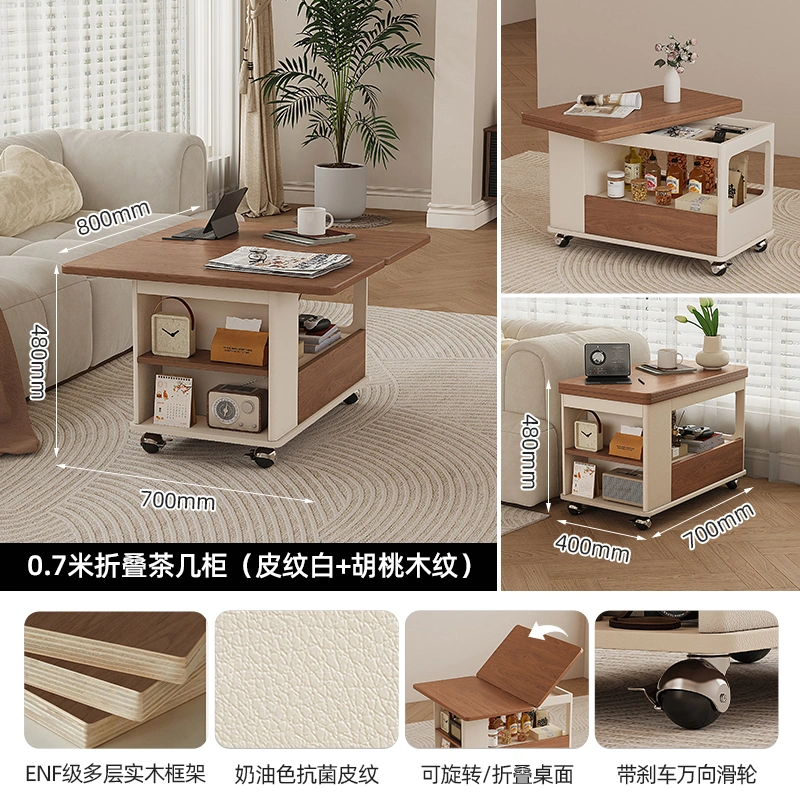 New Style Chess and Card Table, Square Table, Italian Light Luxury Solid Wood Home Folding Small Movable Trolley, Extendable Coffee Table