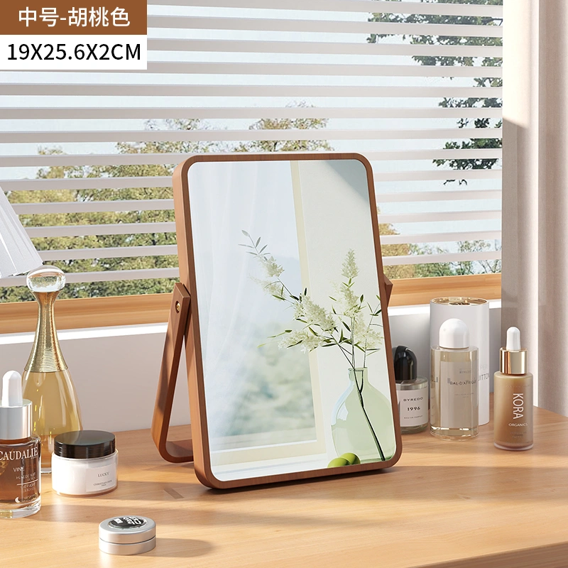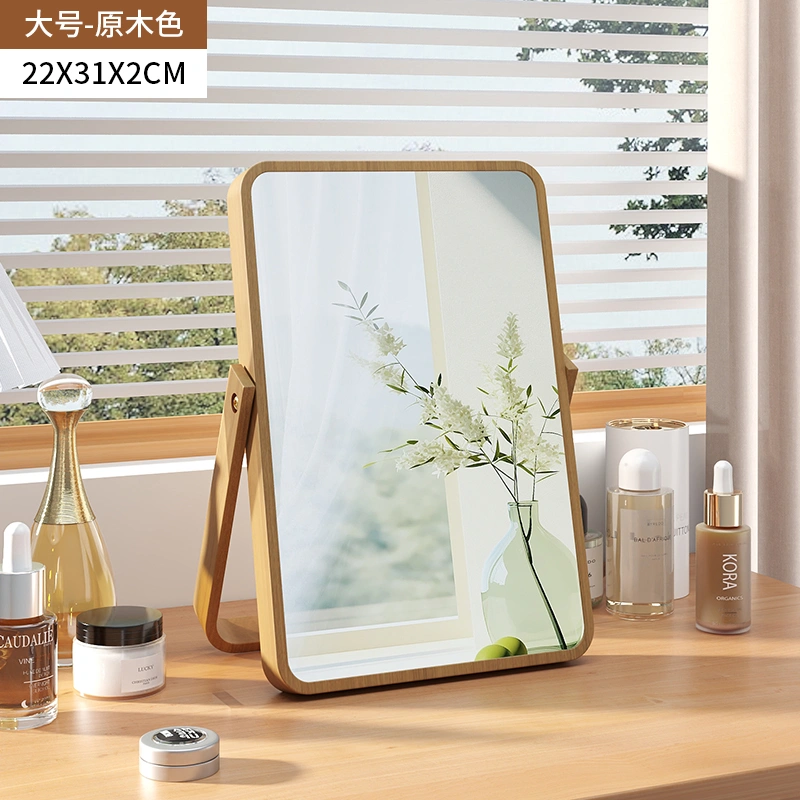 Home Makeup Mirror Desktop Office 2024 New Portable Mirror Master Bedroom Foldable Solid Wood Dressing Mirror