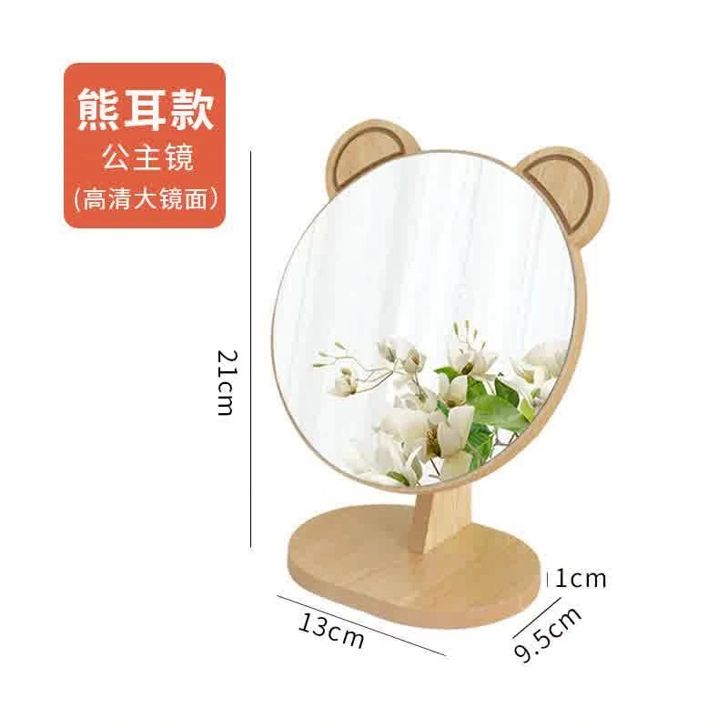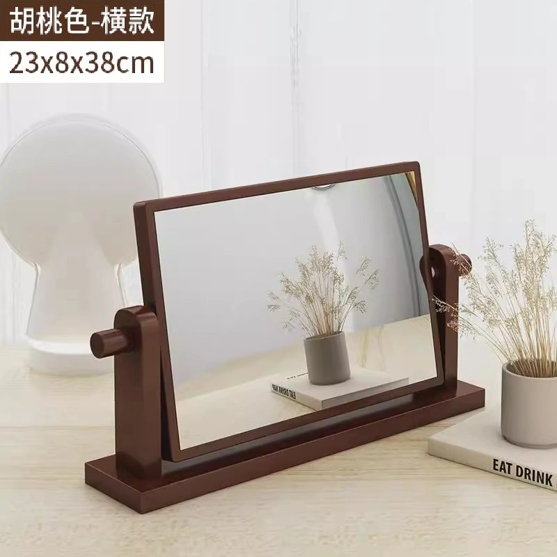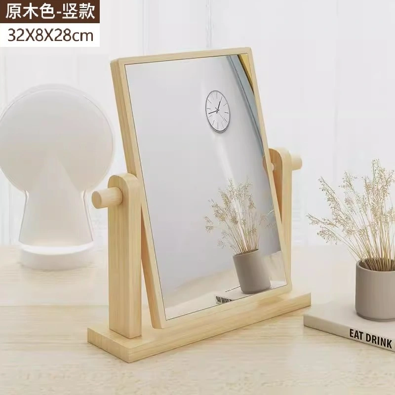 Solid Wood Makeup Mirror Desktop Home Bedroom Tabletop Vanity Mirror 2024 New Model Student Dormitory Foldable Portable Mirror