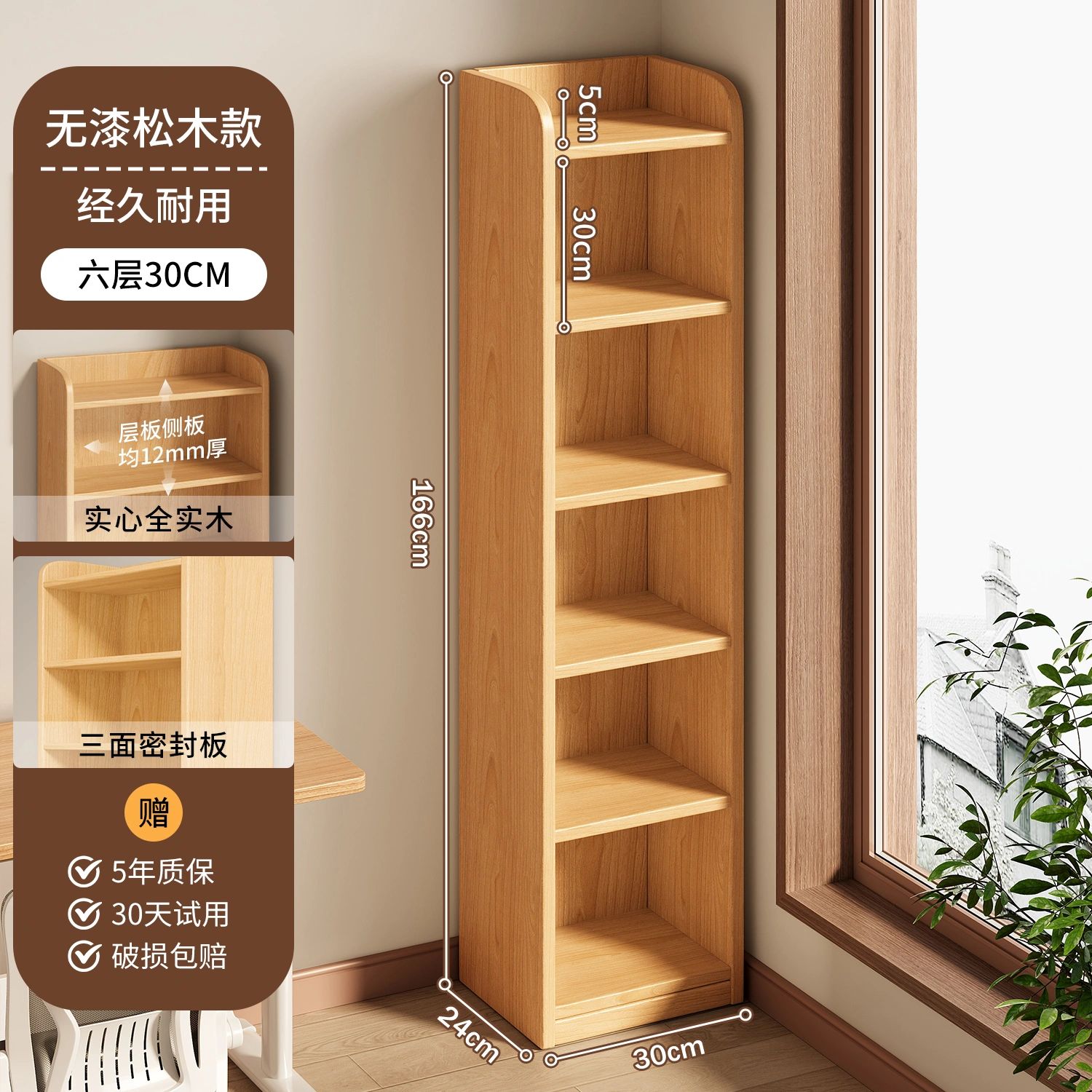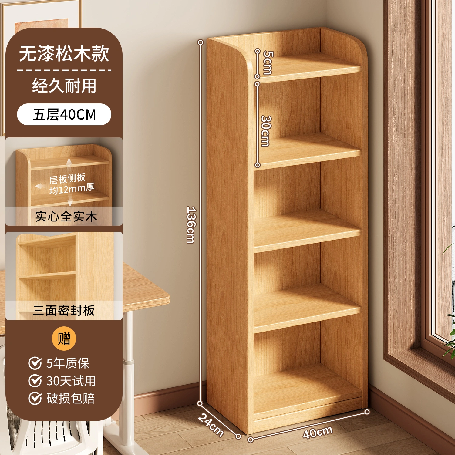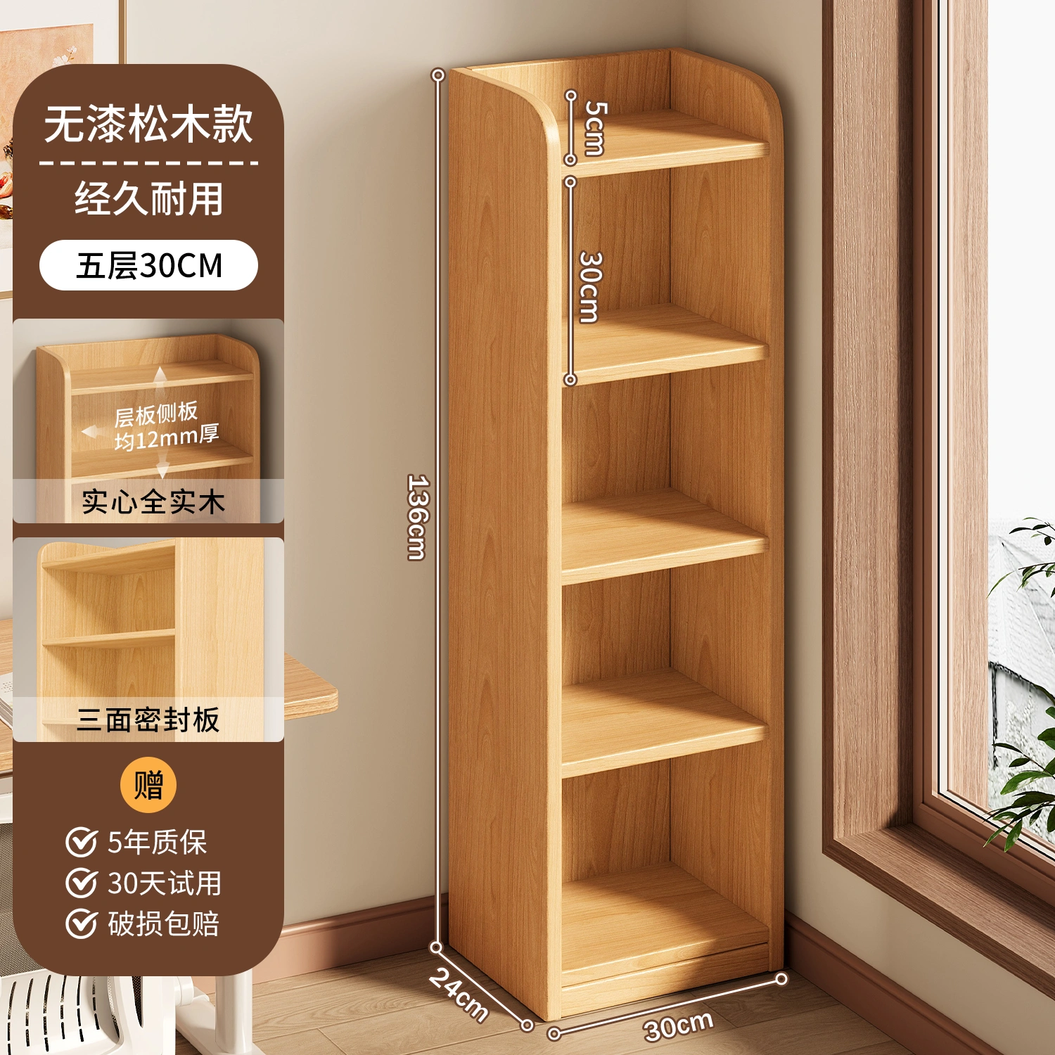 Solid Wood Corner Bookcase Student Home Cabinet Storage Cabinet Living Room Simple Storage Rack Floor-To-Ceiling Wall Multi-Layer Bookshelf