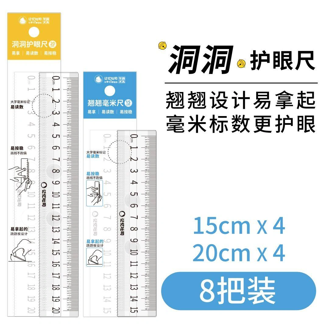 [Hole Millimeter Ruler] Special Eye Protection Ruler for Primary School Students with Millimeter Labeling and Easy to Read Ruler with Wave Anti-Myopia Eye Protection Ruler 15cm 20cm Set of Rulers for First and Second Grade