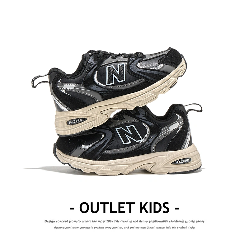 2025 Spring and Autumn New Children's Sports Shoes 530 Boys' Slip-On Leather Running Shoes Girls' Non-Slip Casual Children's Shoes