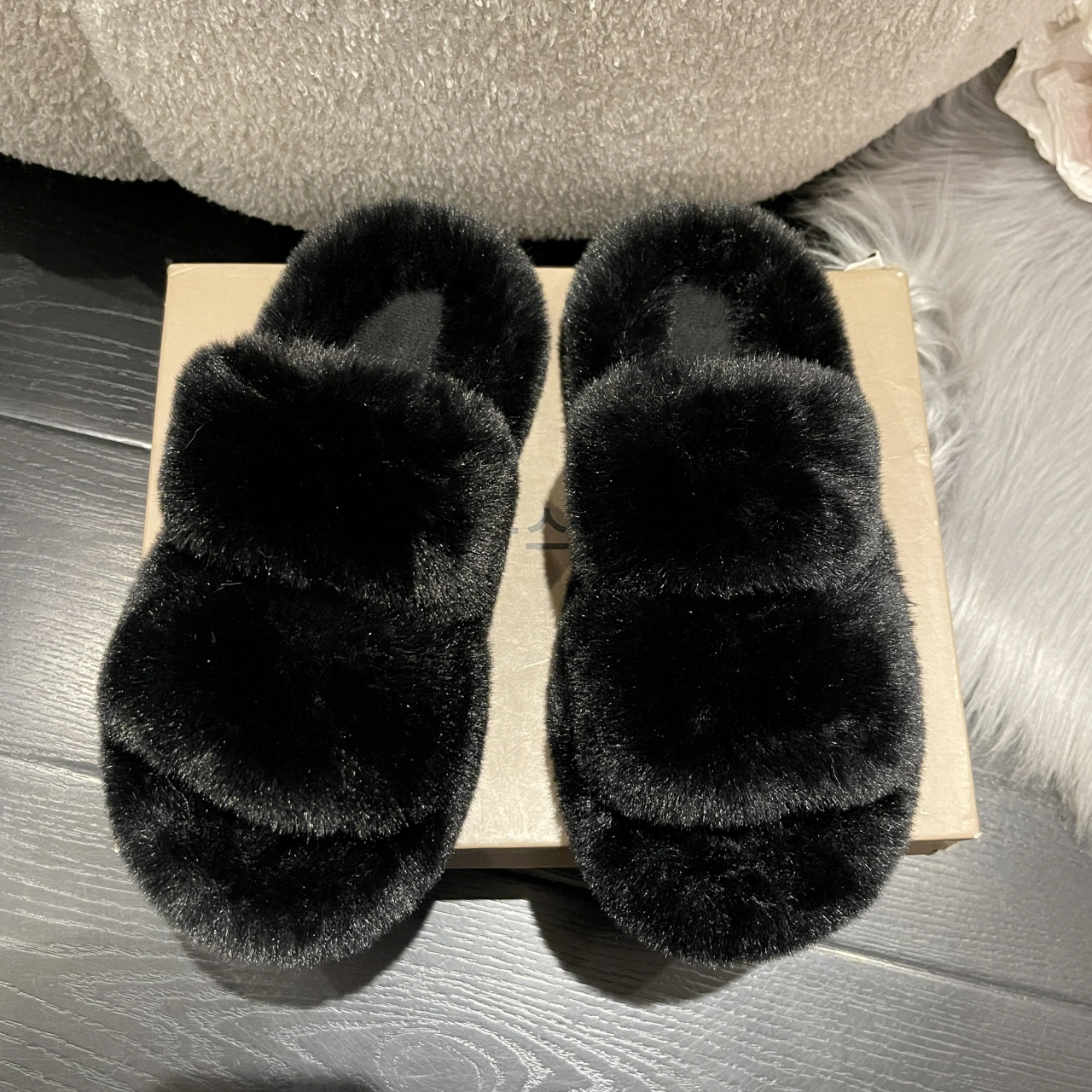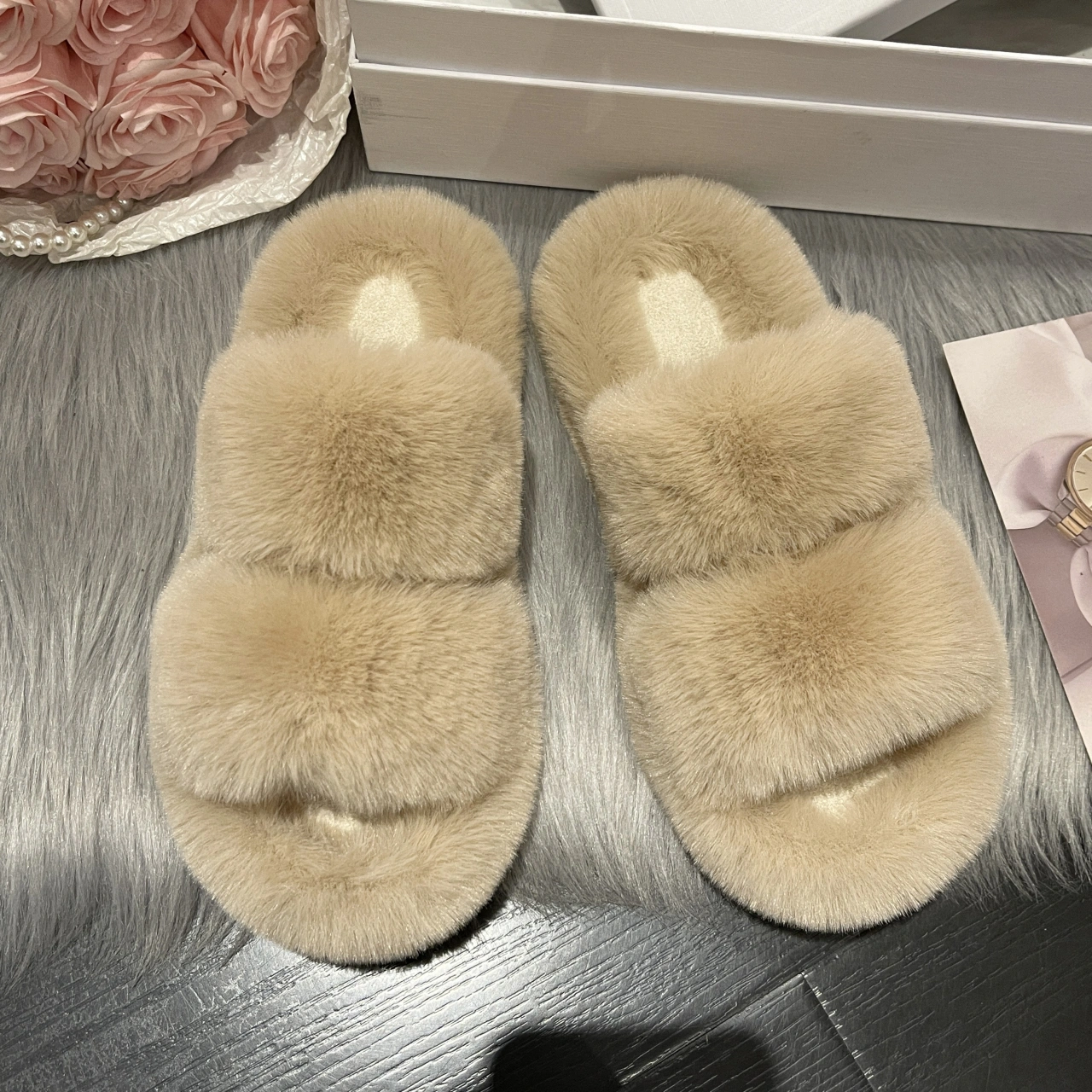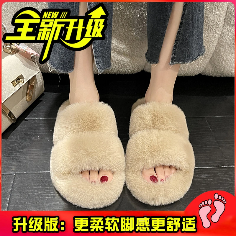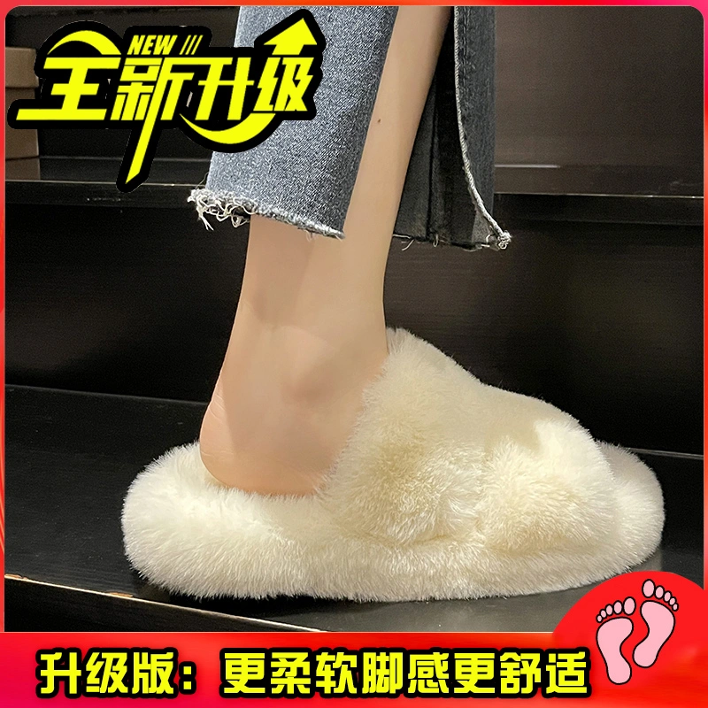 soft sole Women's Furry Slippers for Outdoor Wear 2025 New Spring and Autumn Flat Furry Shoes One-Strap Home Cotton Slippers