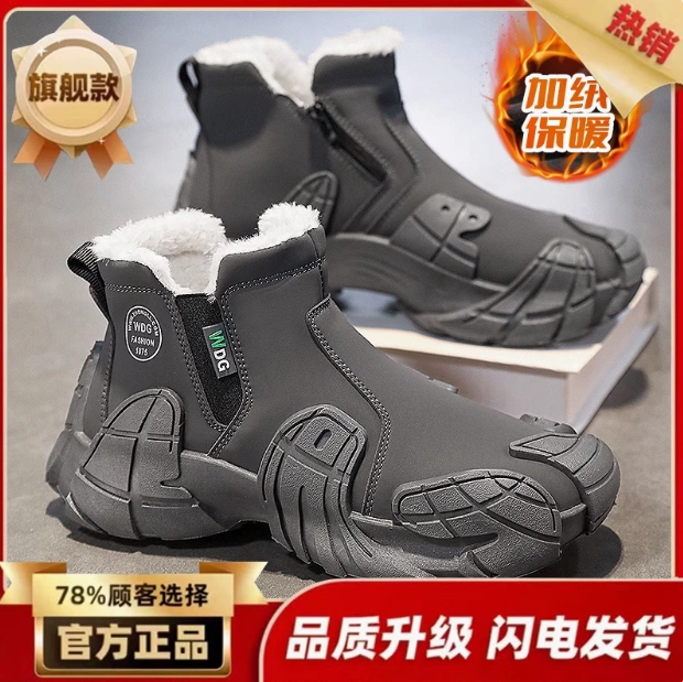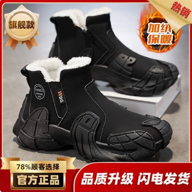 Boots Men's Shoes High-top Winter Heattech Cold-proof Fleece-lined thickened Sports Work Cotton Shoes Waterproof Non Slip Snow Boots