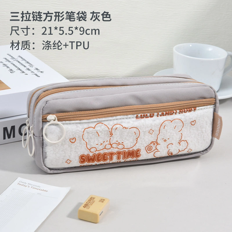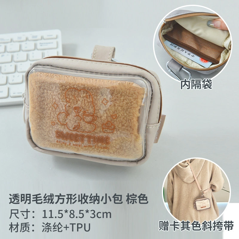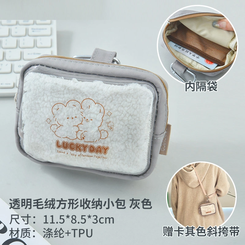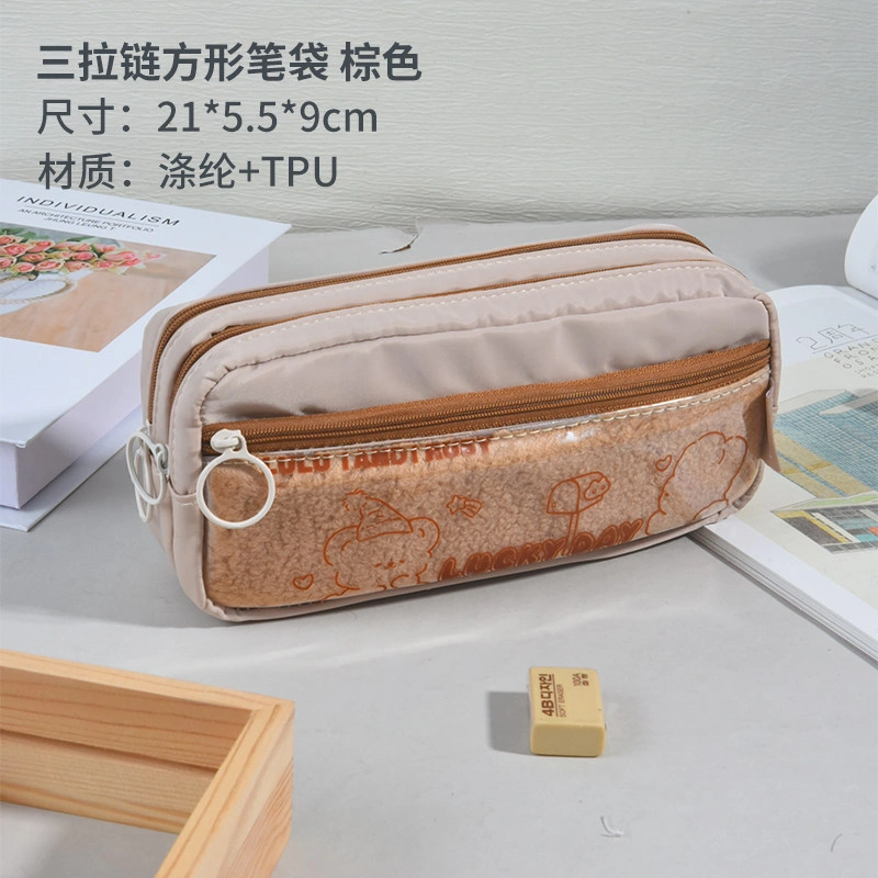 Fashionable Transparent Plush Creative Pencil Case Cute Cartoon Portable Earphone Storage Bag Boys and Girls Stationery Box XL