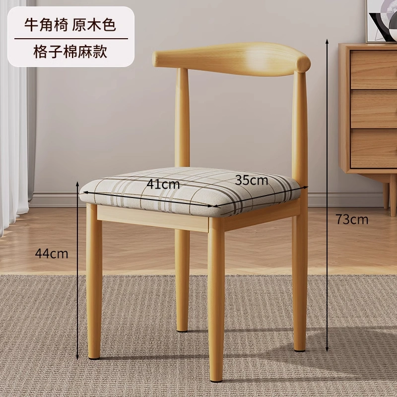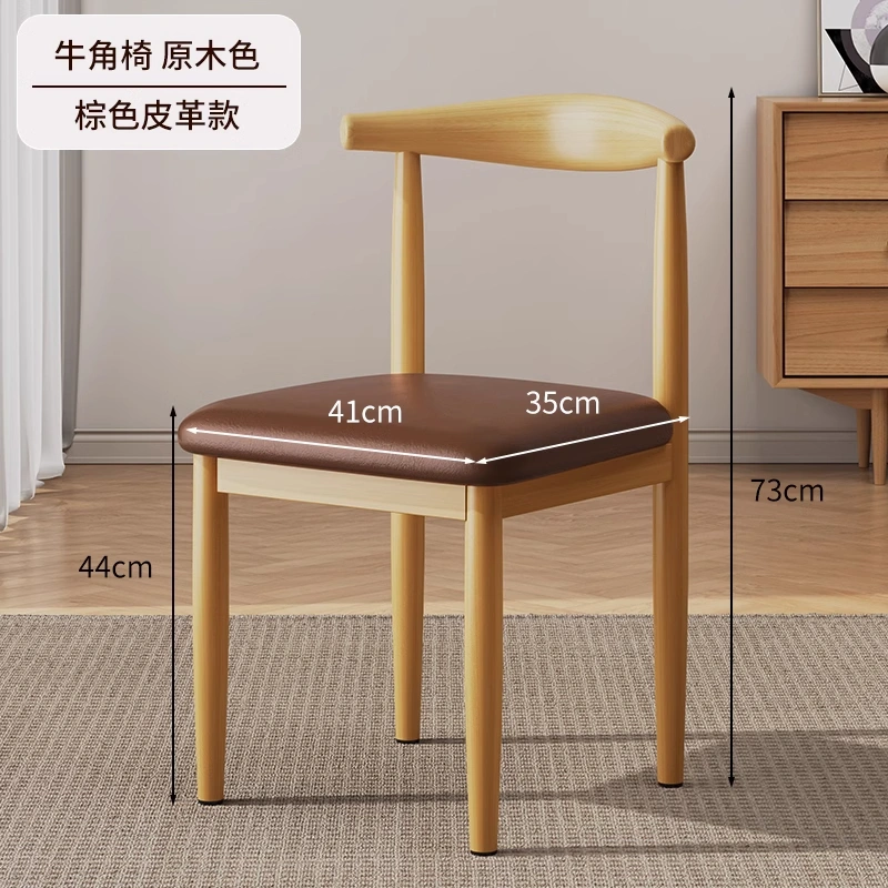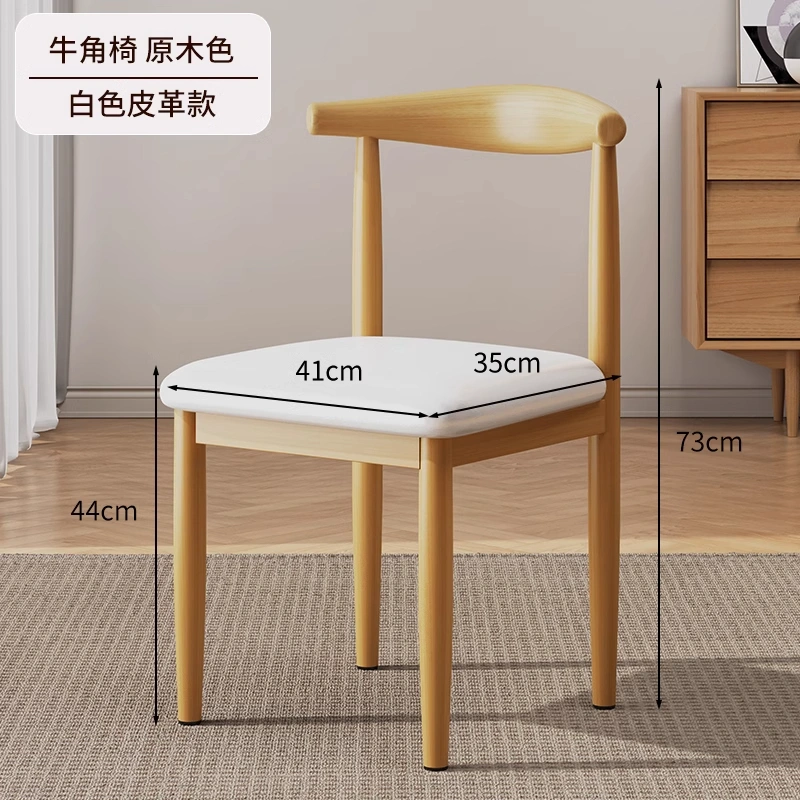 Dining Chair for Home Use, Nordic Style with Backrest, Stool for Desk, Modern Minimalist Dormitory Chair for College Students, Faux Wood Iron Art Horn Chair