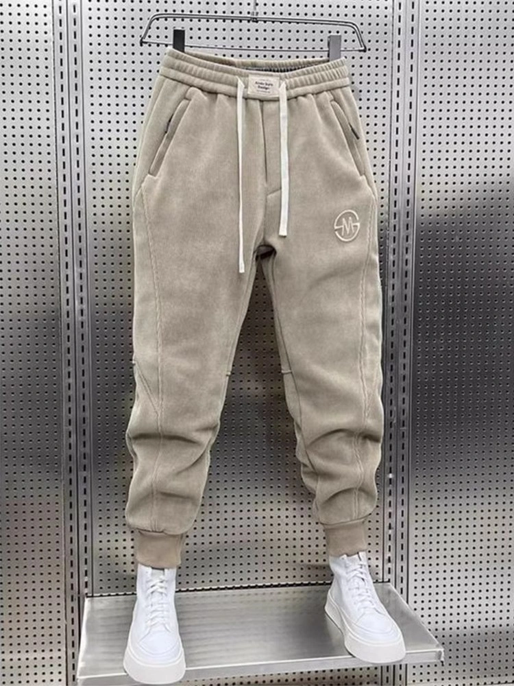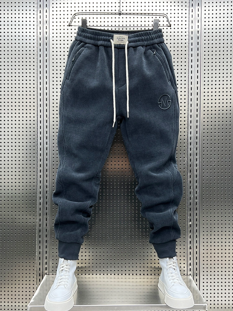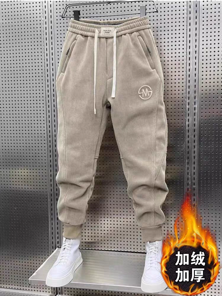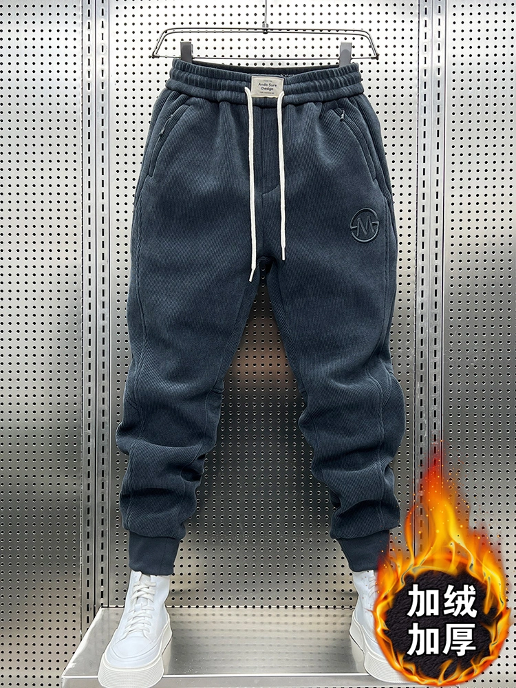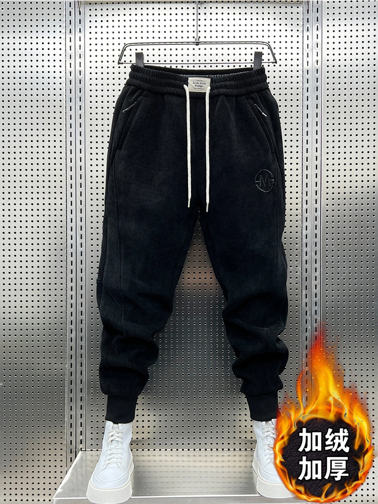 Autumn and Winter Corduroy Fashionable Versatile Fleece-Lined Casual Pants Men's Loose Jogger Trendy Corduroy Sweatpants Sports Trousers