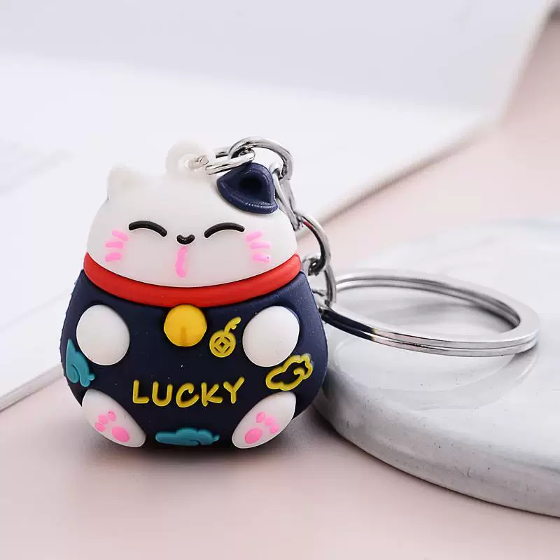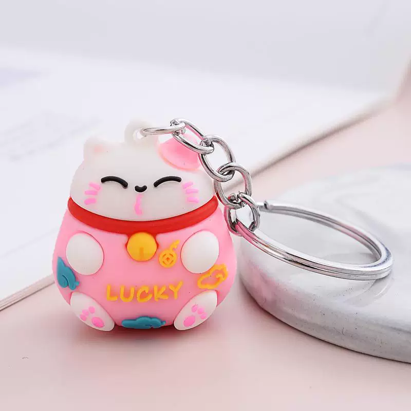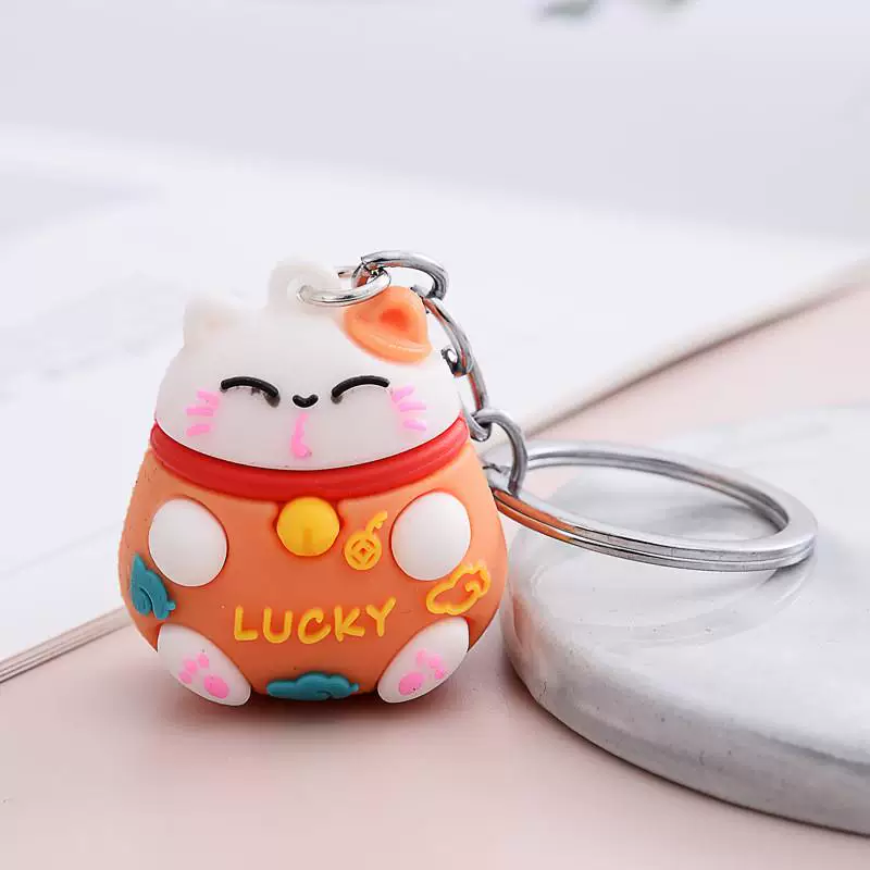 Korean-Style Epoxy Lucky Cat Keychain New Year Creative 3D Cartoon Pendant Car Key Holder In-Stock Gift
